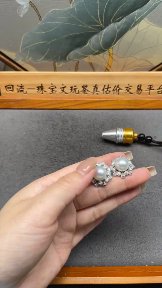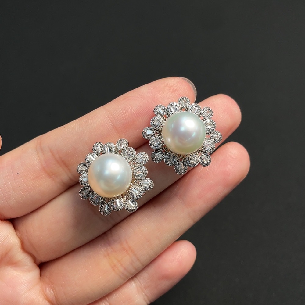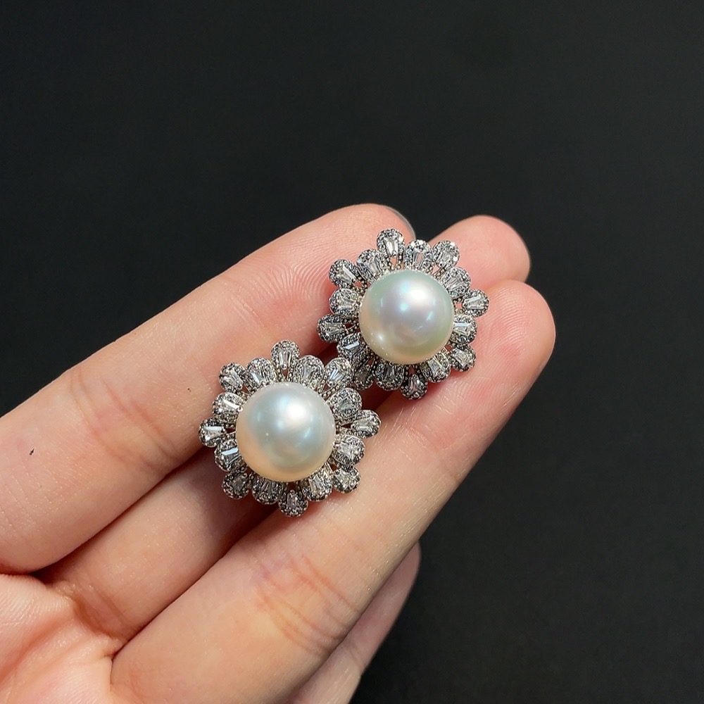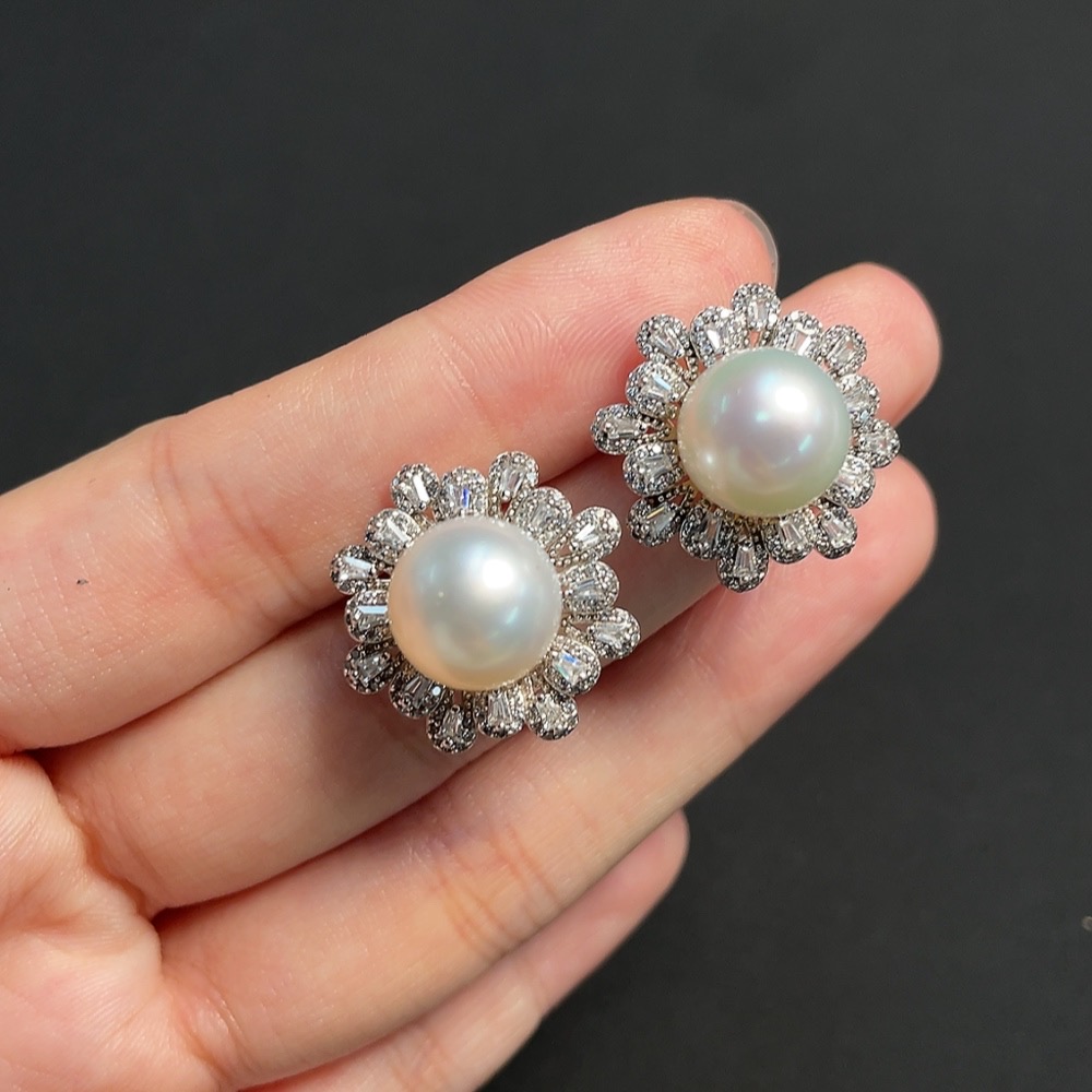 Seawater pearl inlaid earrings, non-gold setting, size approx. 10.9mm, total weight approx. 9.17g