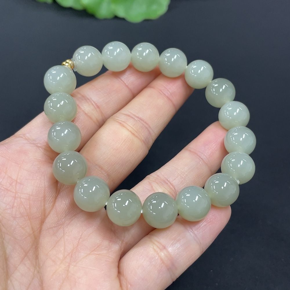 Hetian Jade Bracelet Approx. 9.9mm Non-Gold Total Weight Approx. 28.4g