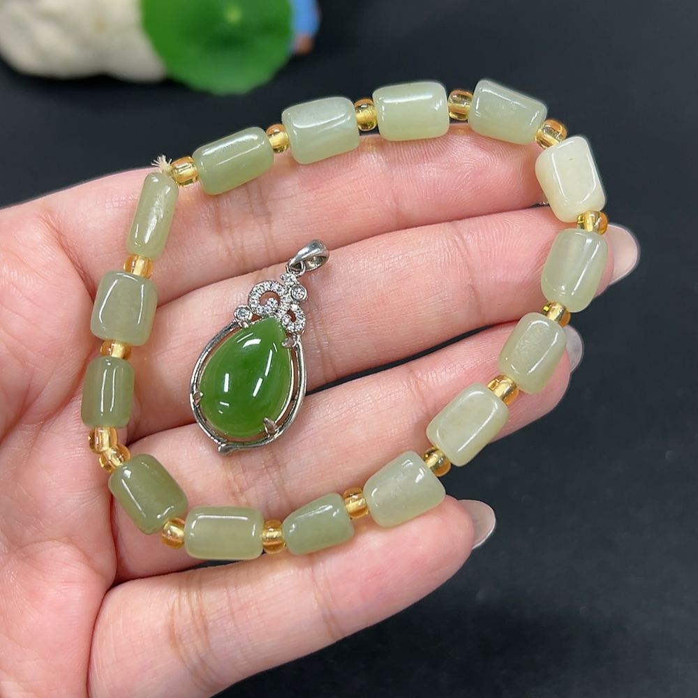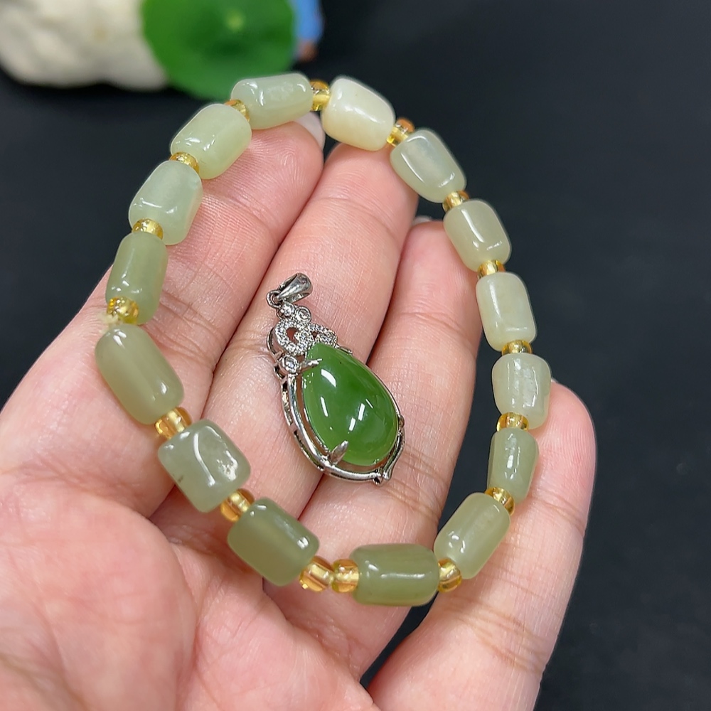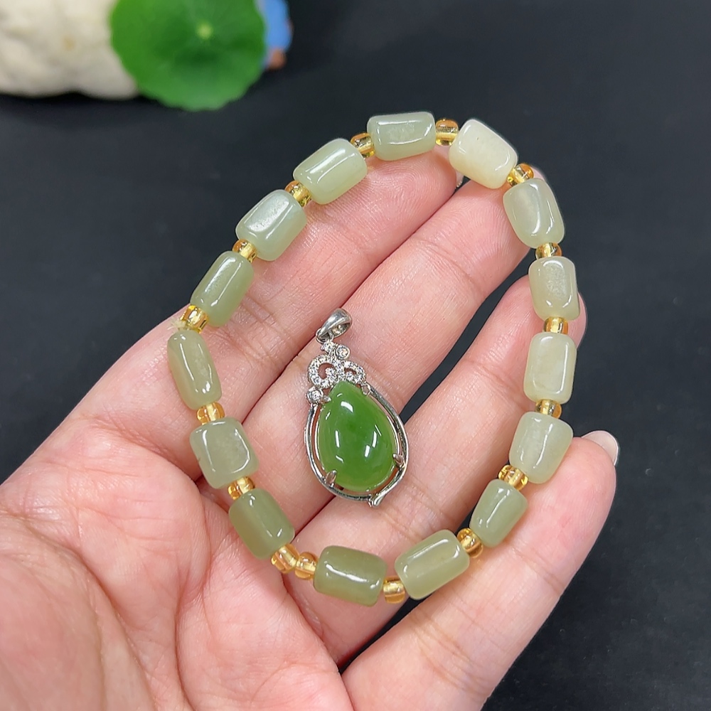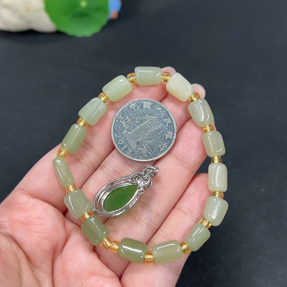 Hetian Jade Inlaid Pendant Bracelet Non-Gold Inlaid Total Weight Approx. 18.3g Beads Not Hetian Jade