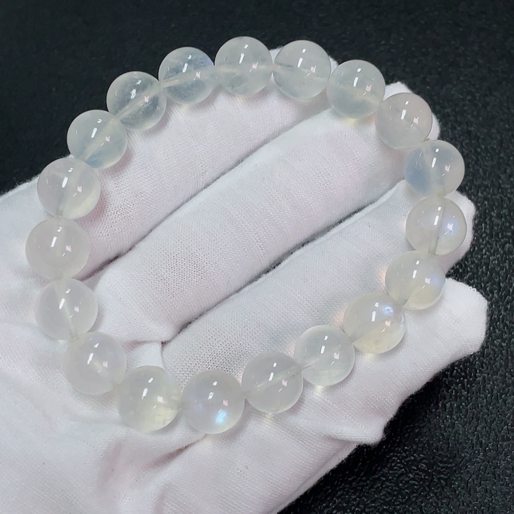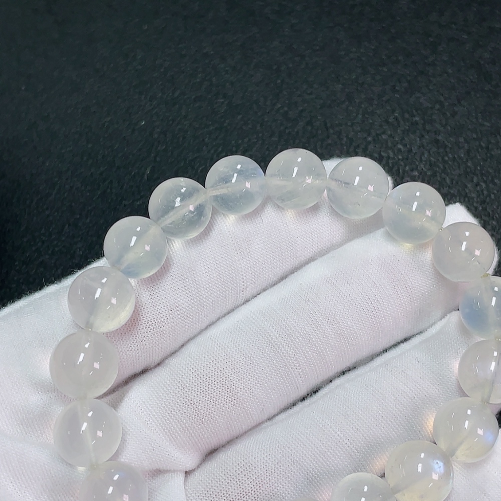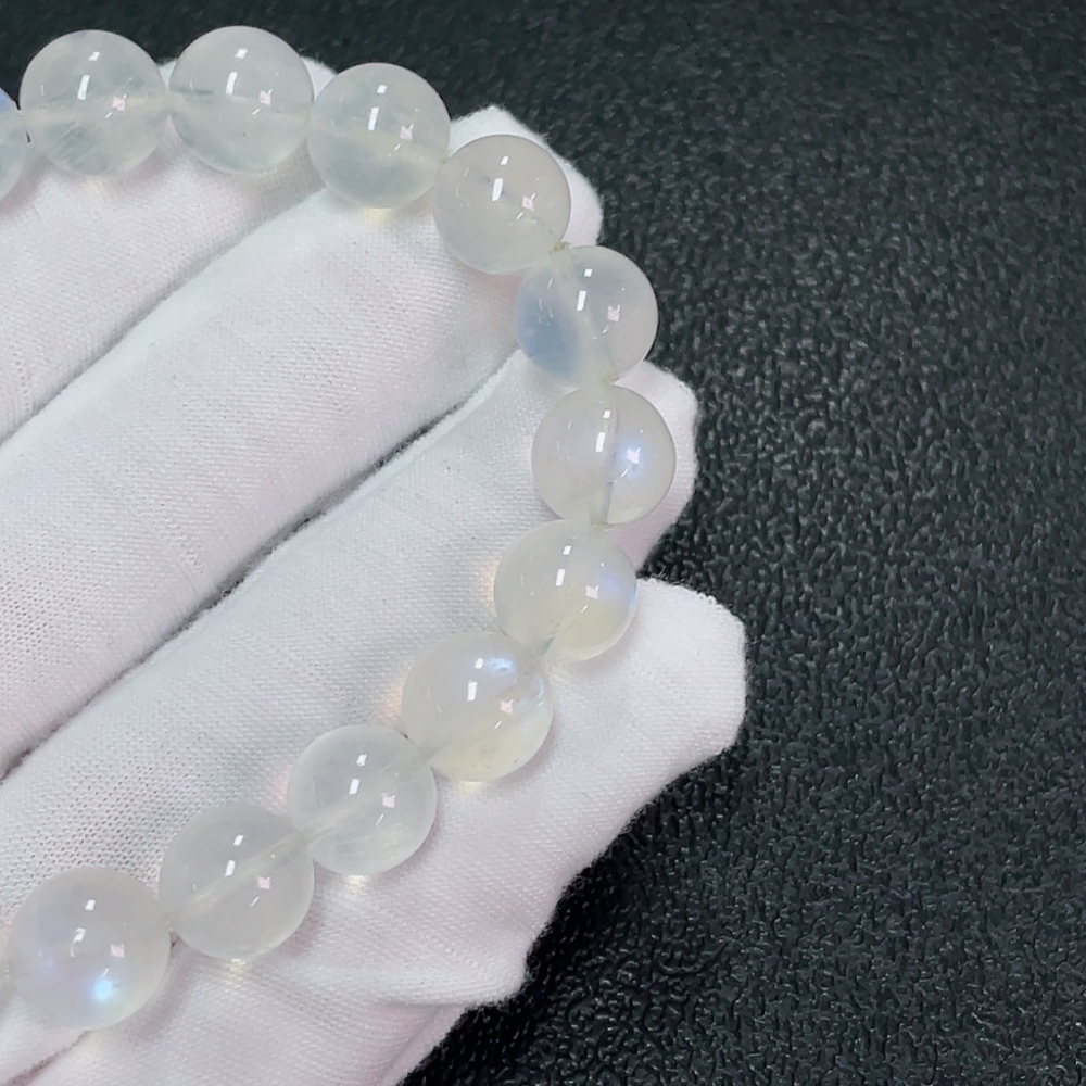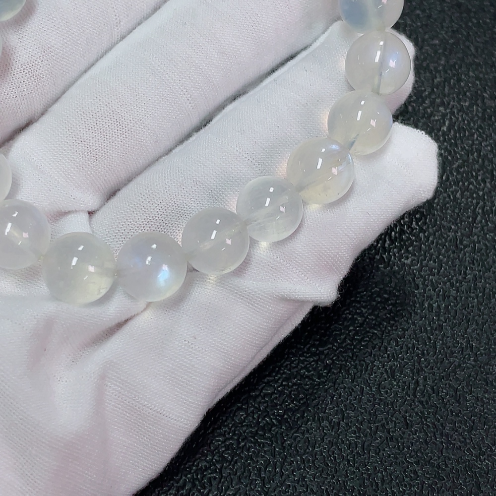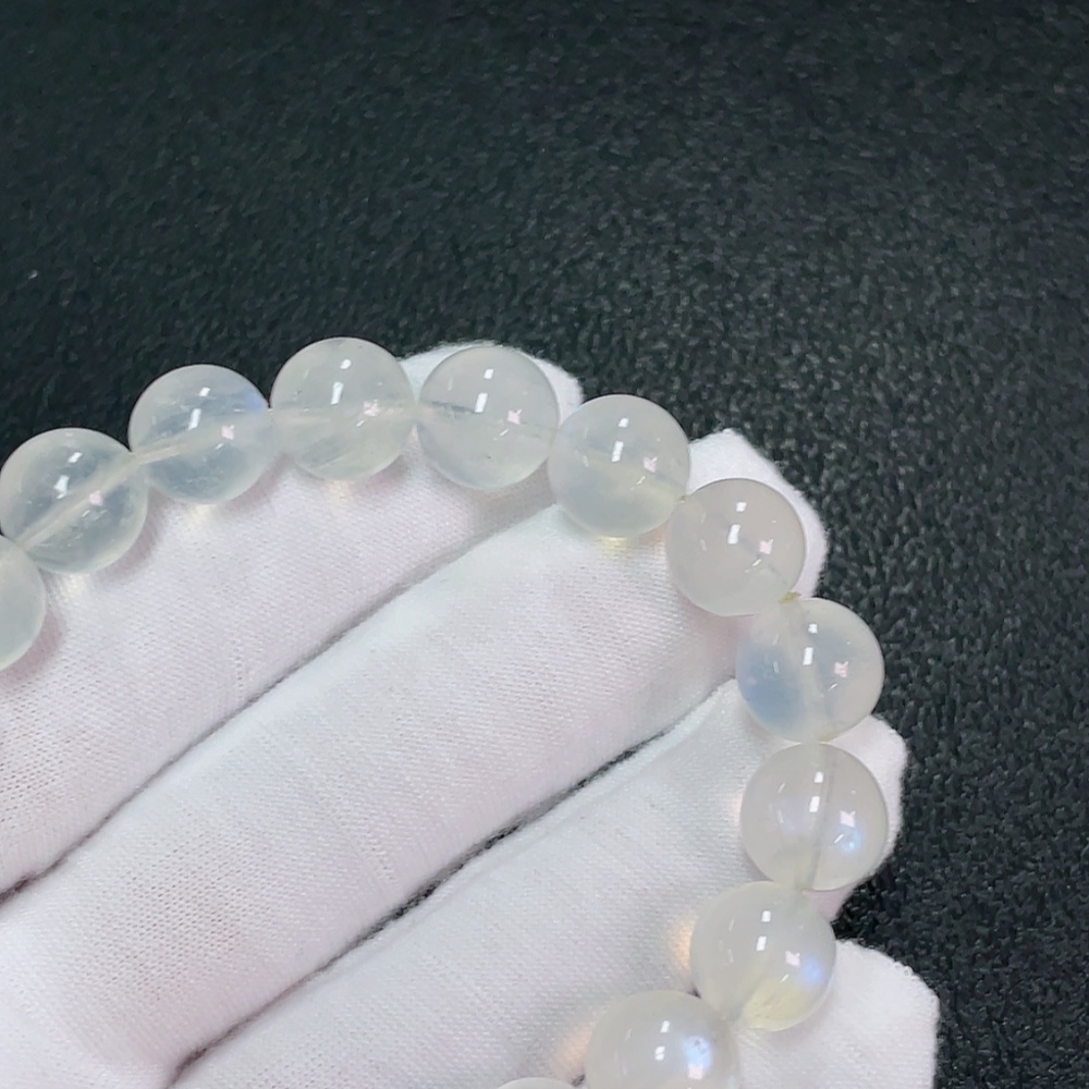 Moonstone Bracelet with Visible Organic Matter, Total Weight Approx. 31.16g, Size About 10.7mm