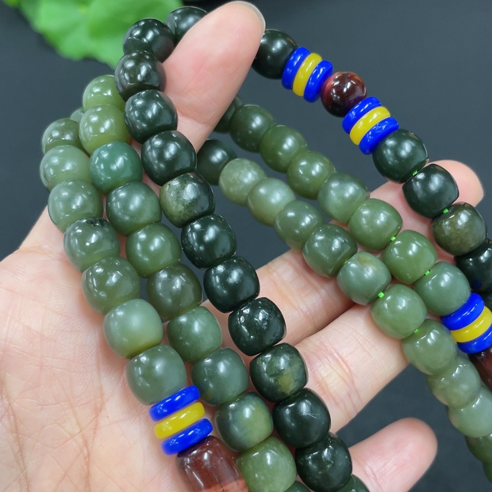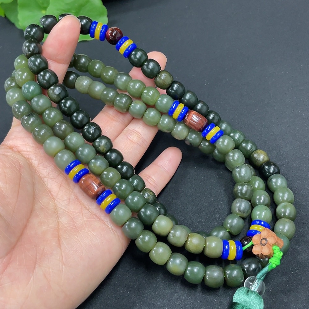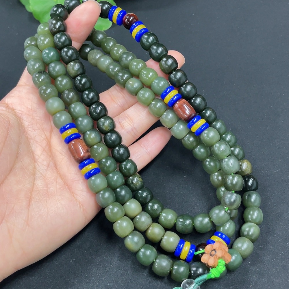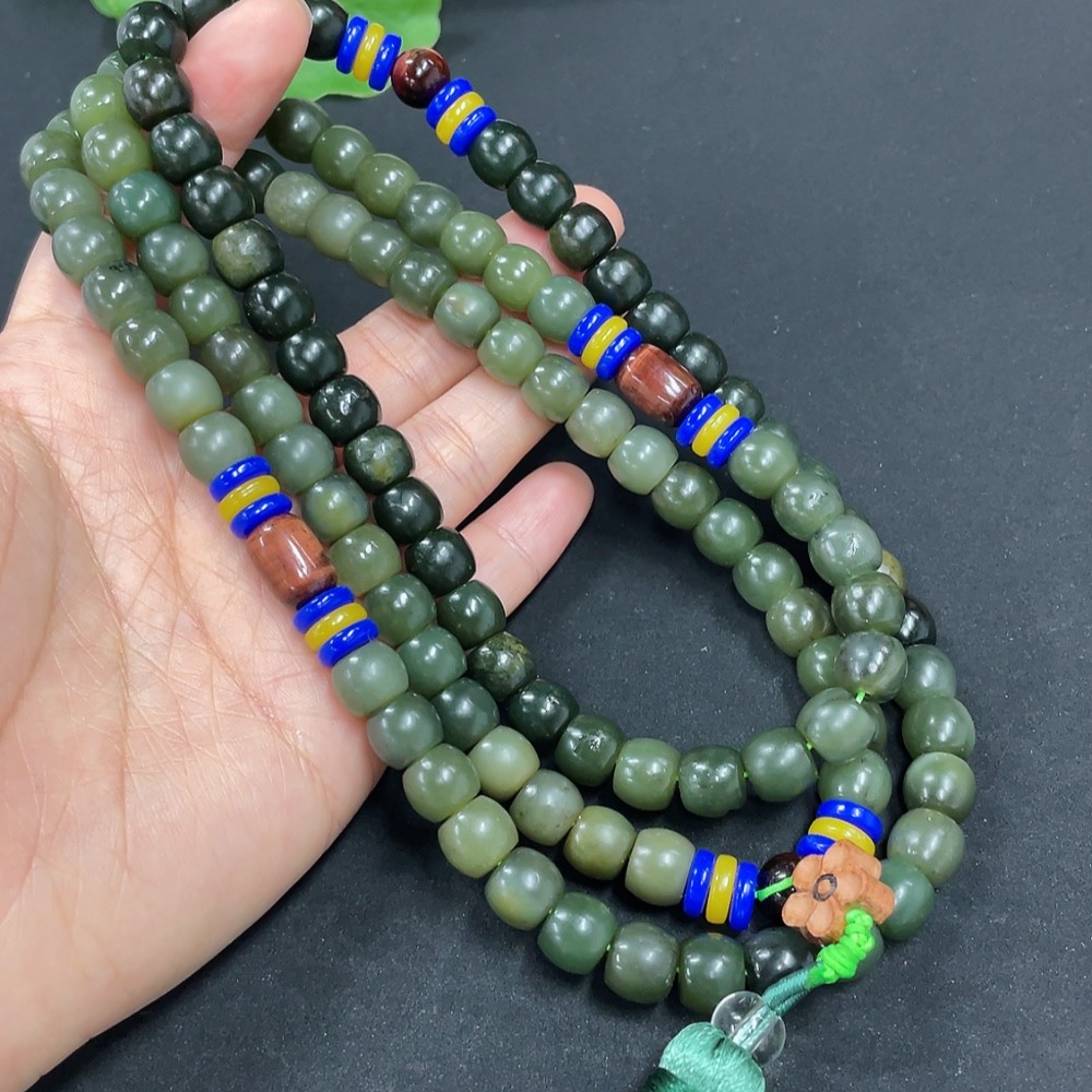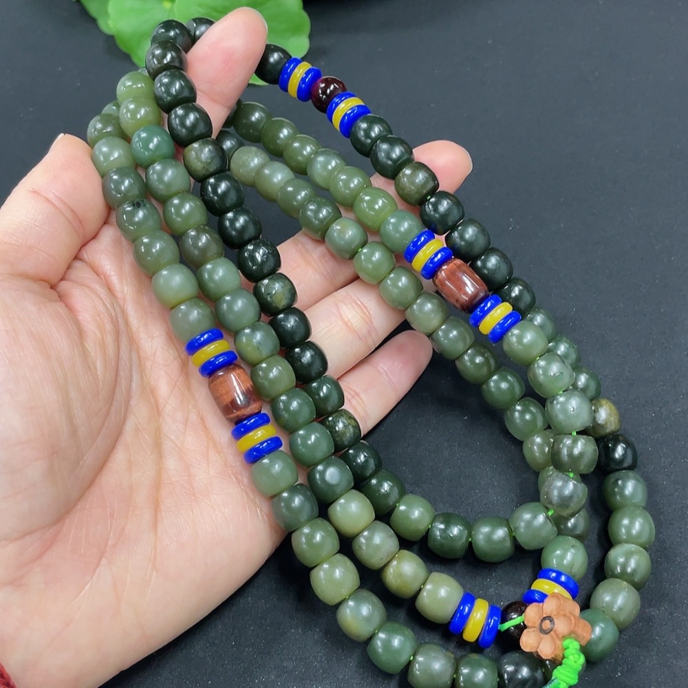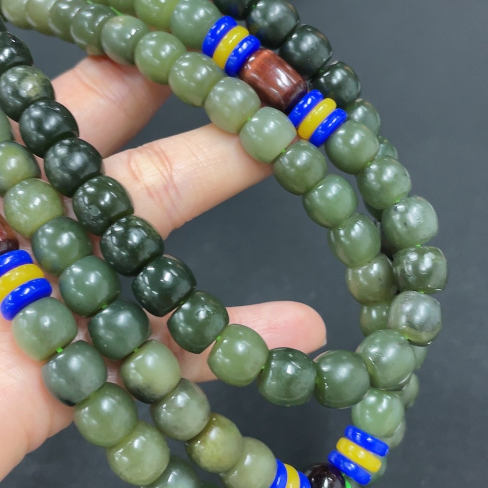 Hetian Jade Bead Necklace, approx. 8.5mm, total weight approx. 136.6g, non-Hetian Jade accessory beads