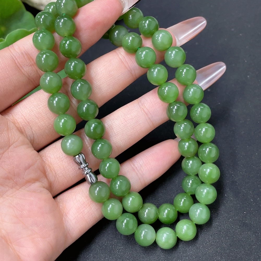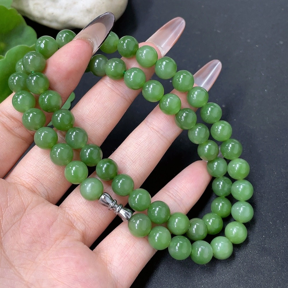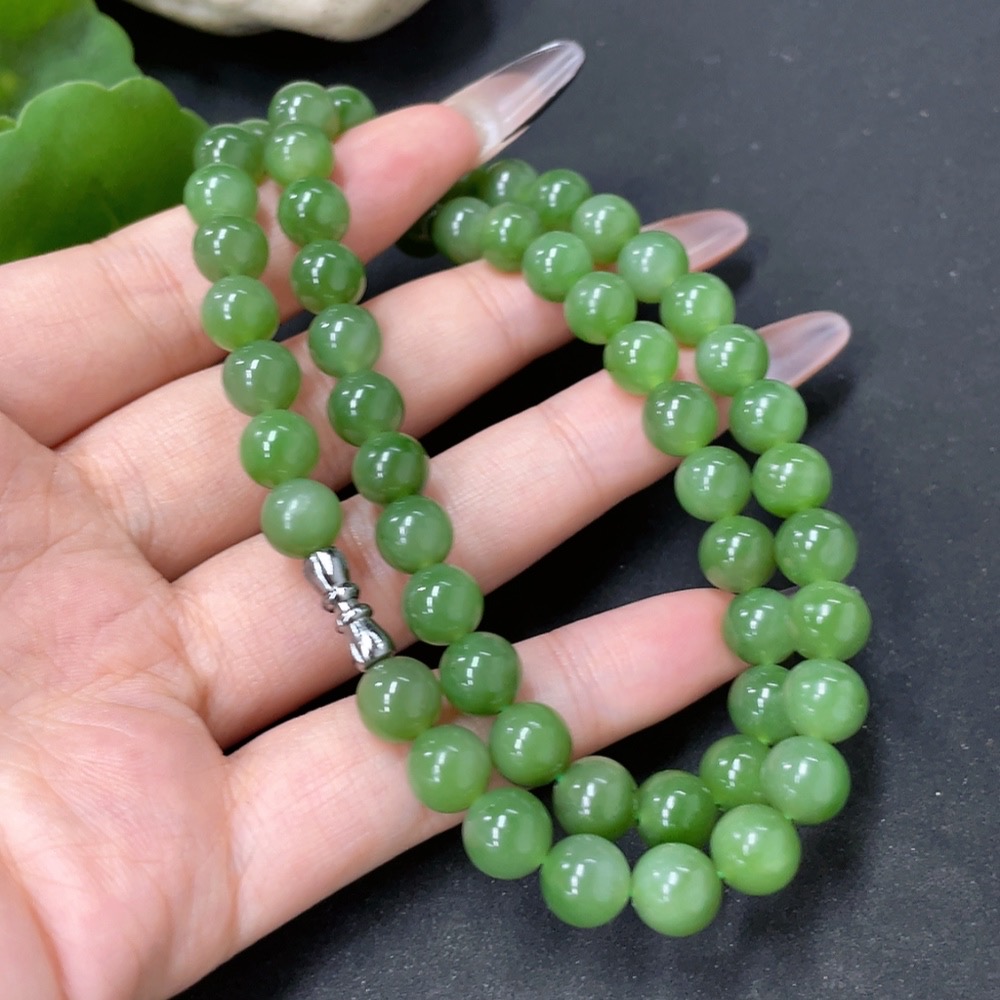 Hetian Jade Jasper Bead Necklace Non-Gold Approx. 8mm Total Weight About 45.6g