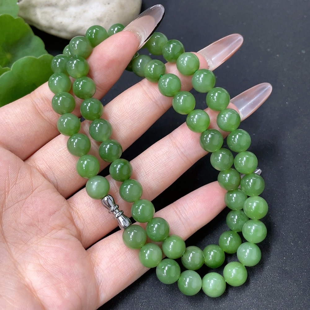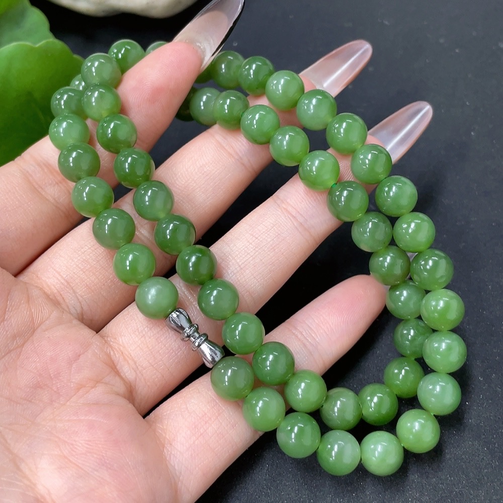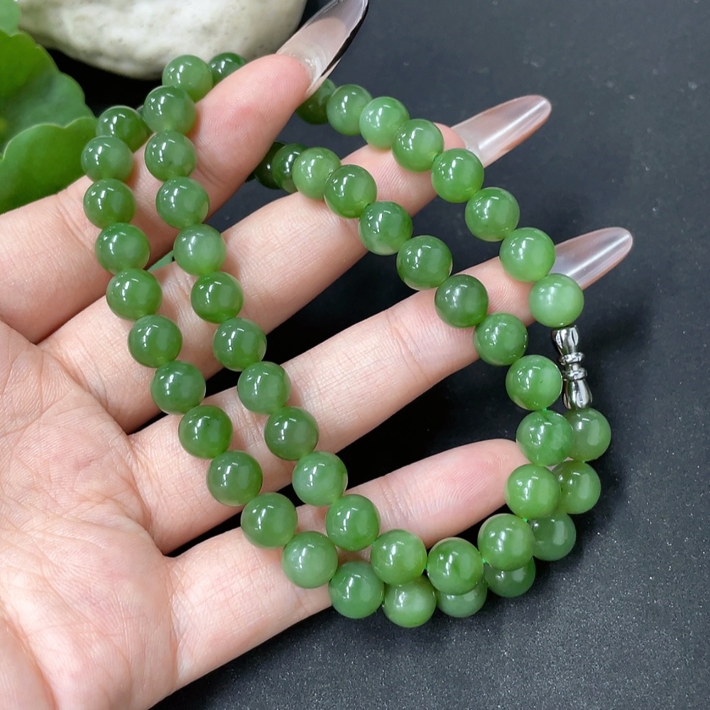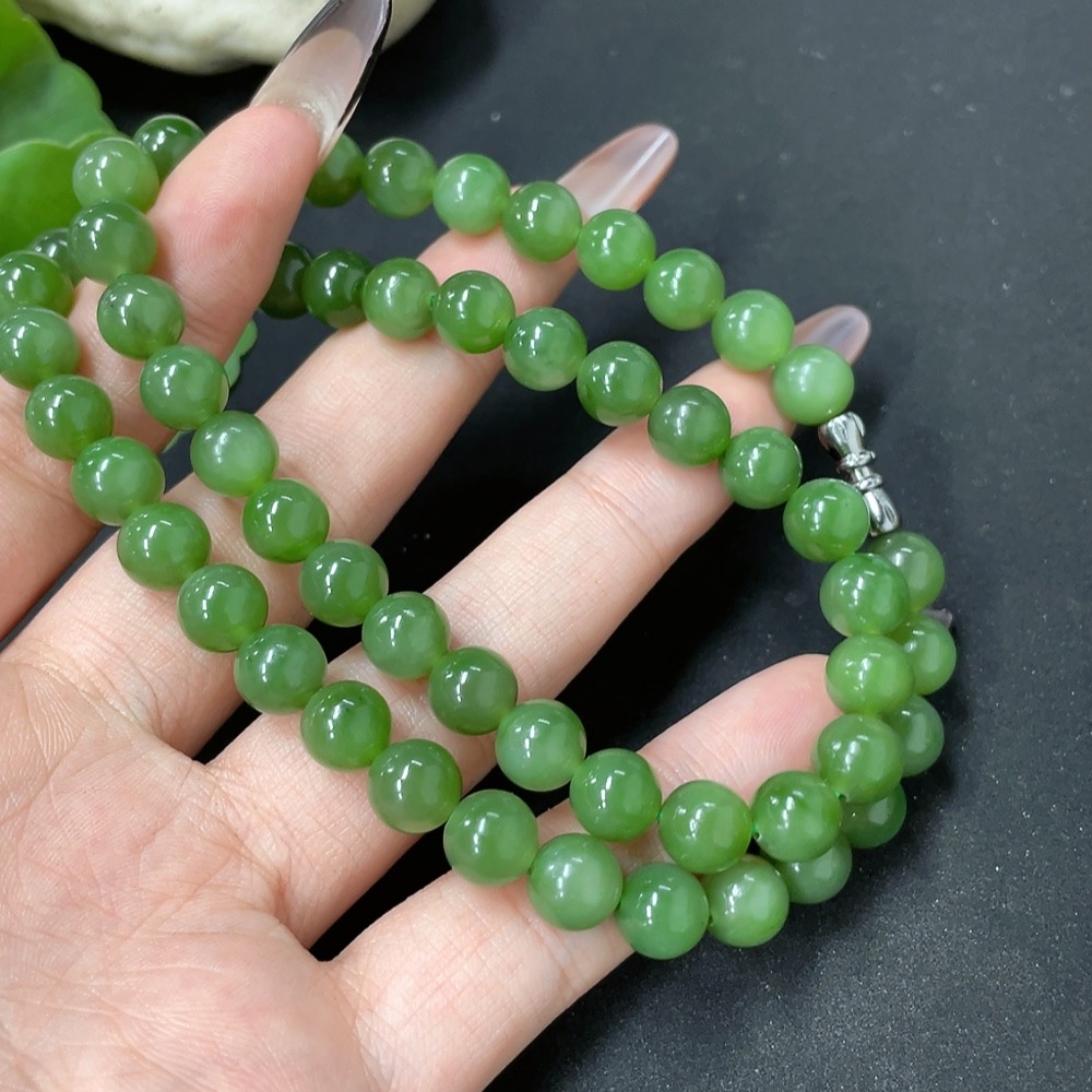 Hetian Jade Jasper Bead Necklace Non-Gold Approx. 8mm Total Weight About 45.6g