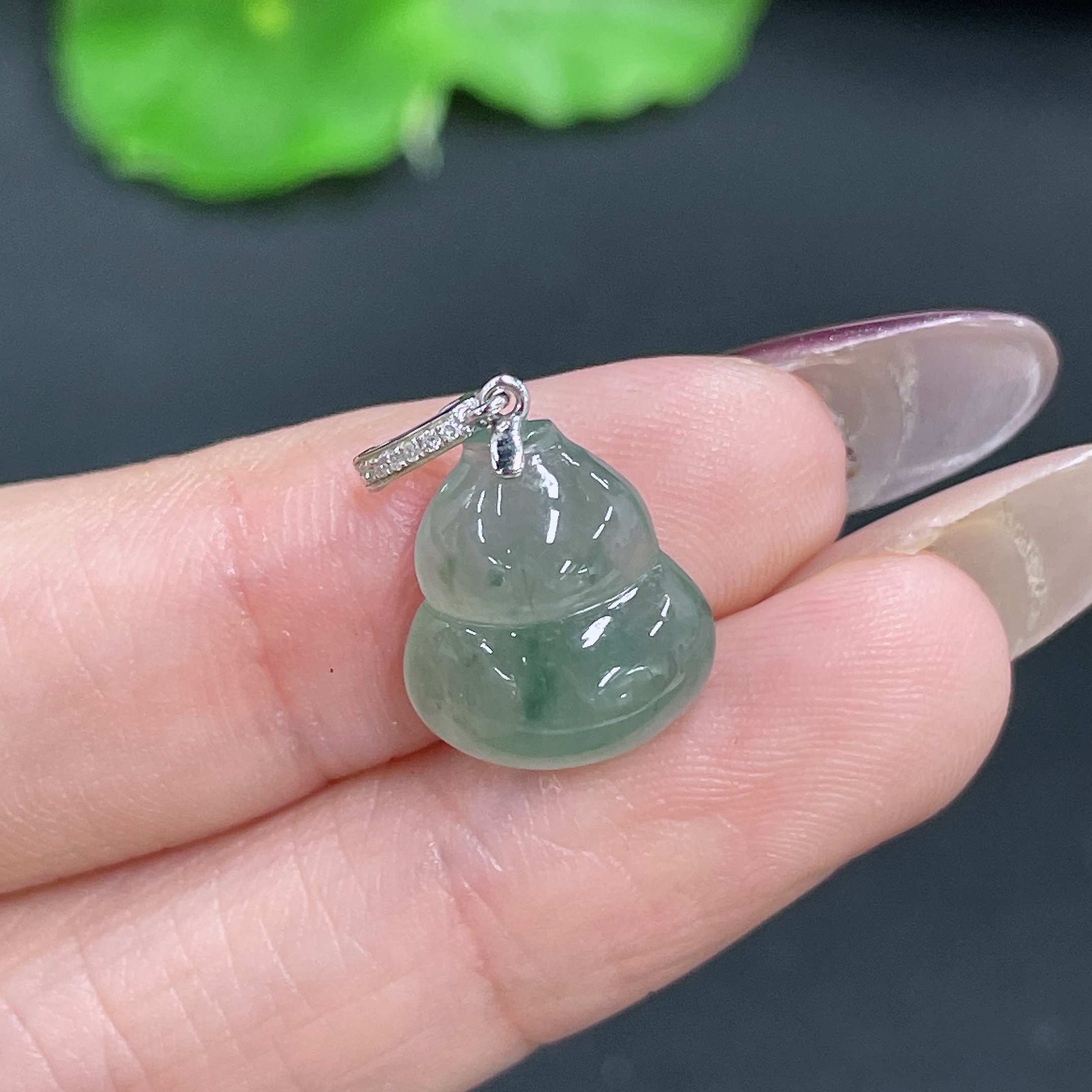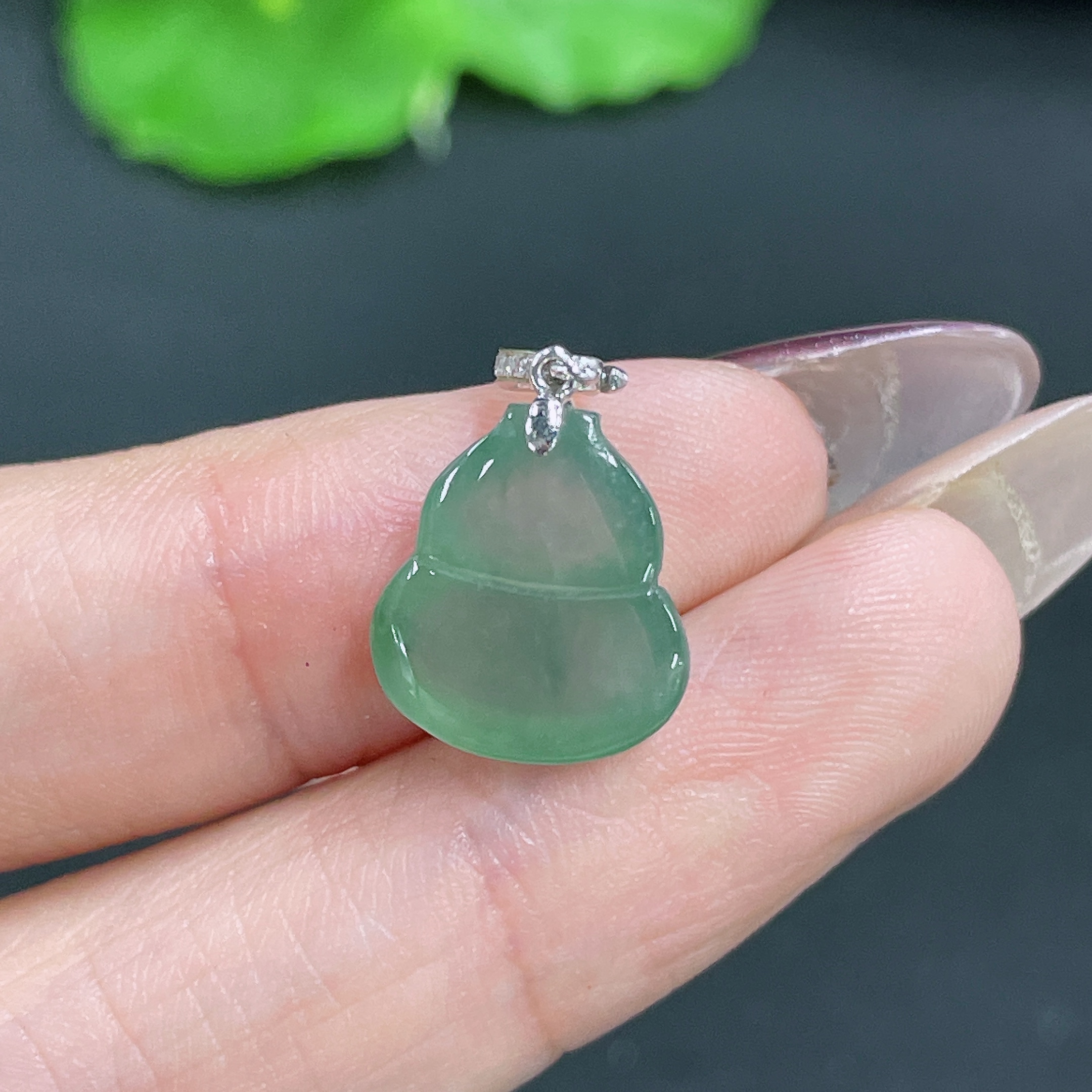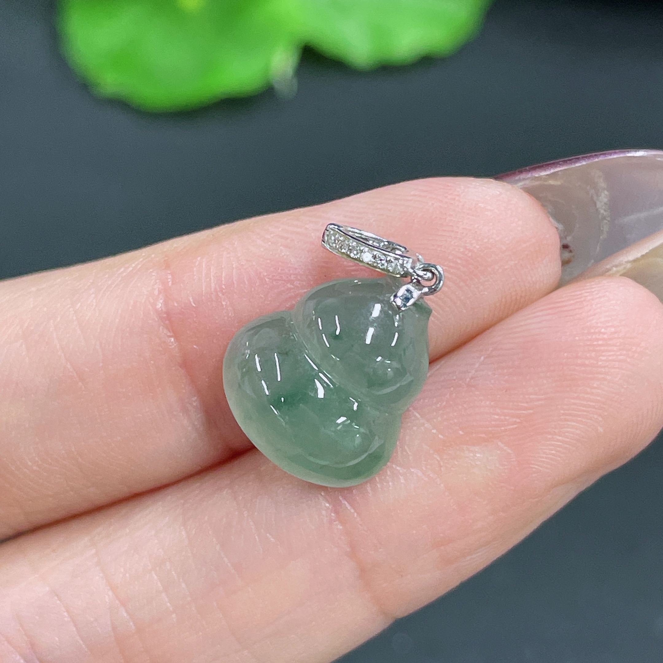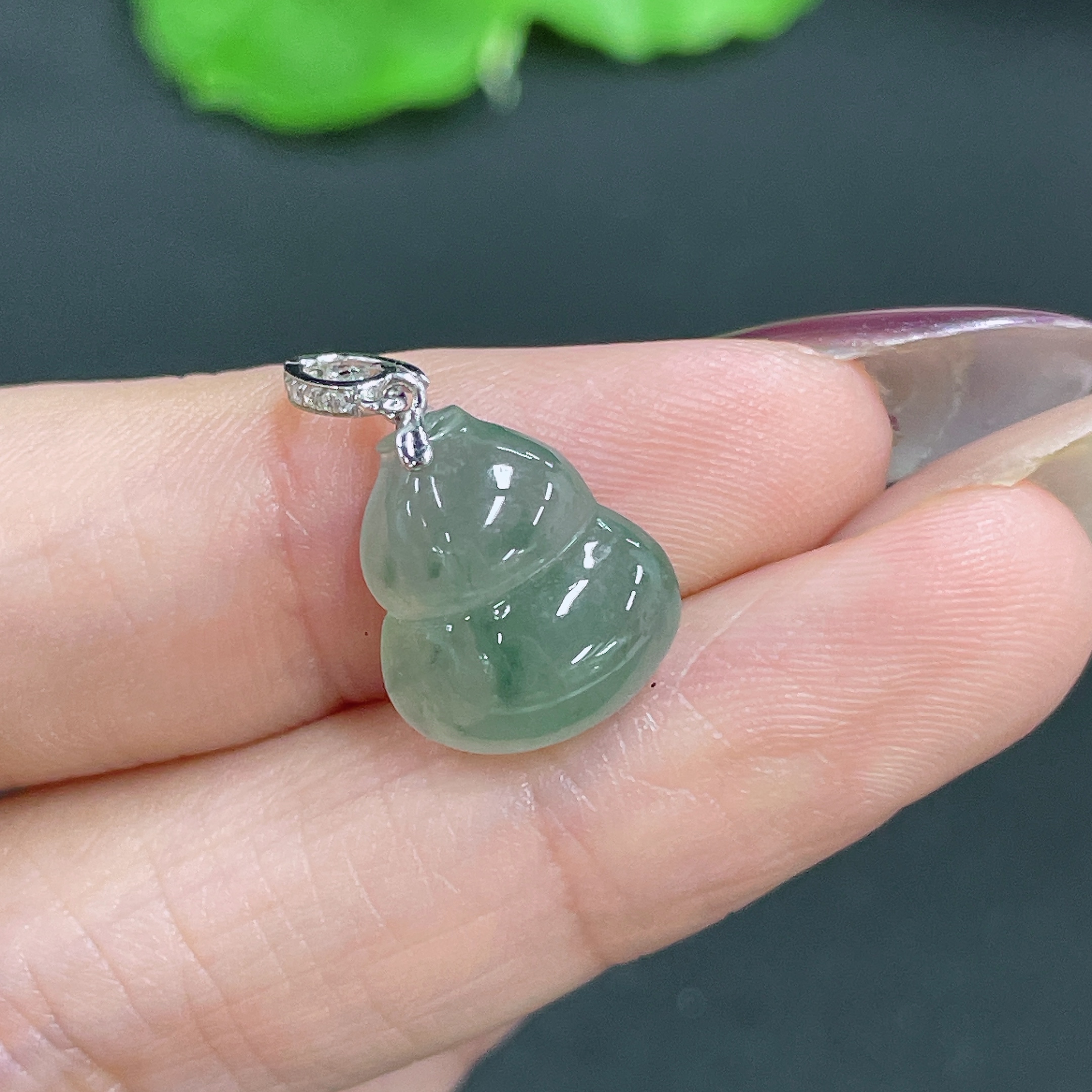 Jadeite Pendant Gourd with 18k Bail Total Weight Approx. 1.66g