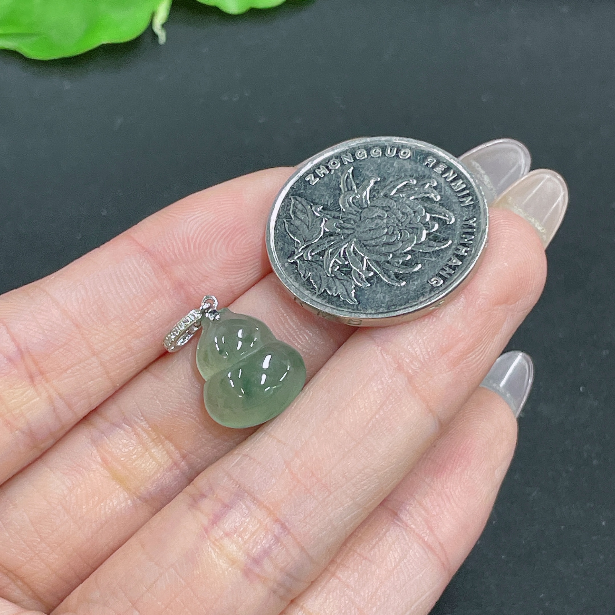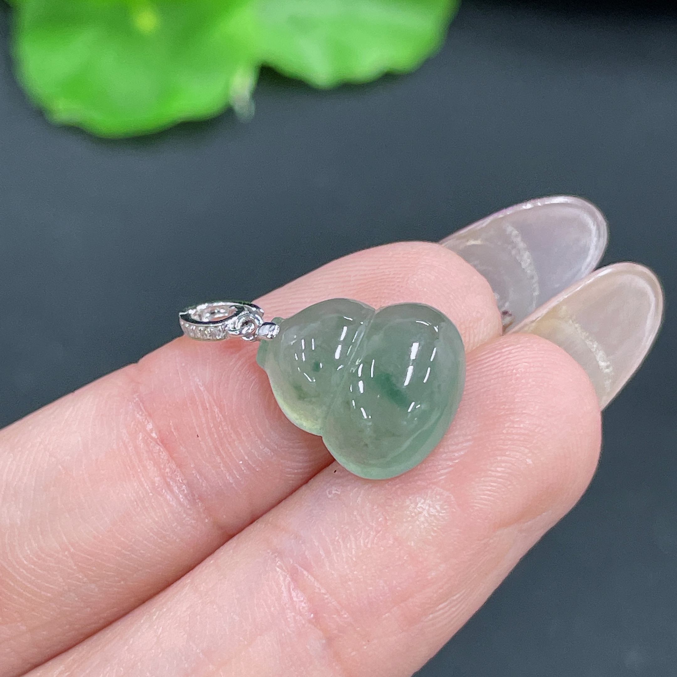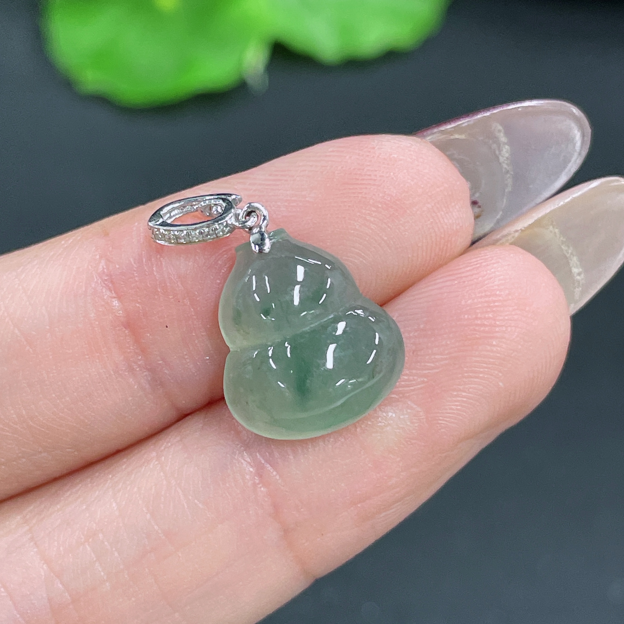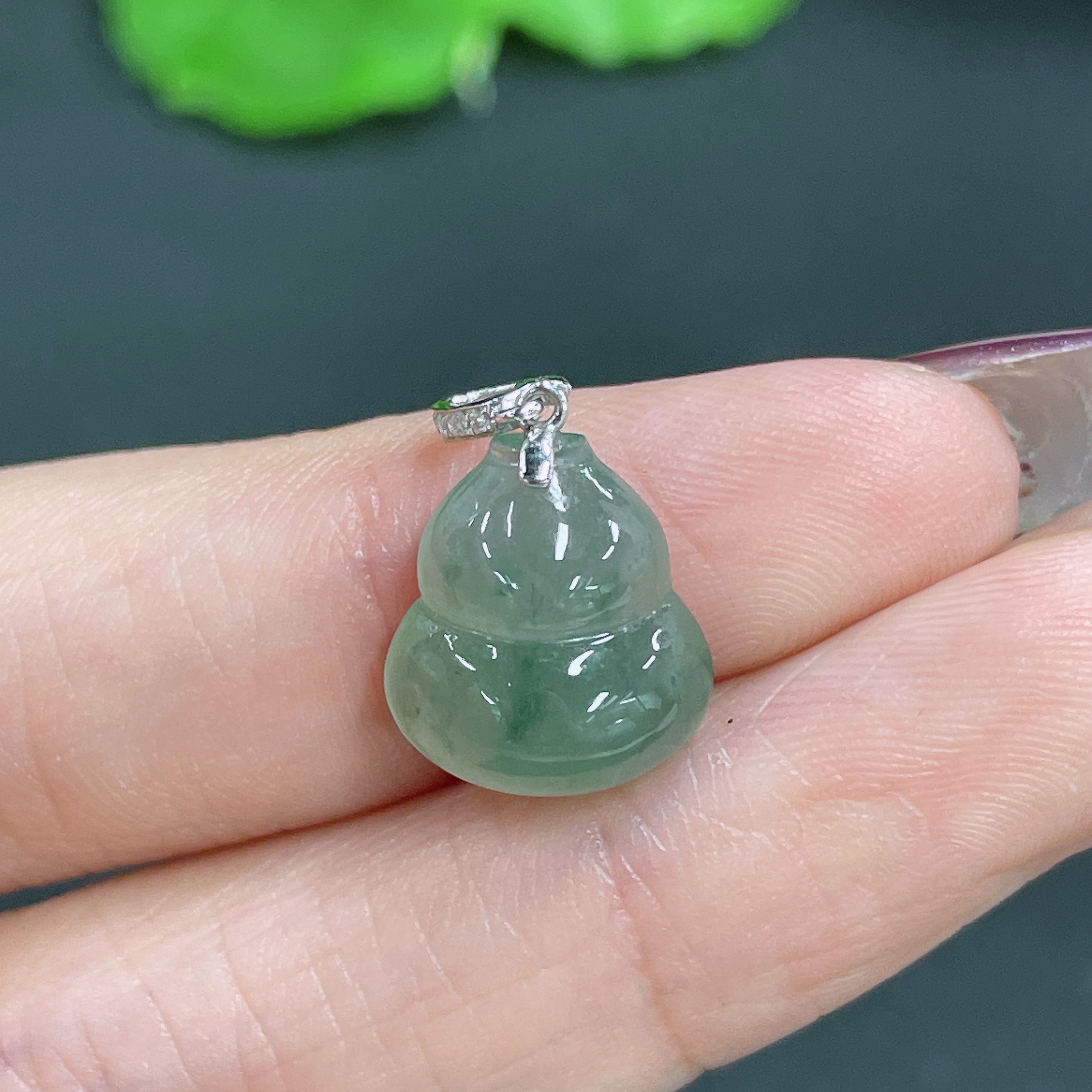 Jadeite Pendant Gourd with 18k Bail Total Weight Approx. 1.66g
