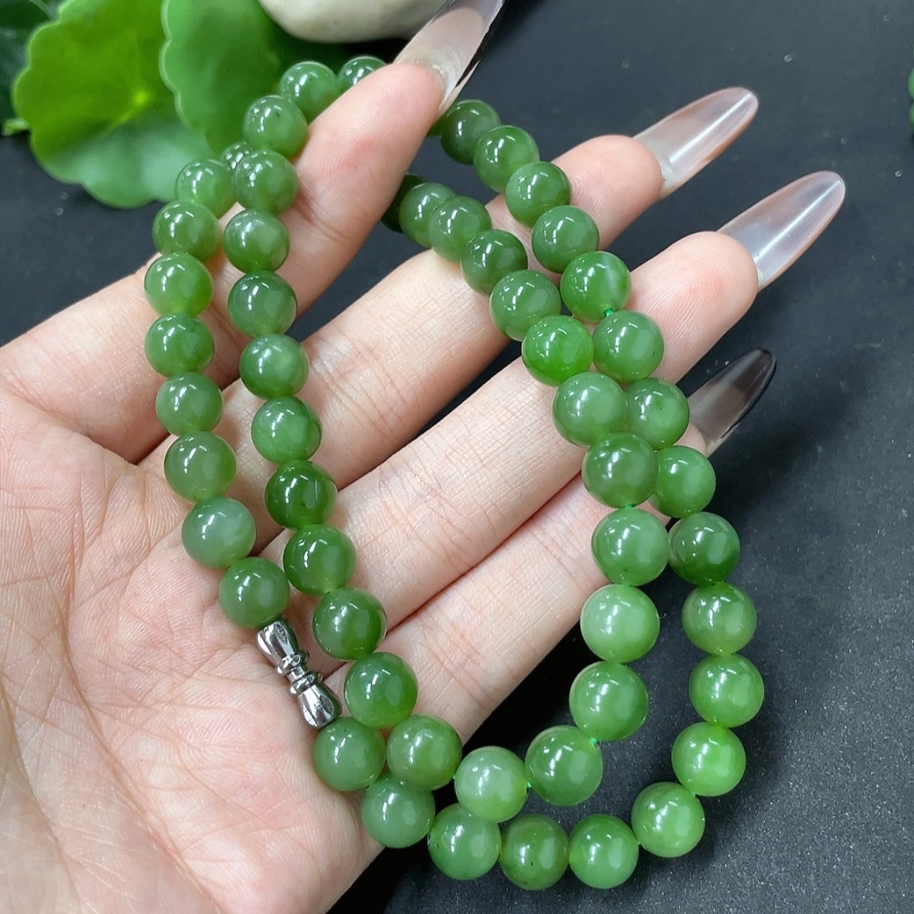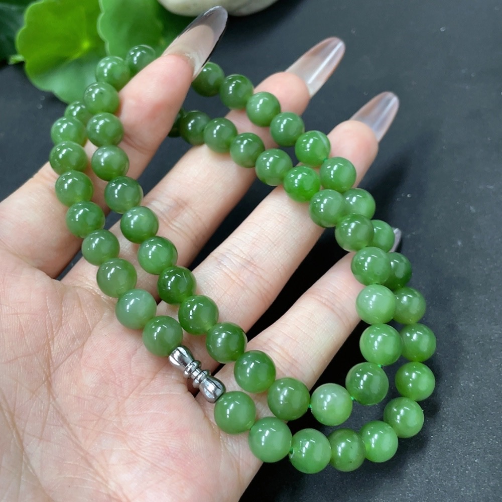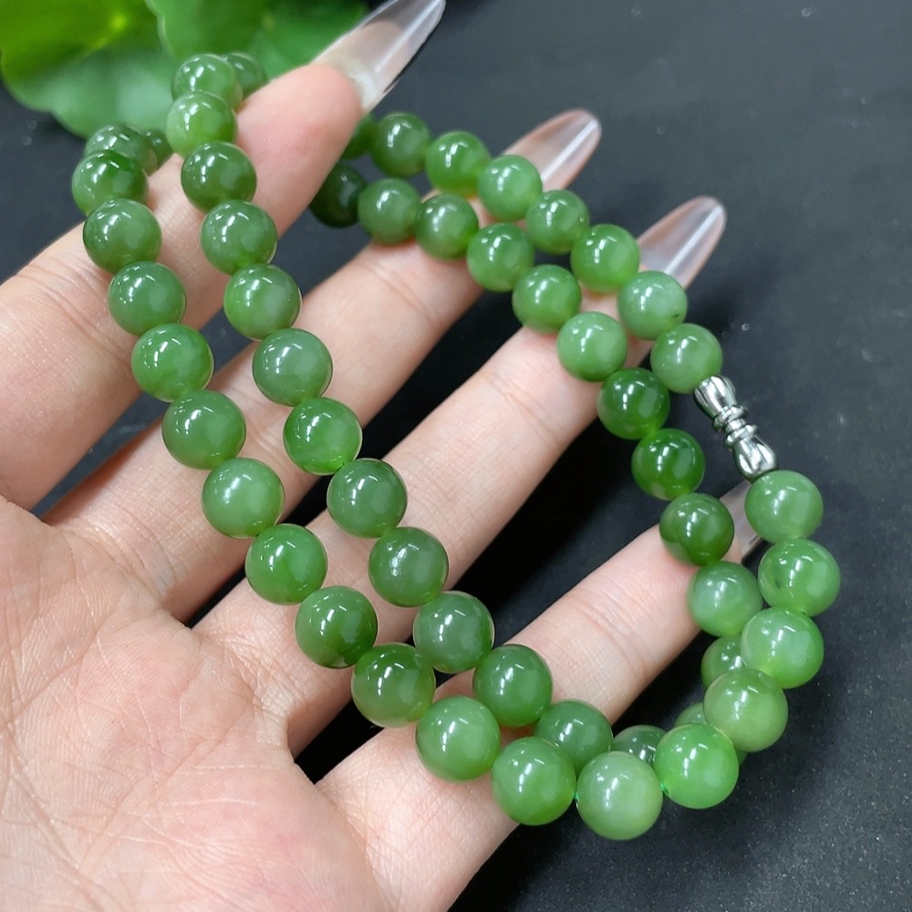 Hetian Jade Bead Necklace Non-Gold About 7.8mm Total Weight About 45.4g