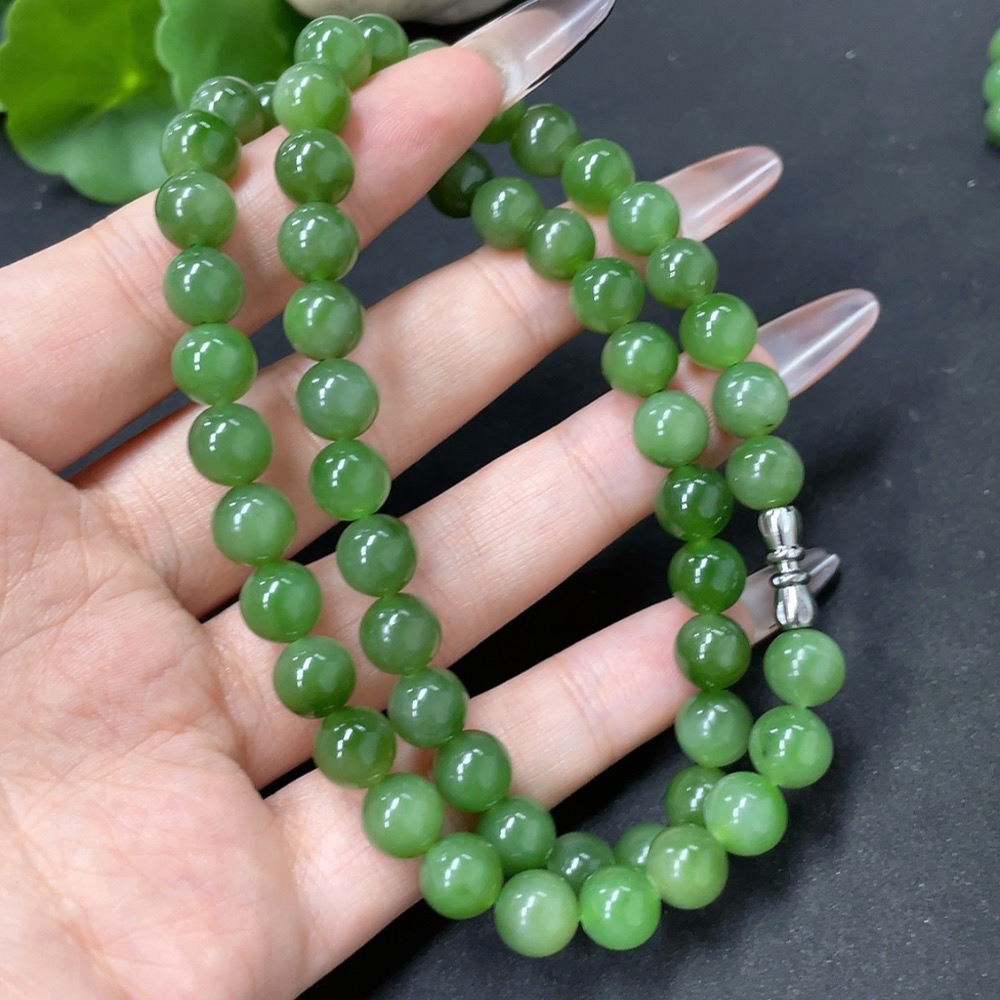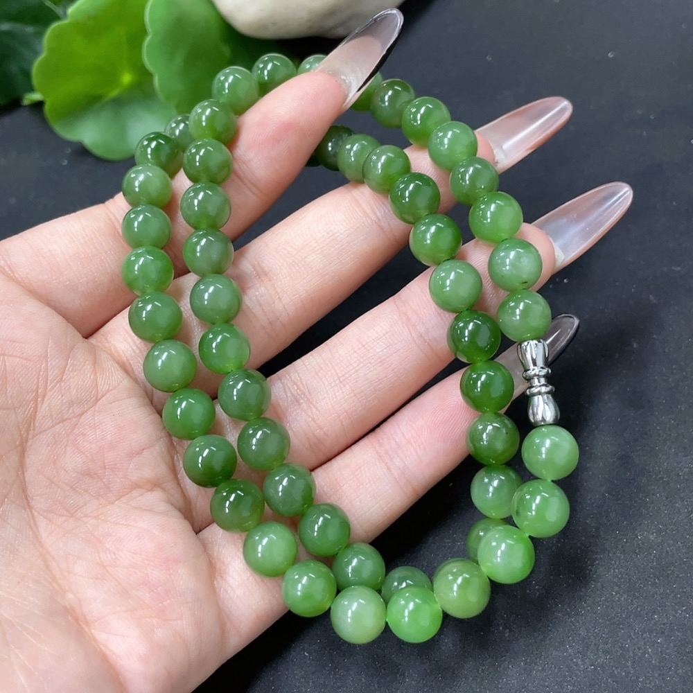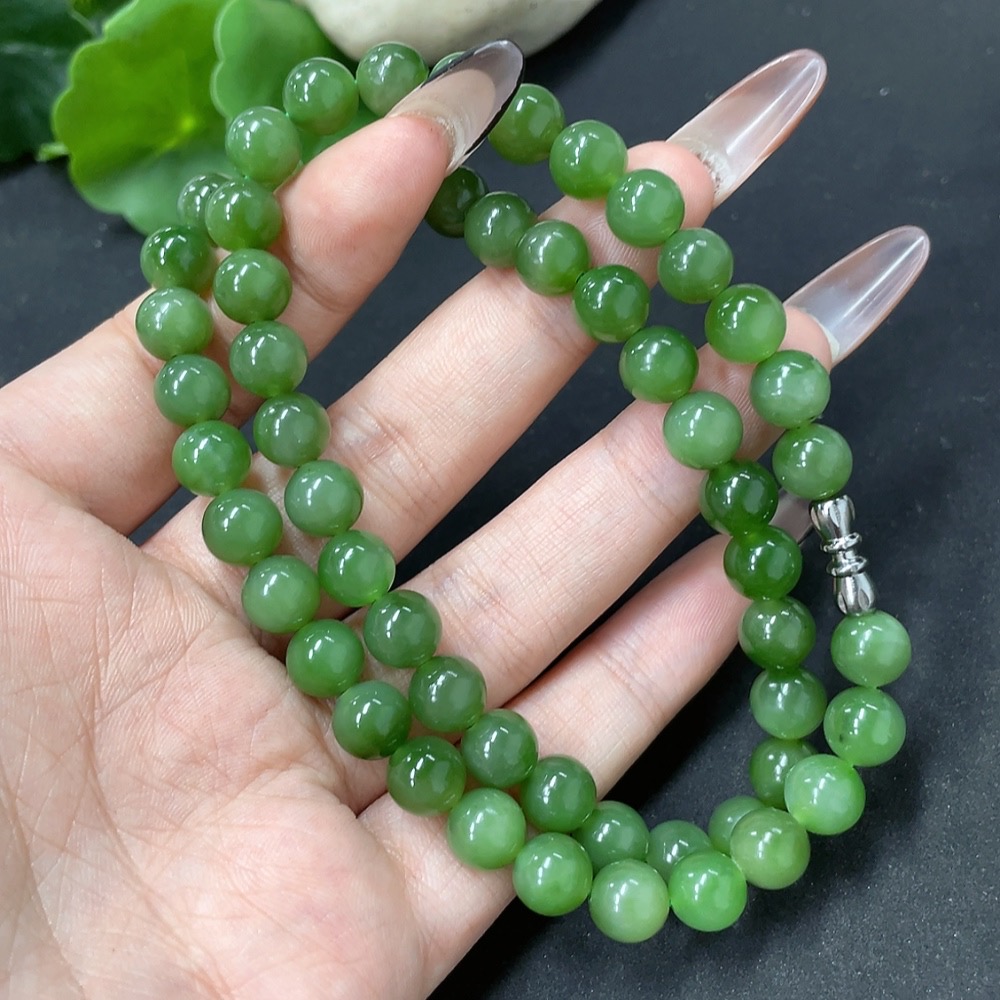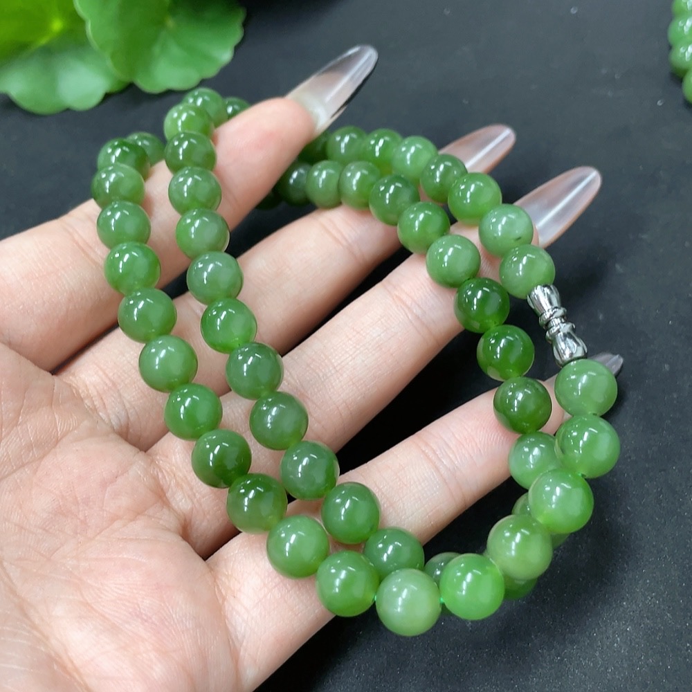 Hetian Jade Bead Necklace Non-Gold About 7.8mm Total Weight About 45.4g