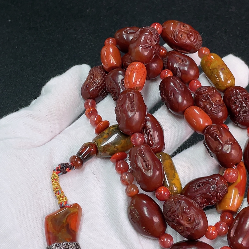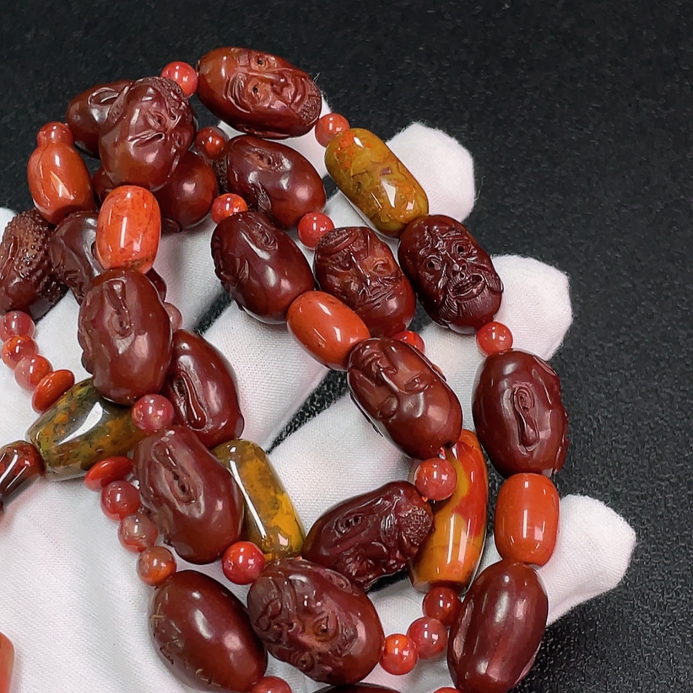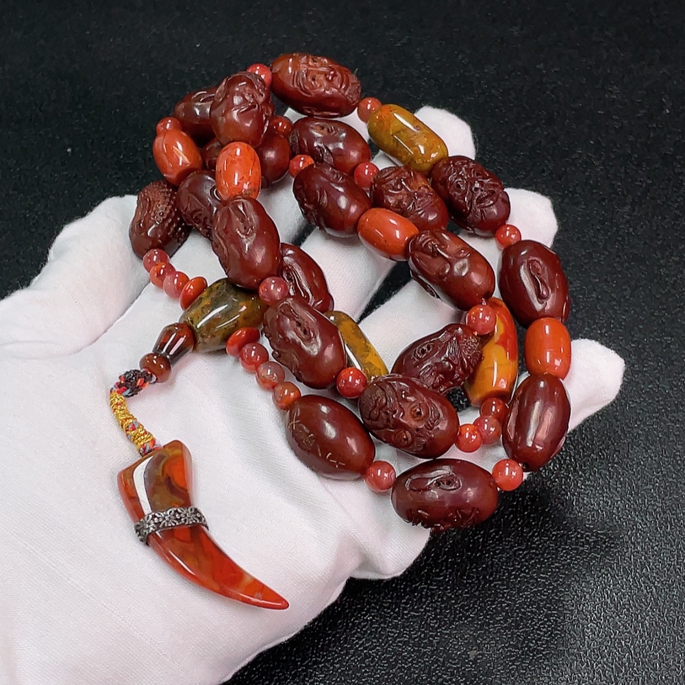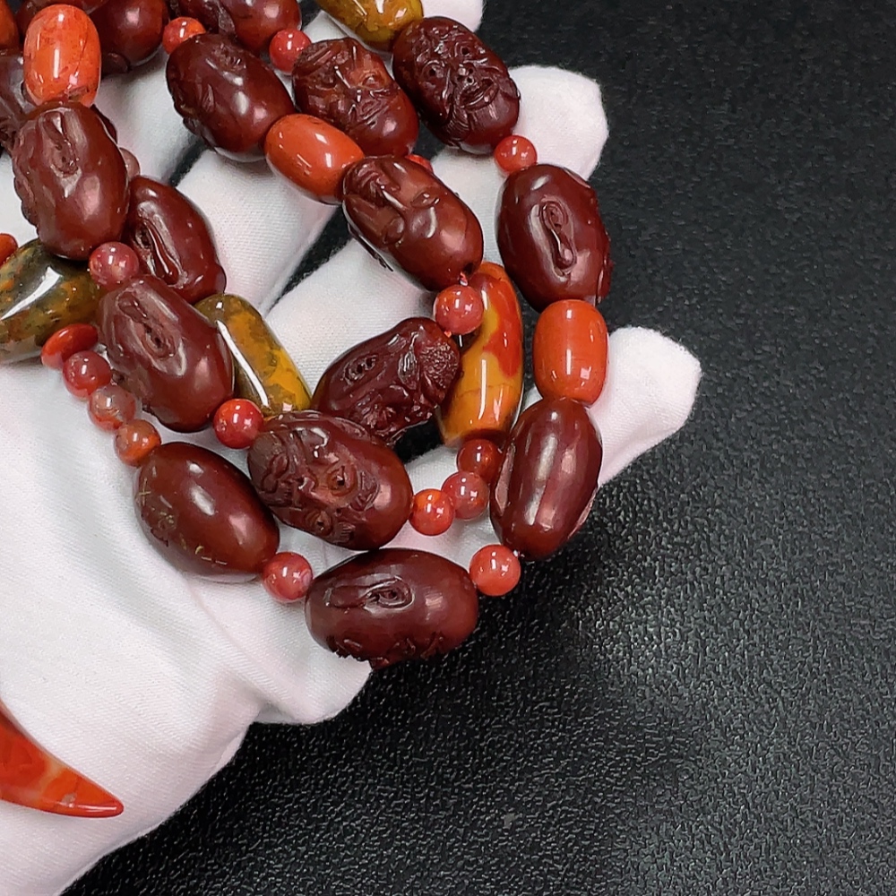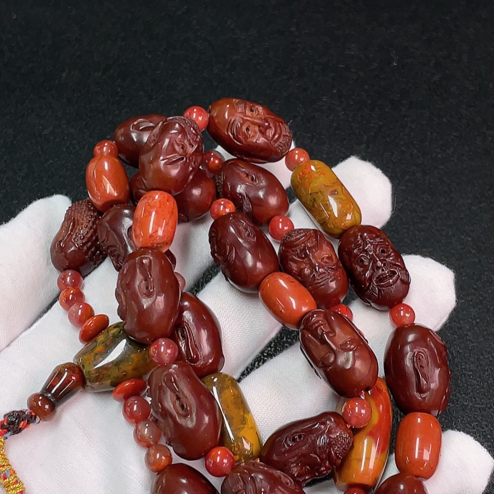 Warring States Red Agate Bead Strand with Southern Red, Visible Organic Matter, Total Weight Approx. 96.74g, Non-Gold