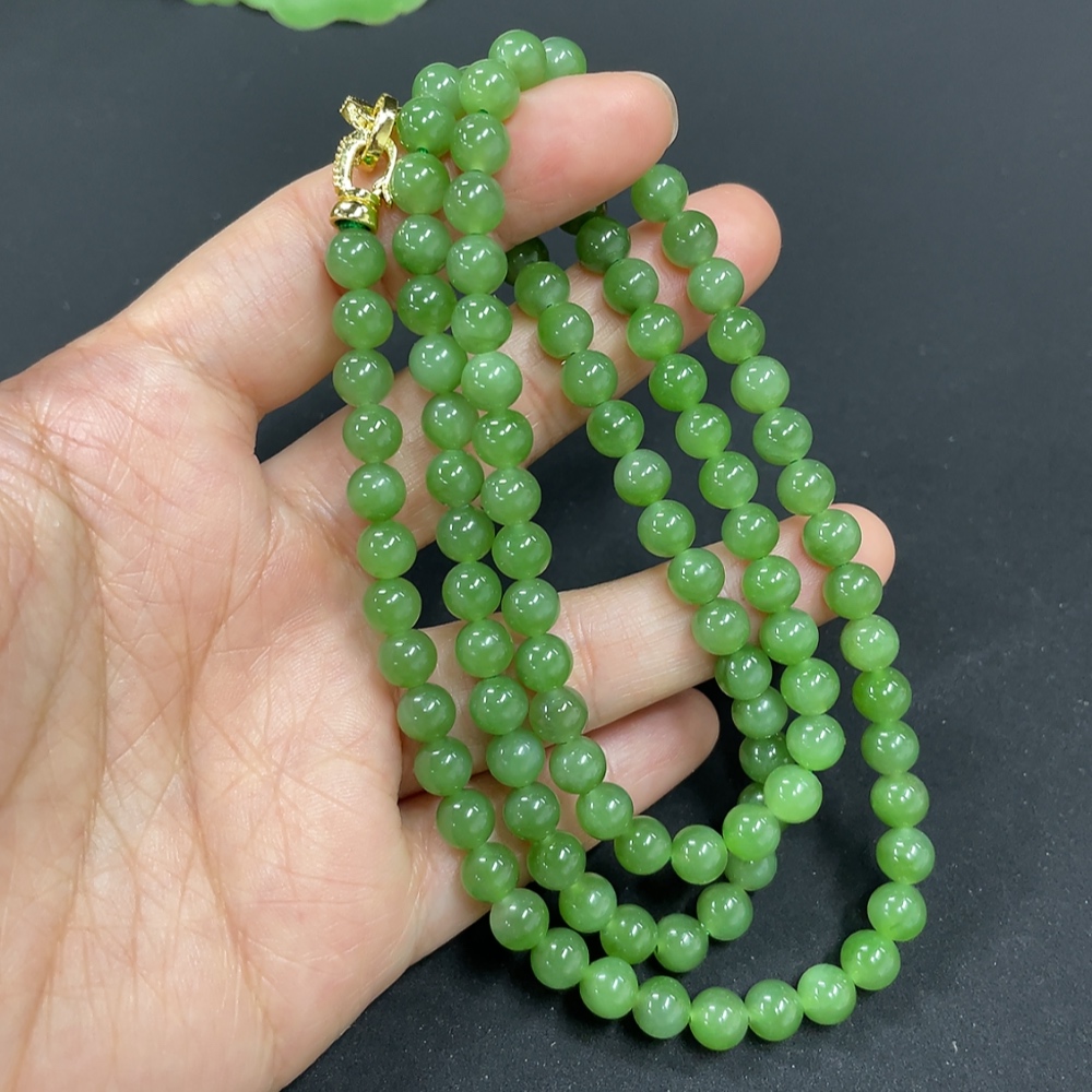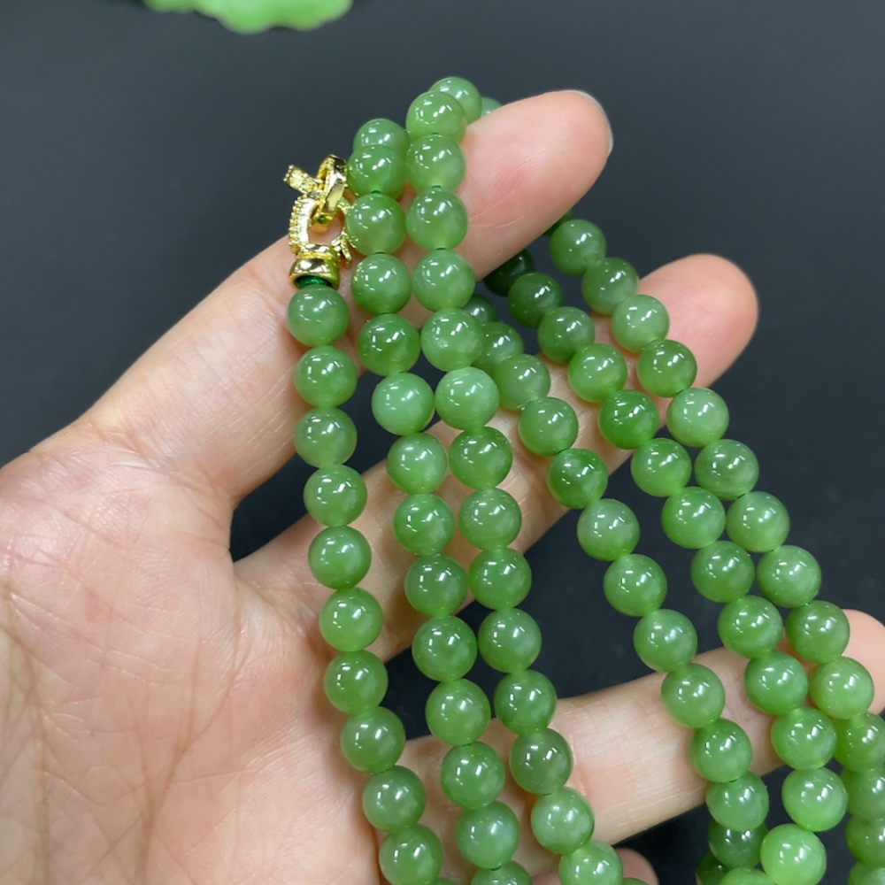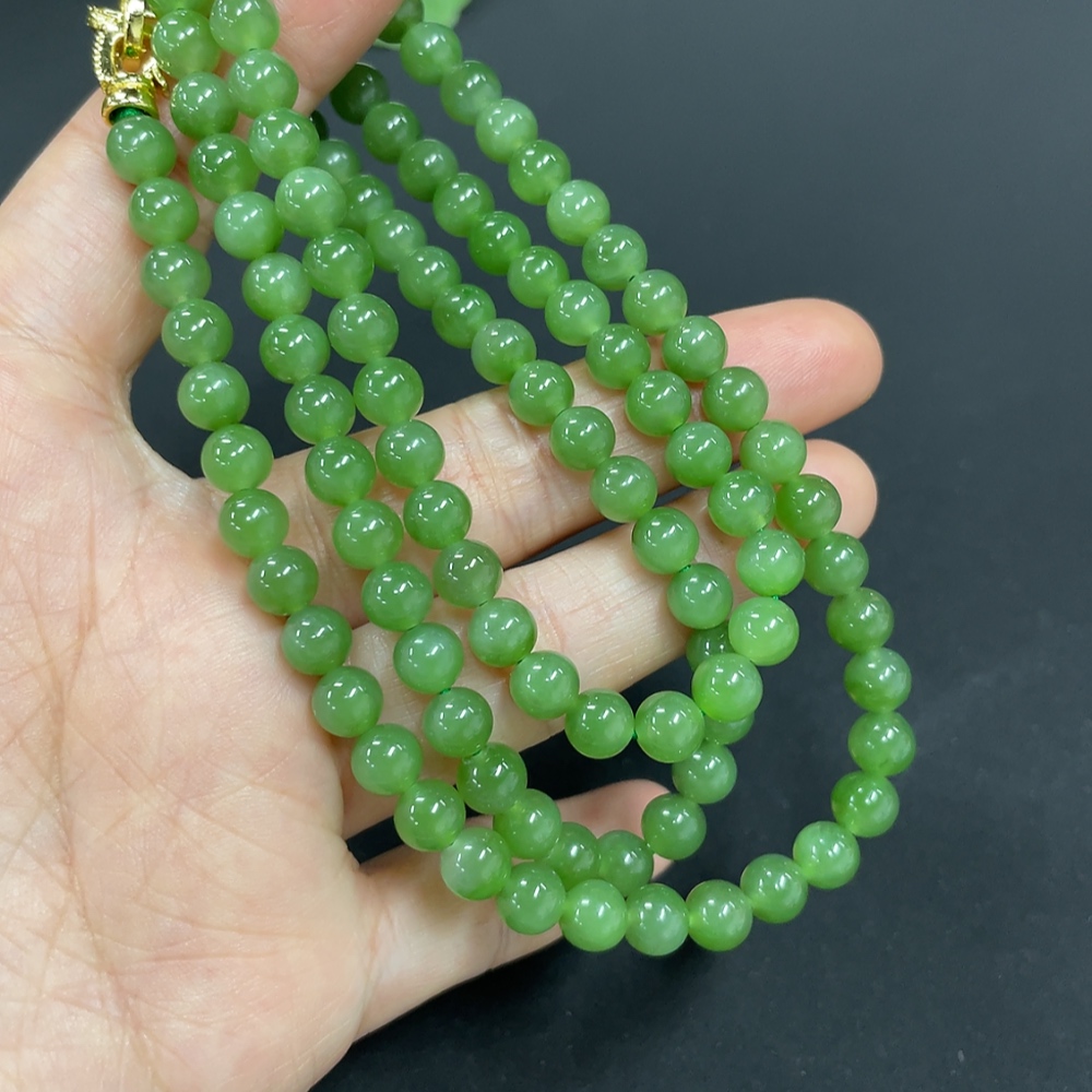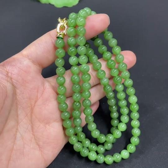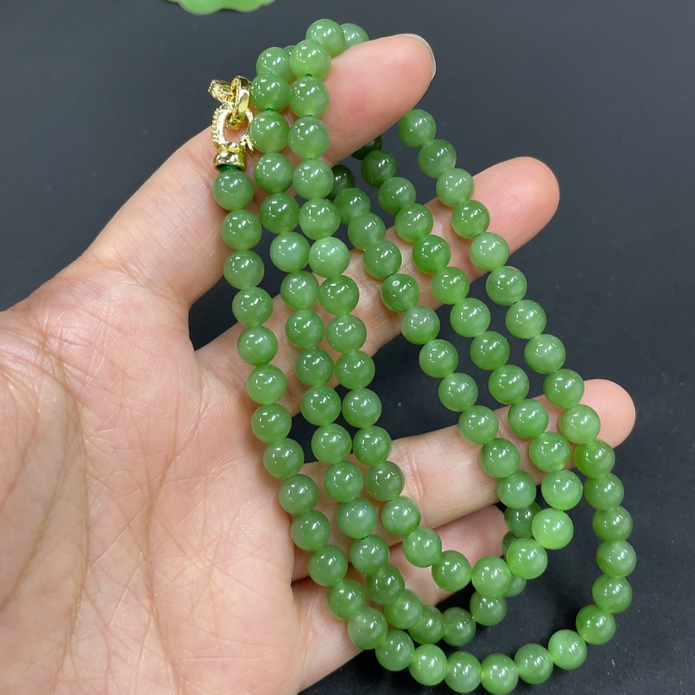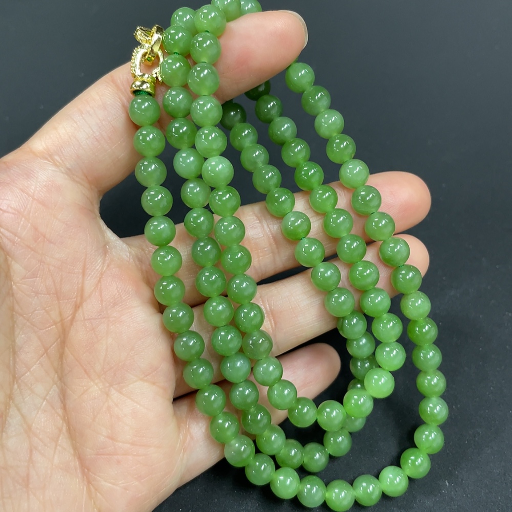 Hetian Jade Jasper Bead Necklace Approx. 5.8mm Non-Gold-Inlaid Total Weight About 38g