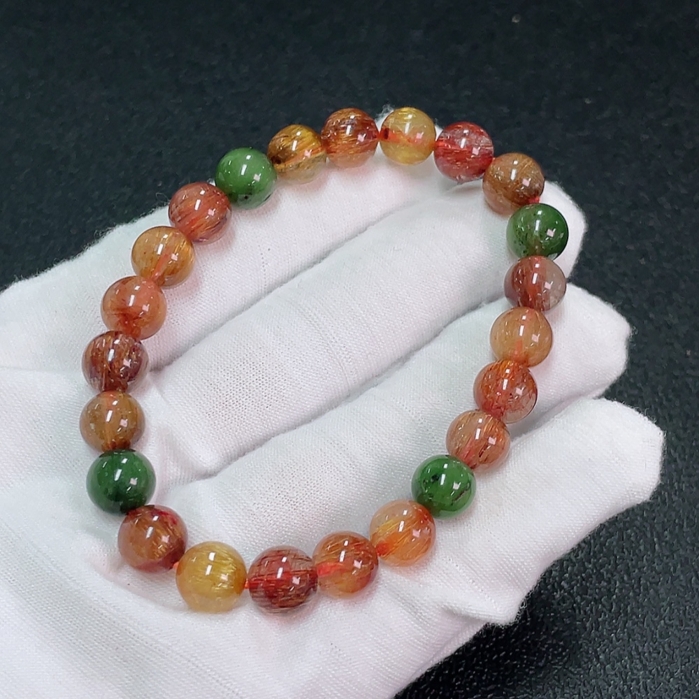 Crystal Bracelet, Color Origin Undetermined, Visible Organic Matter, Non-Natural Accent Stones Considered, Total Weight Approx. 20.75g, Size Approx. 8.4mm (Color)