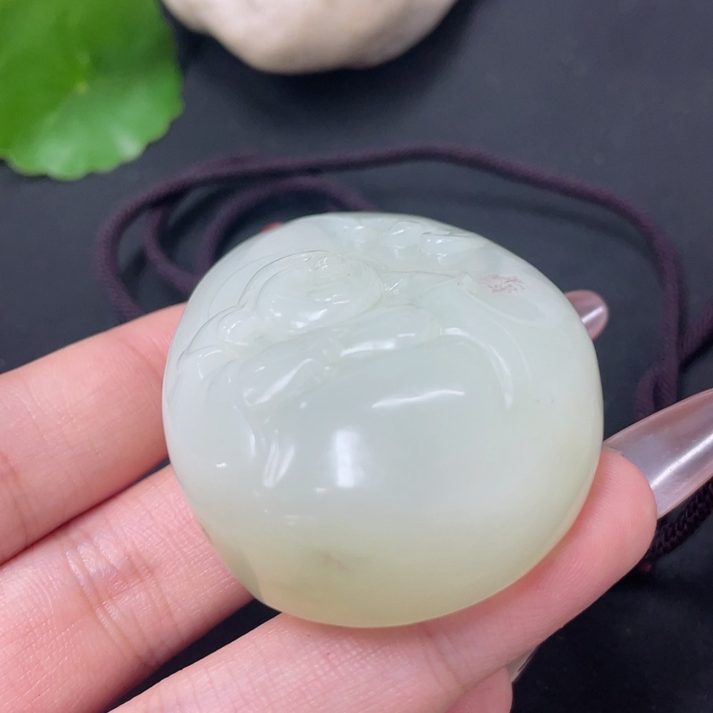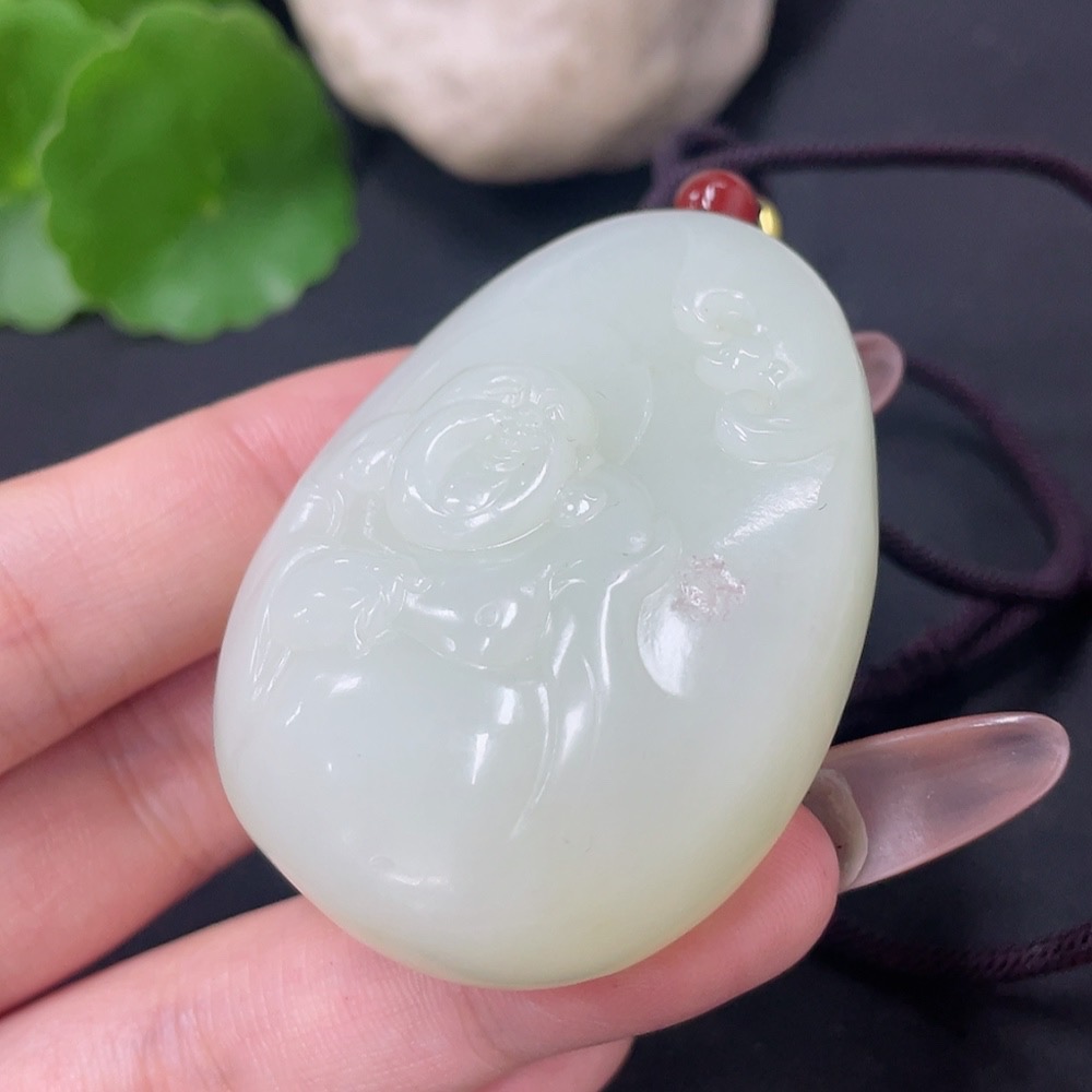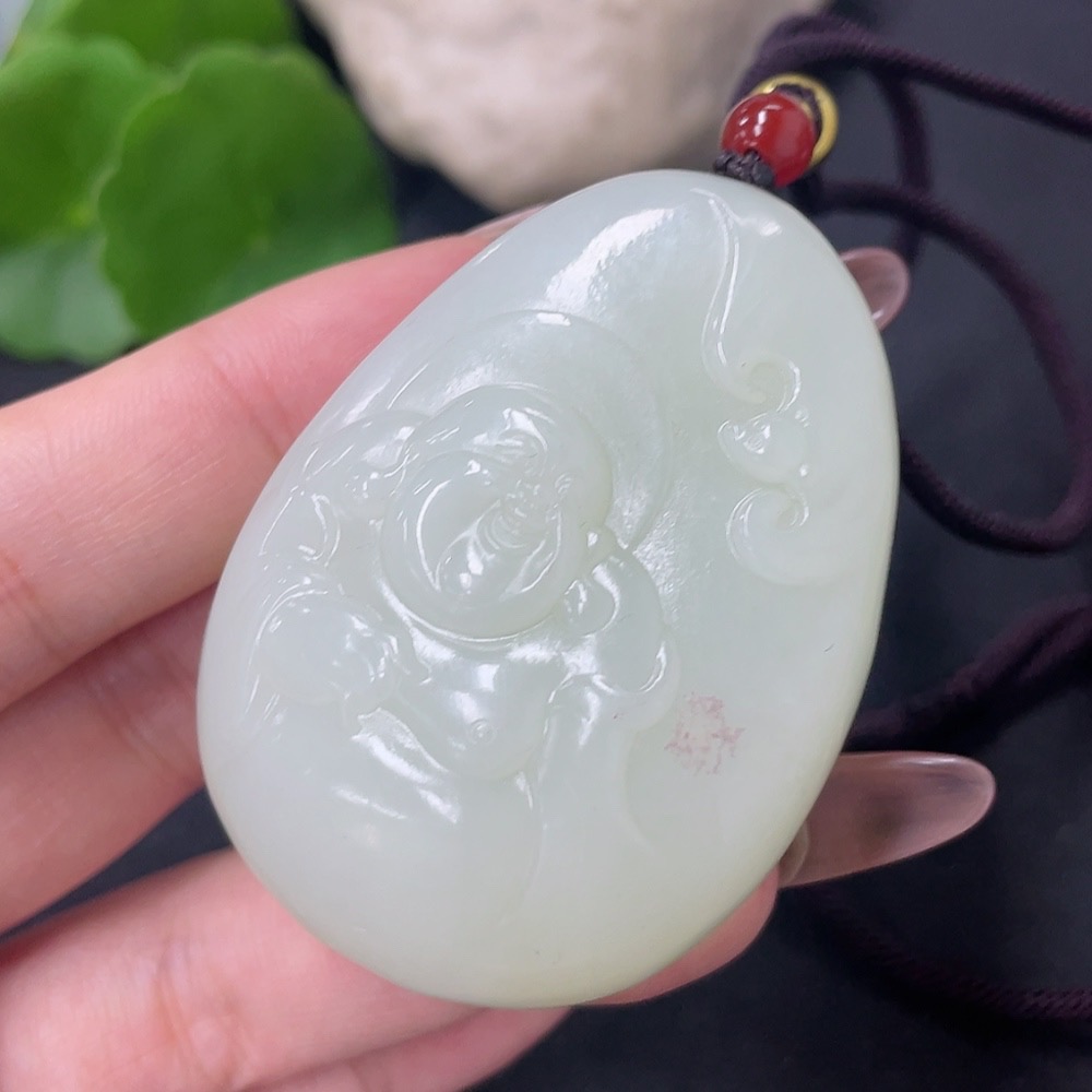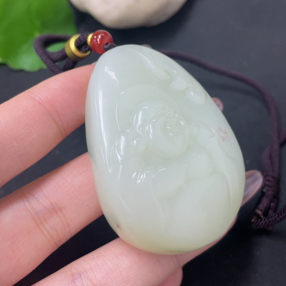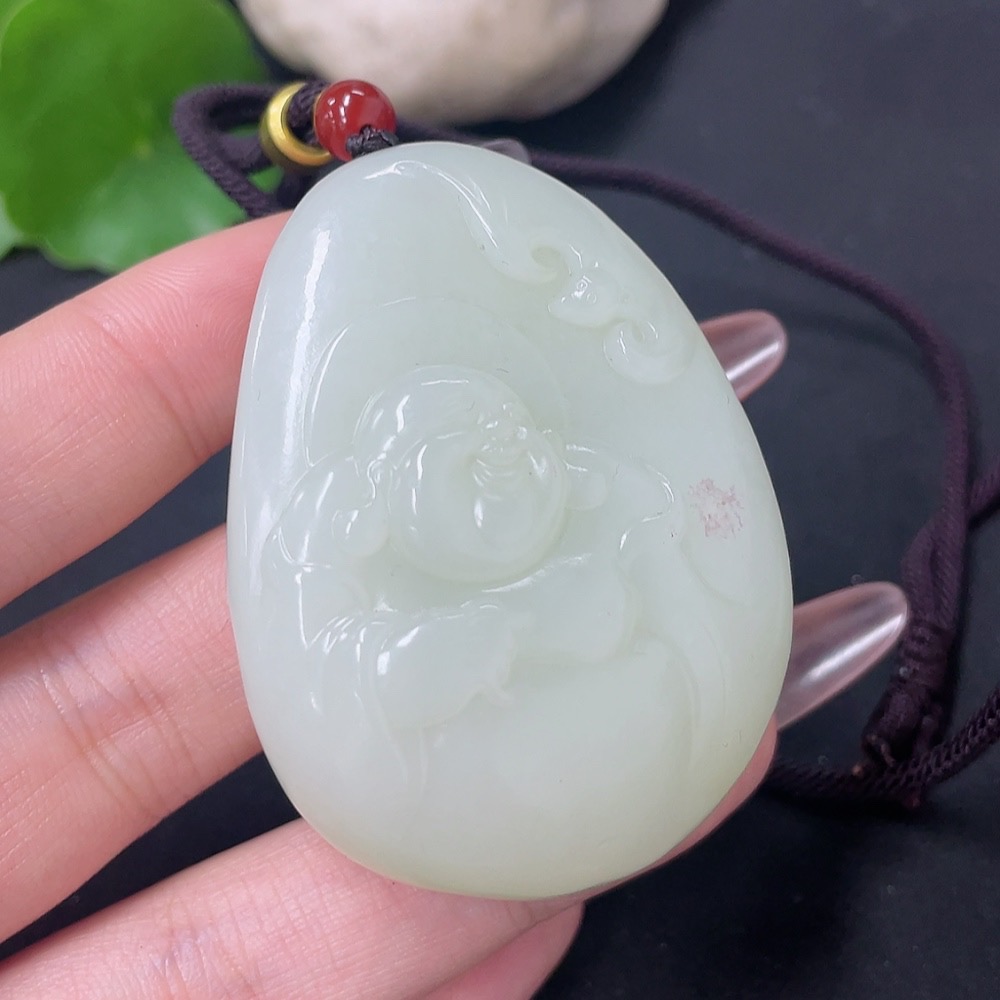 Hetian Jade Pendant - Buddha with Non-Hetian Jade Beads, Total Weight (including cord) Approx. 77.6g