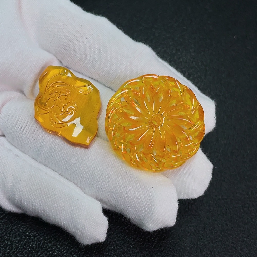 Amber Beeswax Pendant, Total Weight Approx. 5.88g, Colorless Film Coated
