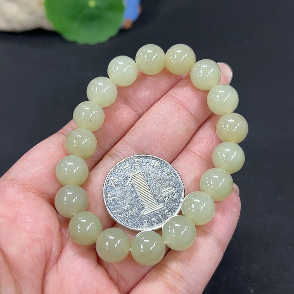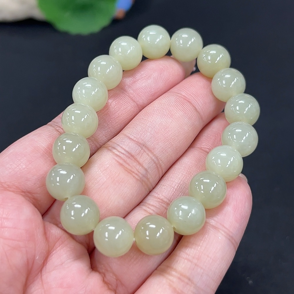 Hetian Jade Bracelet, approx. 10mm beads, total weight approx. 27.9g