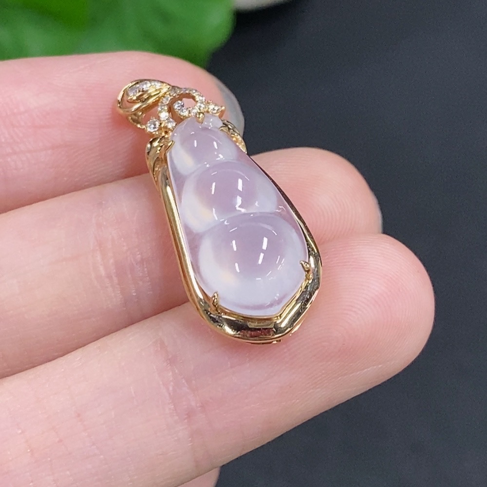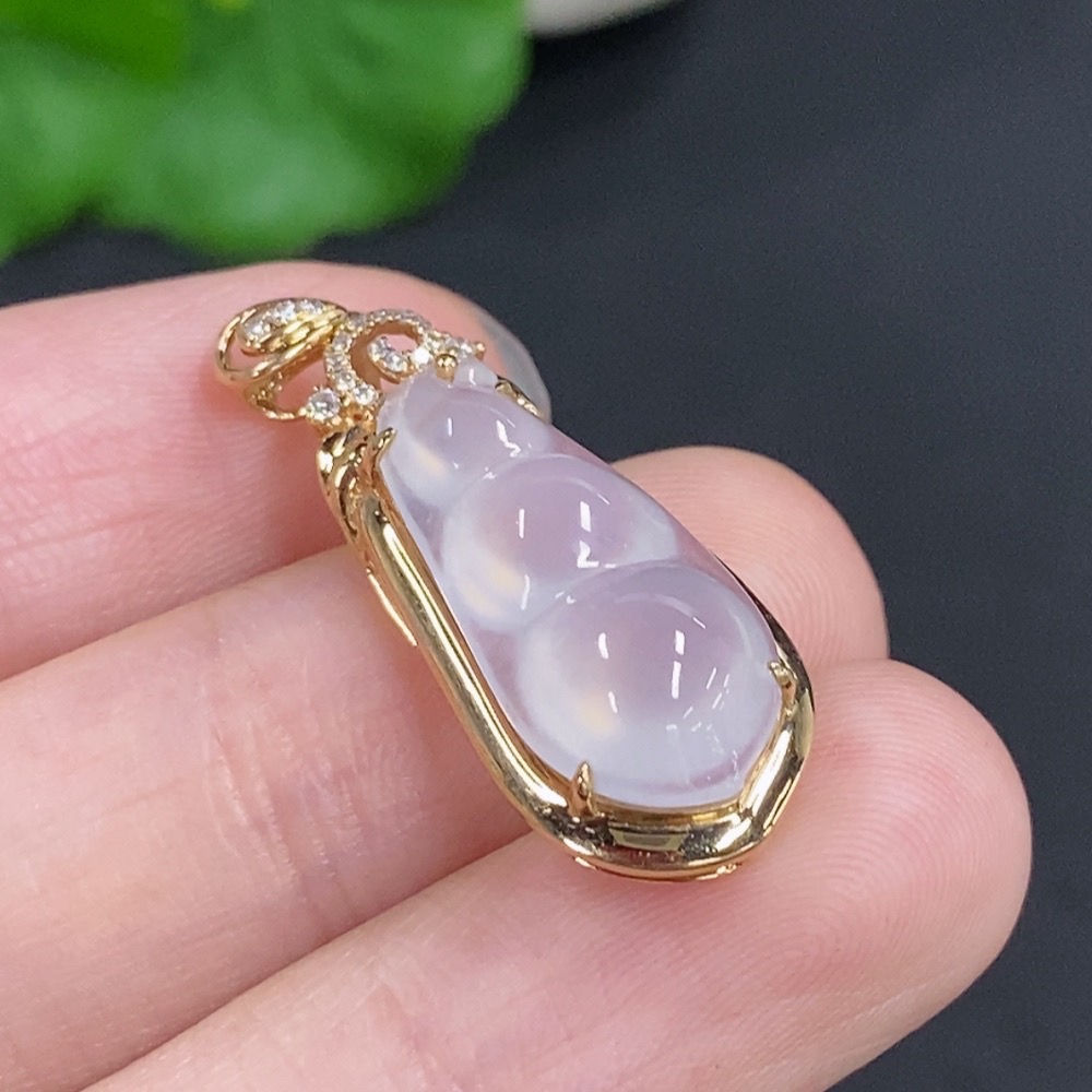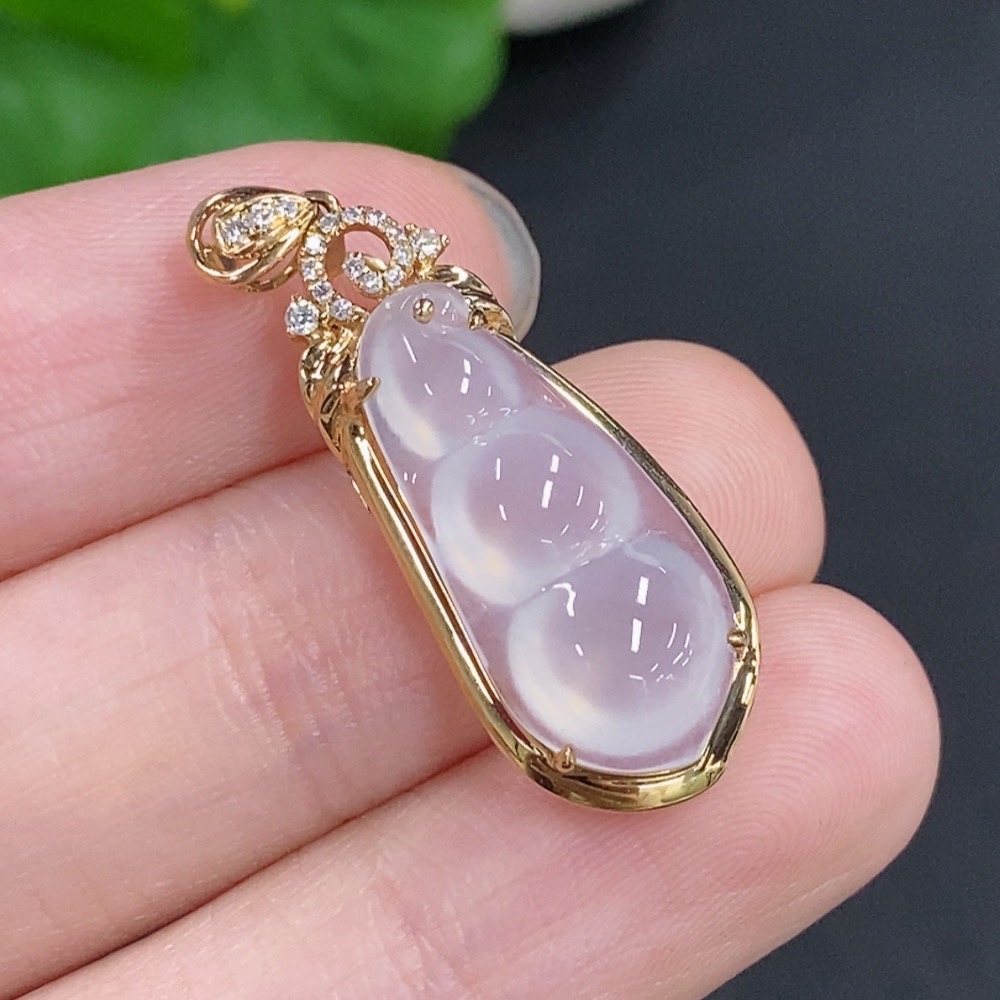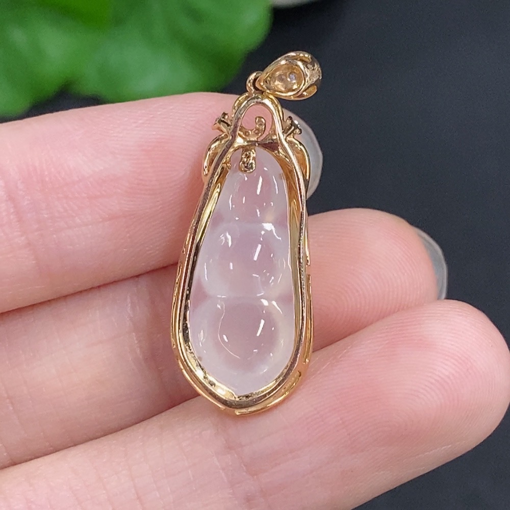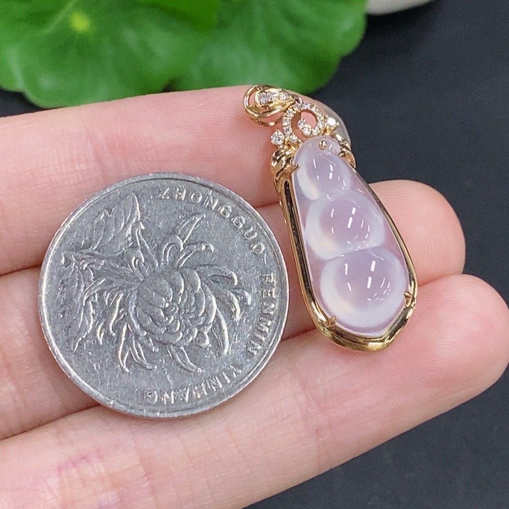 Jadeite Lucky Bean Pendant with 18K Gold and Diamonds, Total Weight Approx. 3.1g
