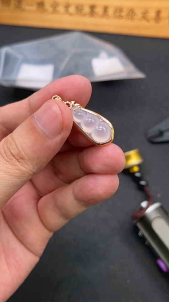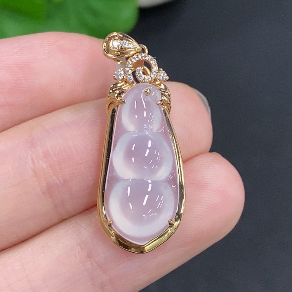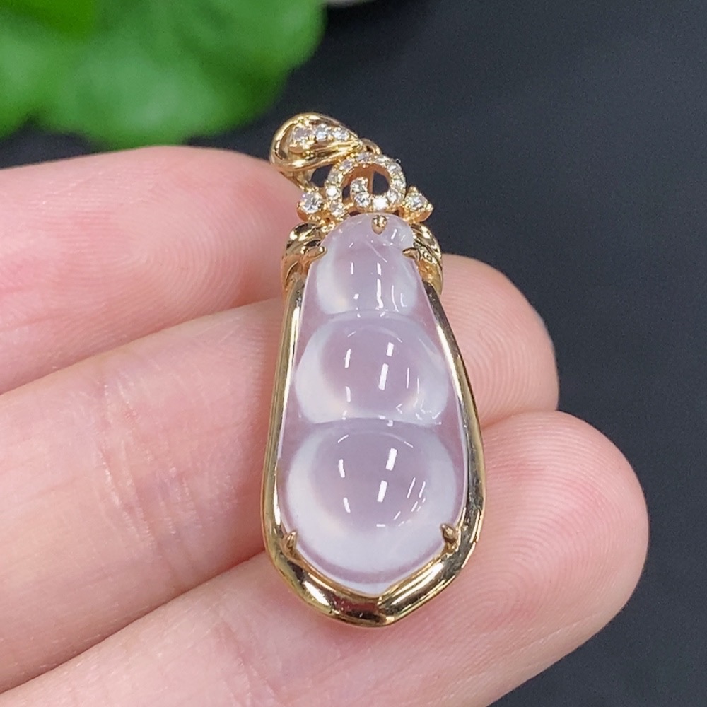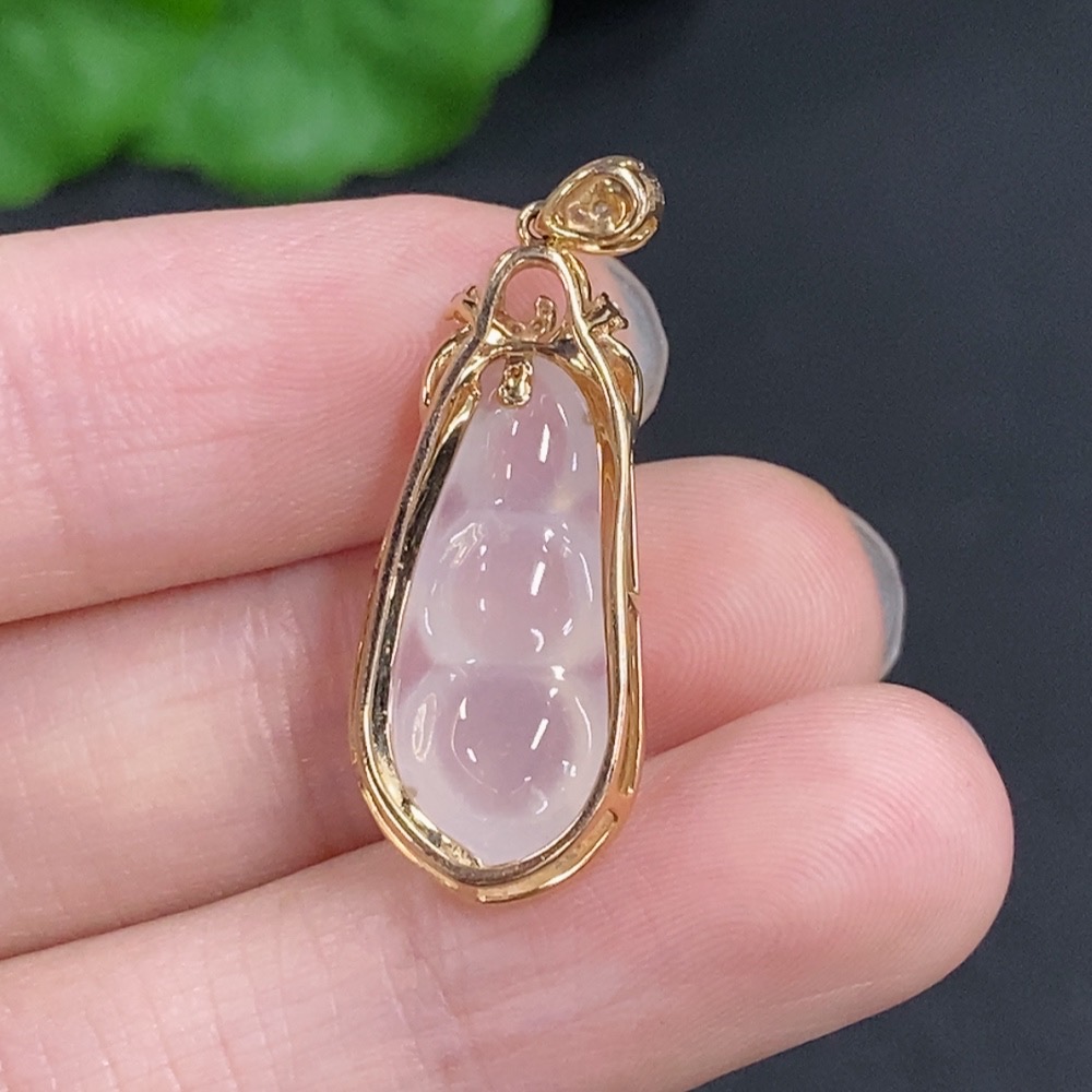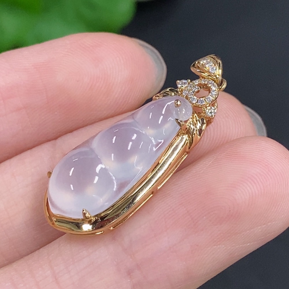Jadeite Lucky Bean Pendant with 18K Gold and Diamonds, Total Weight Approx. 3.1g