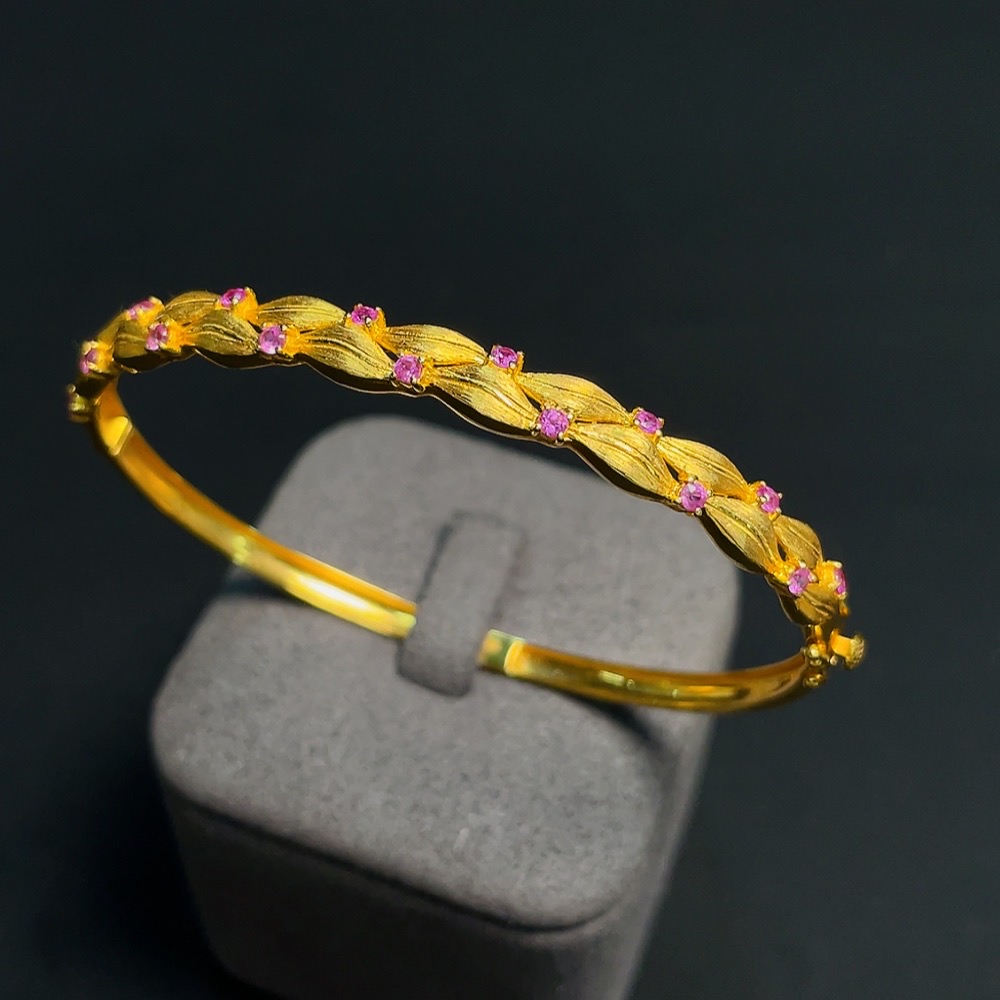 Sapphire Inlaid Bracelet 18k Gold Size 58.7 Total Weight Approx. 7.74g