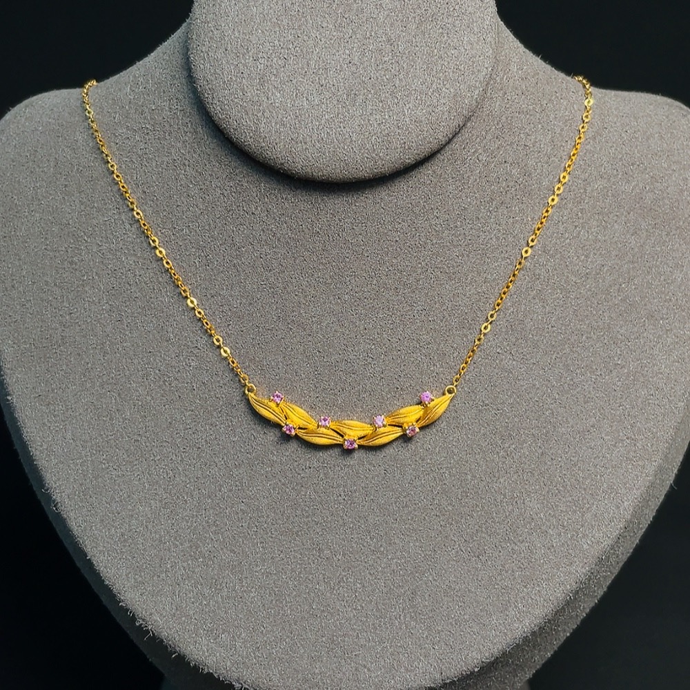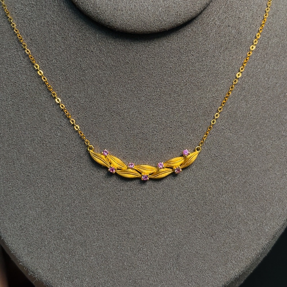Sapphire Inlaid Necklace 18k Gold Total Weight Approx. 2.60g