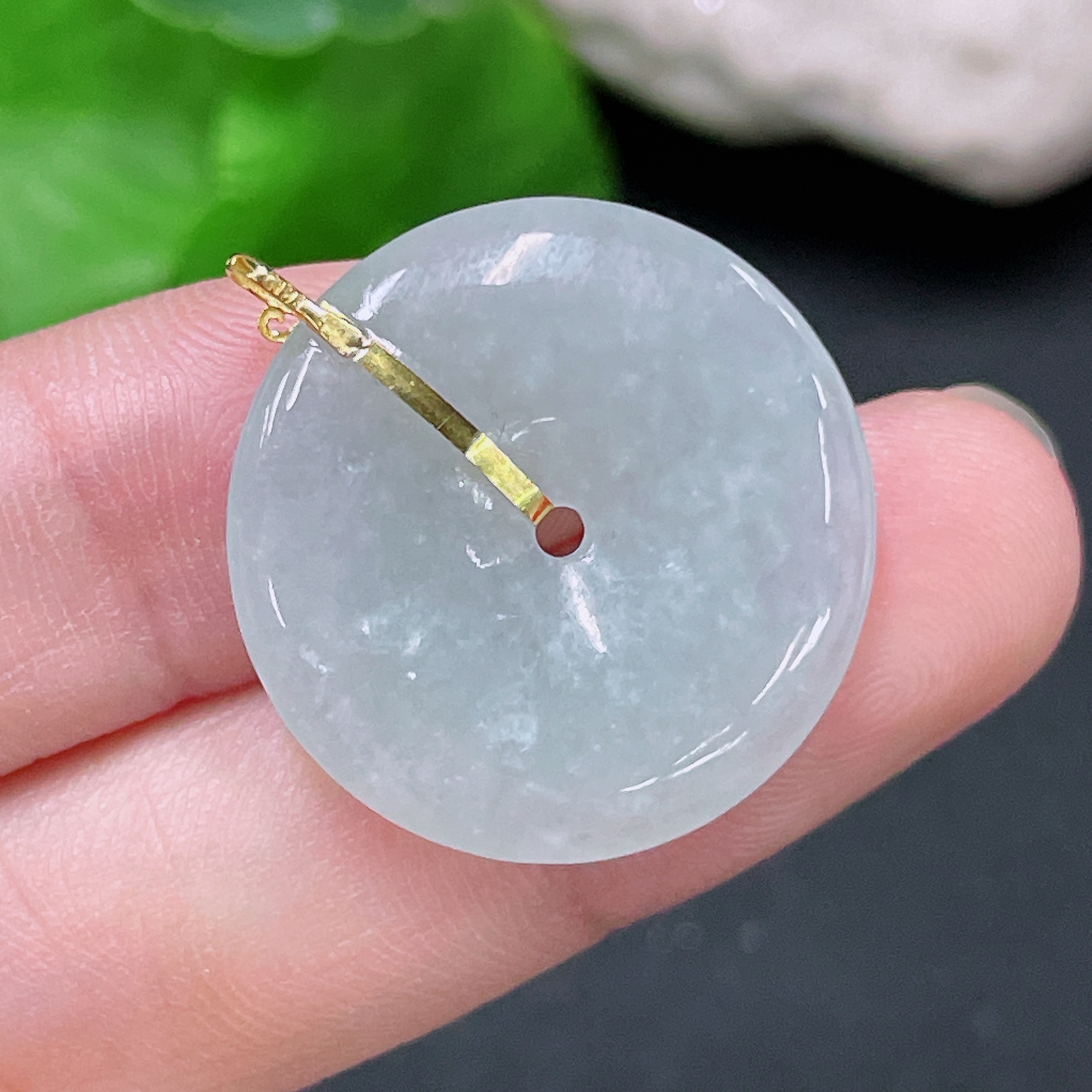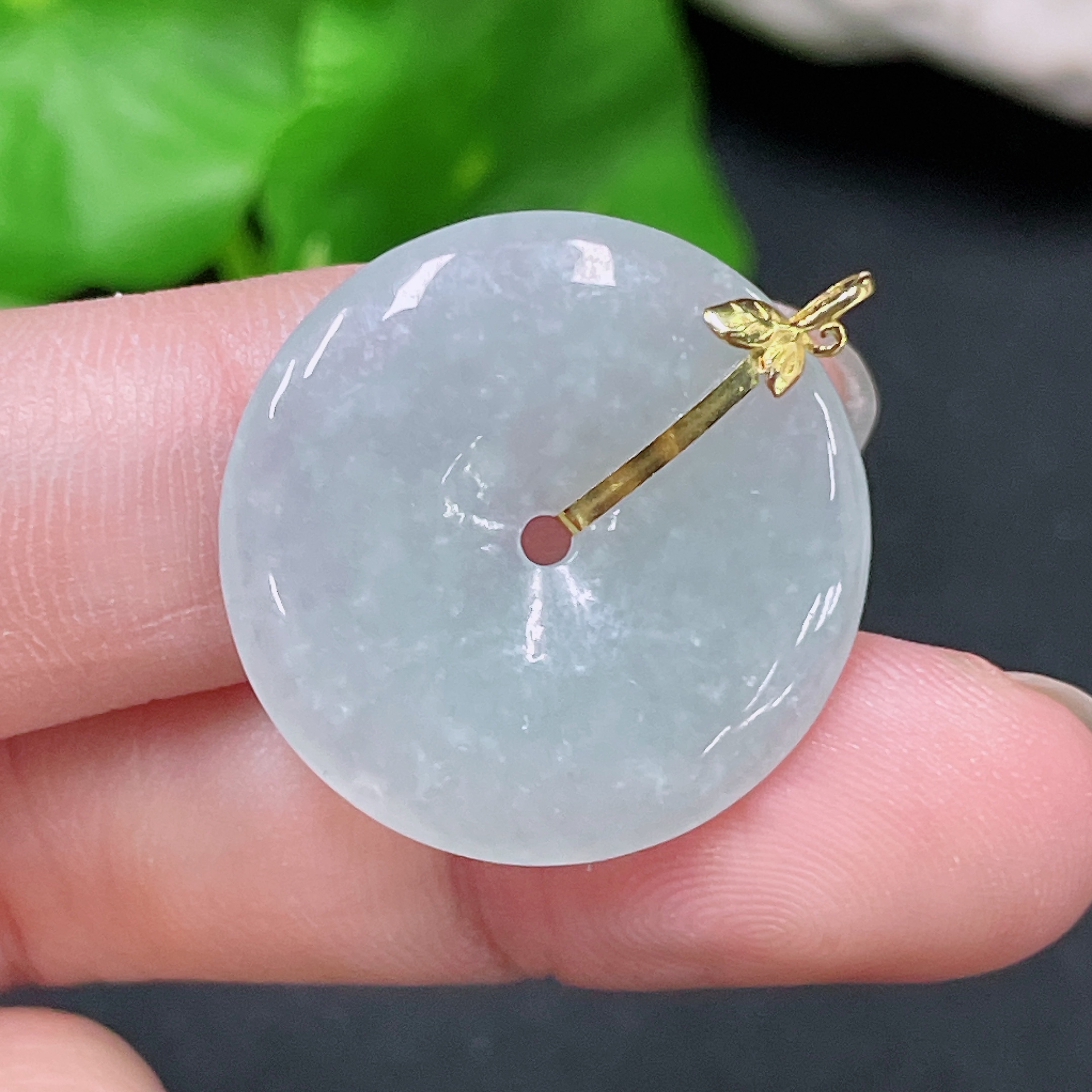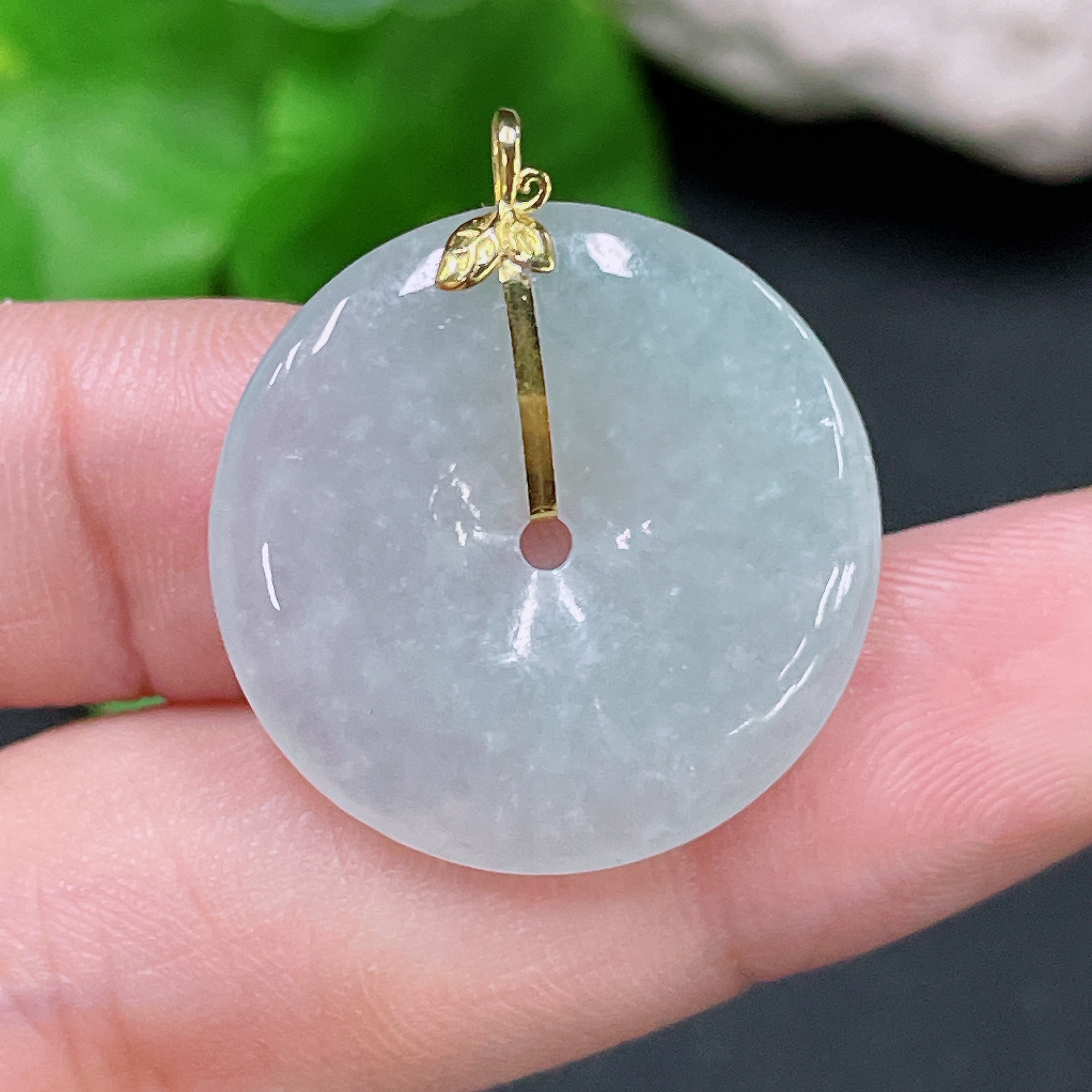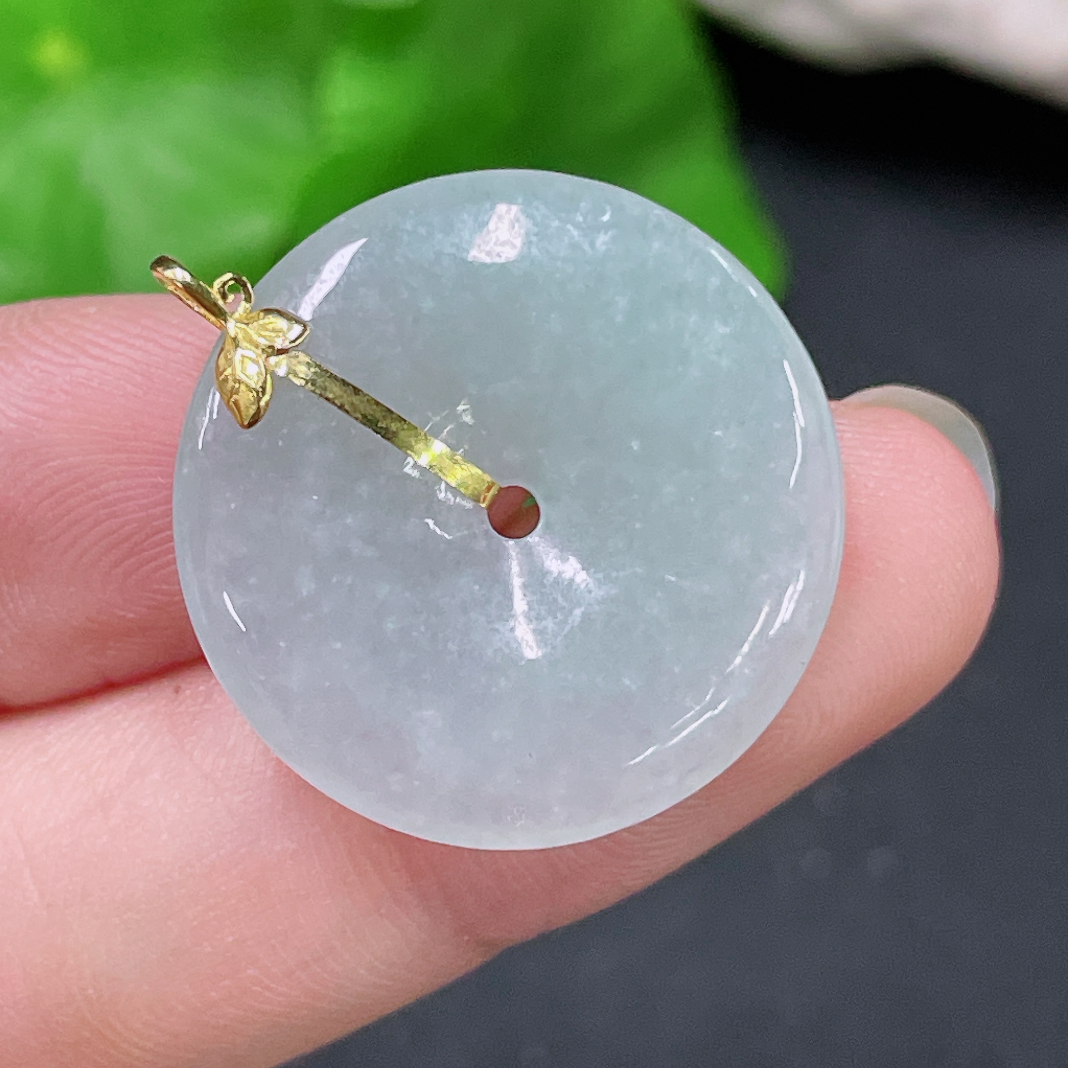 Jadeite Peace Knot Pendant with 18K Gold, Total Weight Approximately 4.2 Grams
