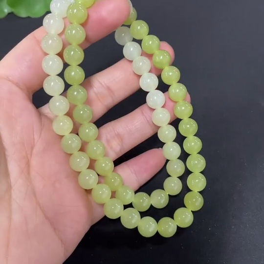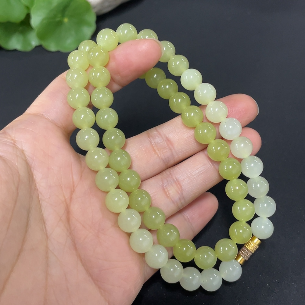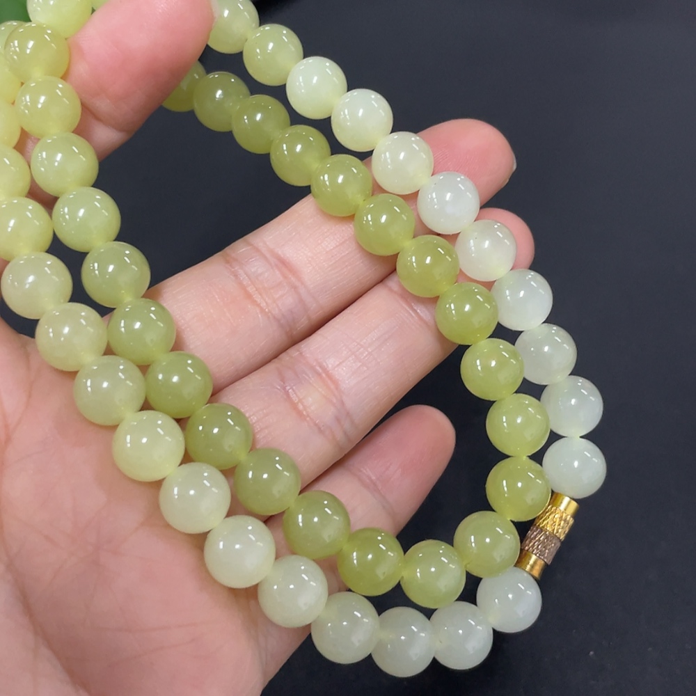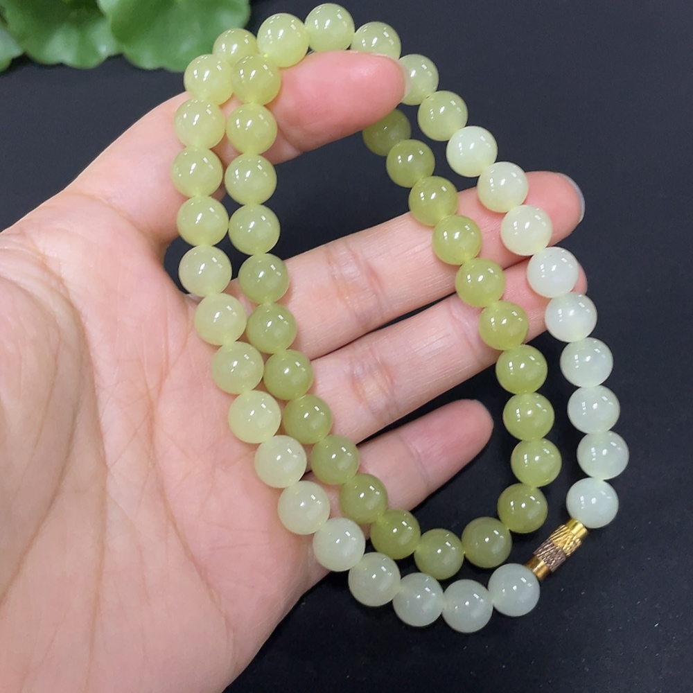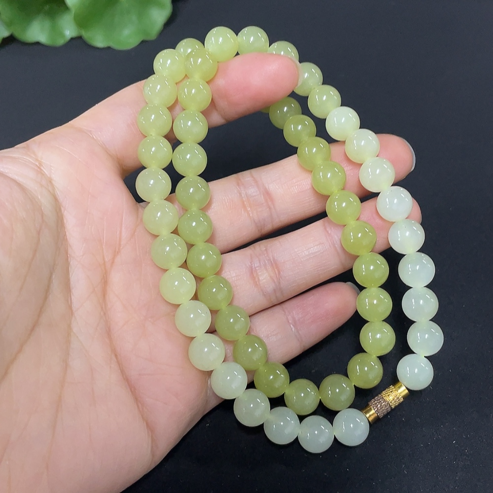 Hetian Jade Beaded Necklace Approx. 7.7mm Total Weight Approx. 43.7g