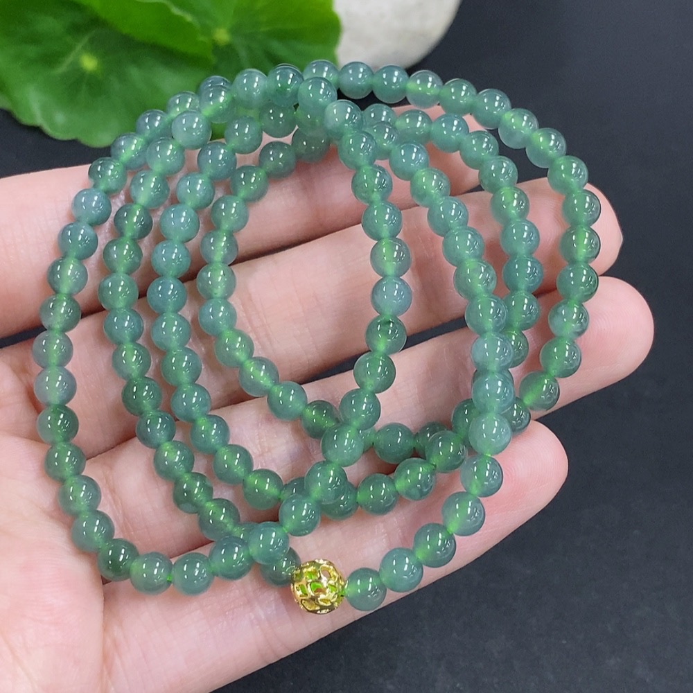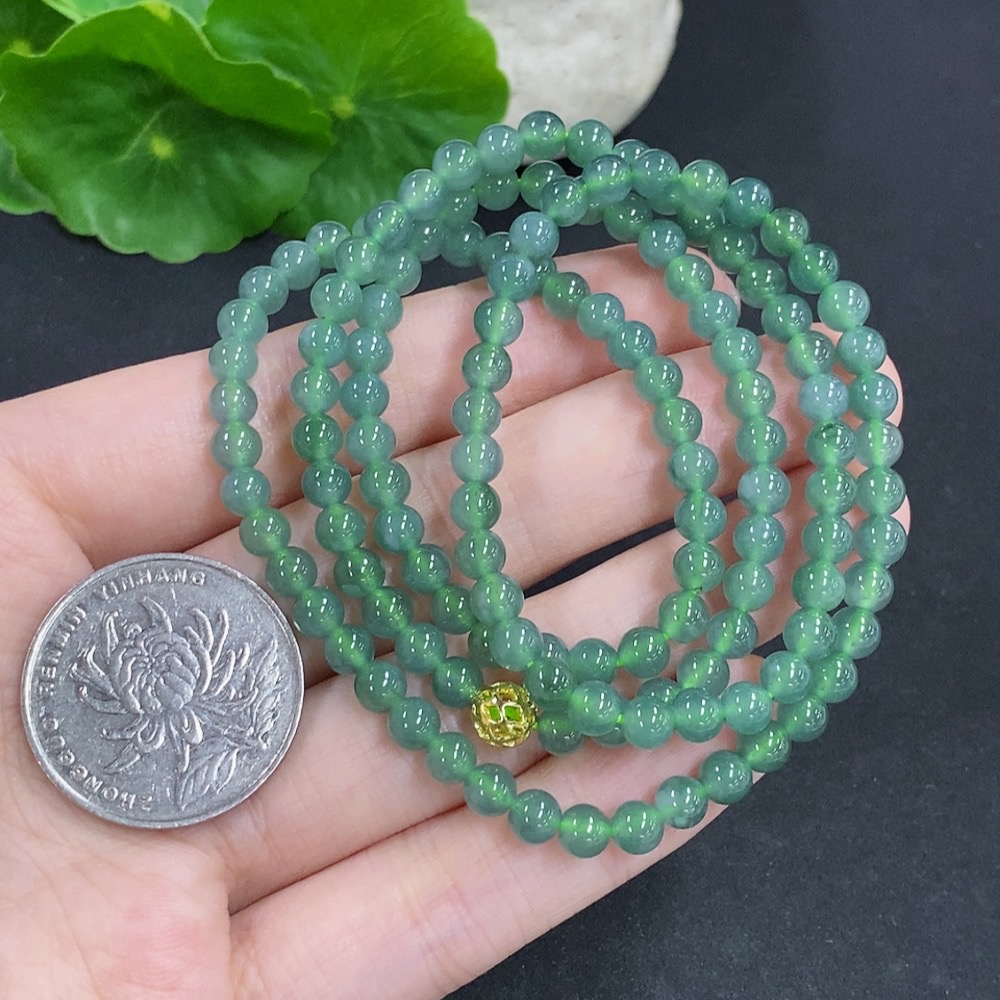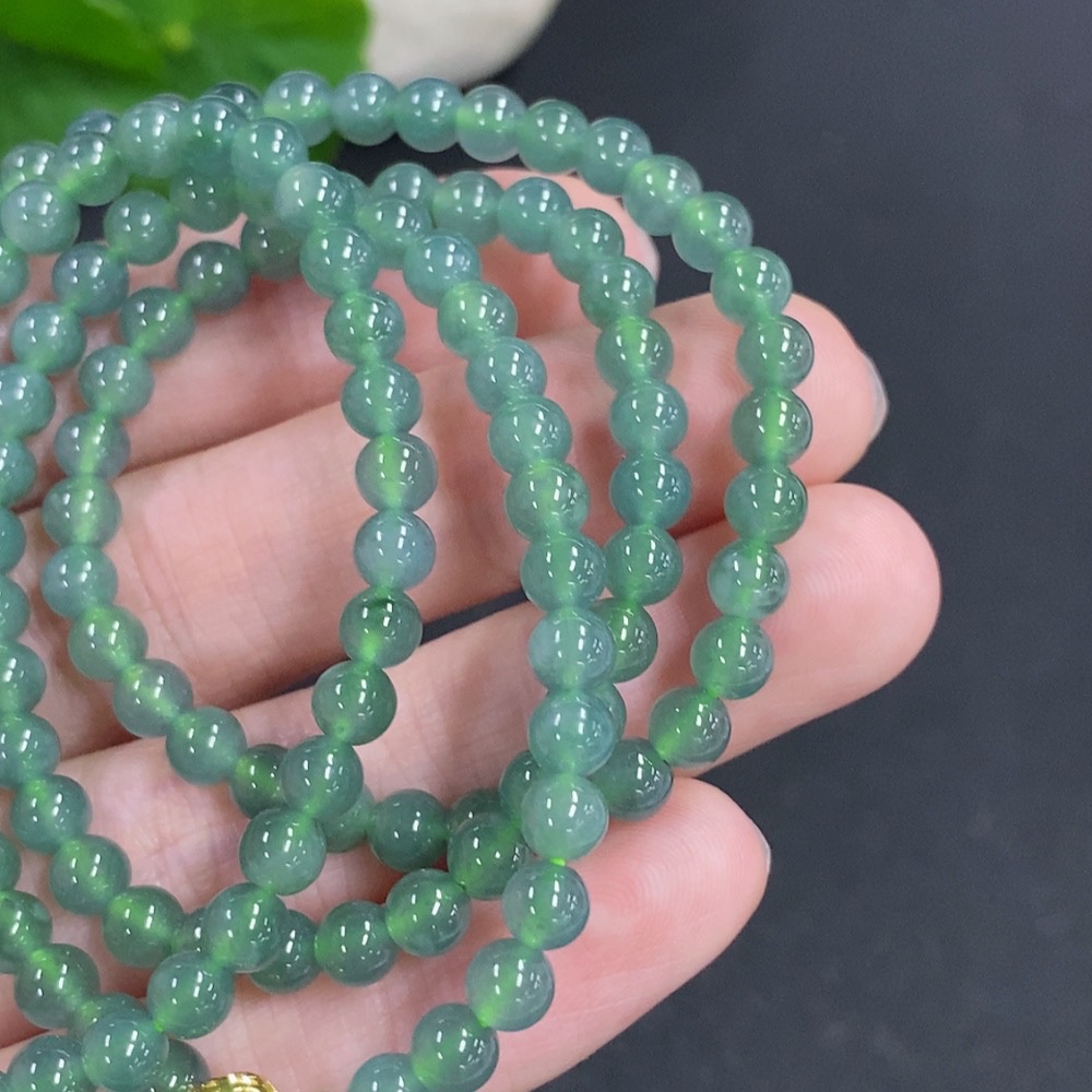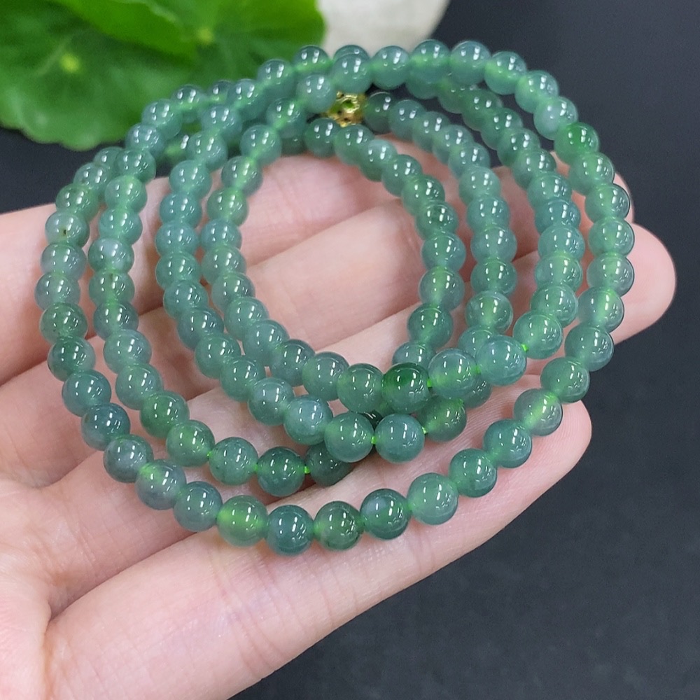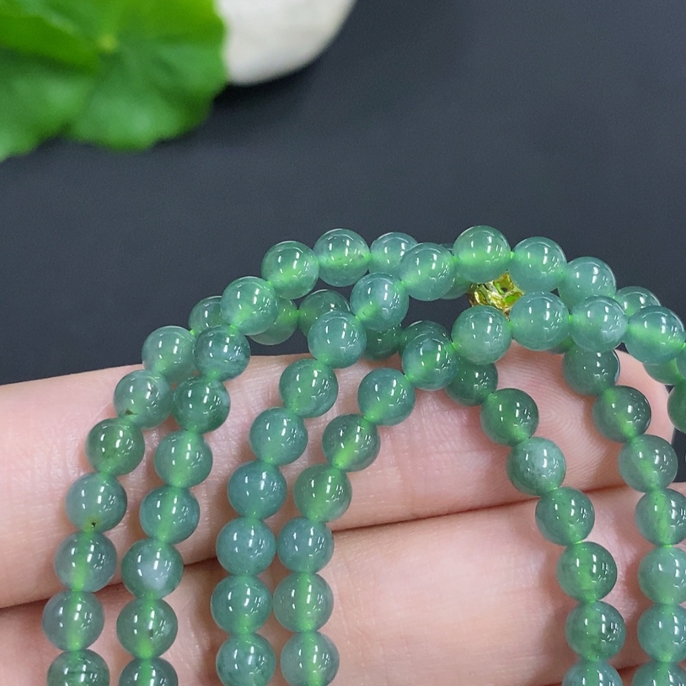 Jadeite Bead Necklace Non-Gold Total Weight Approx. 24.3g Size About 4.6mm