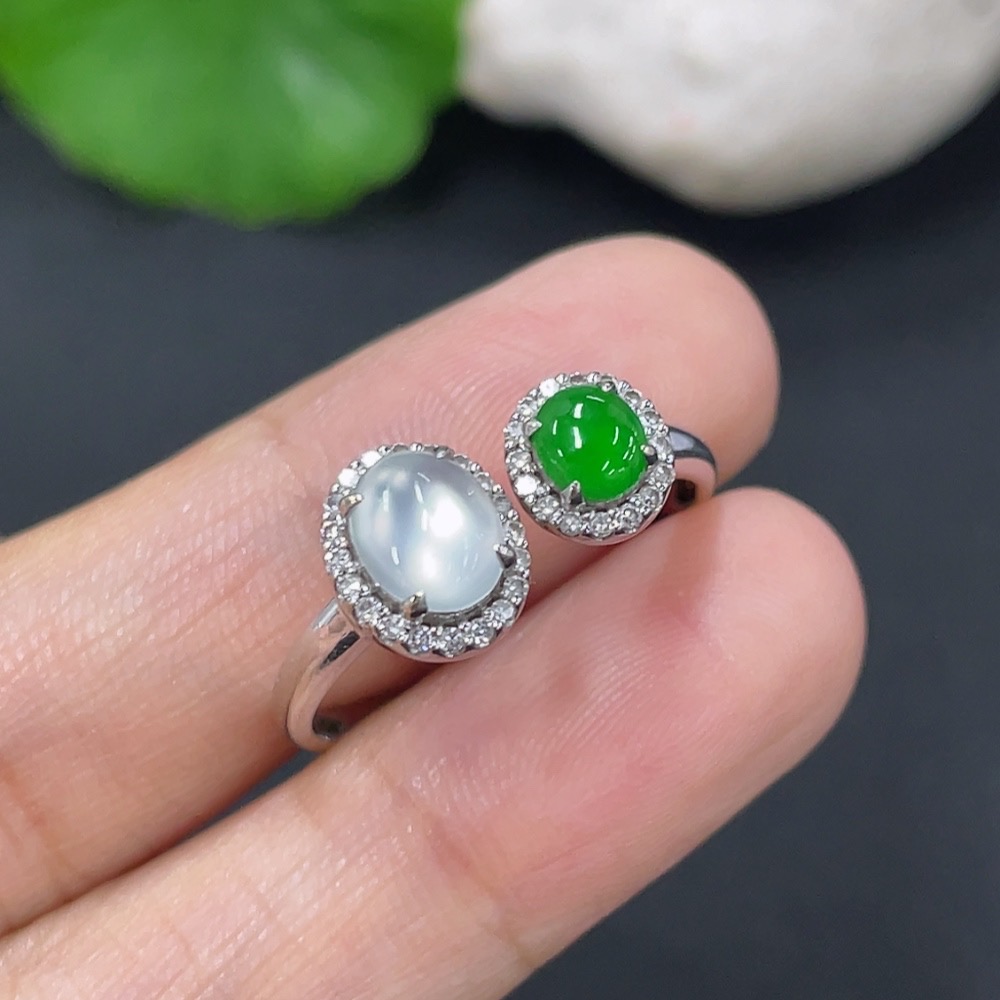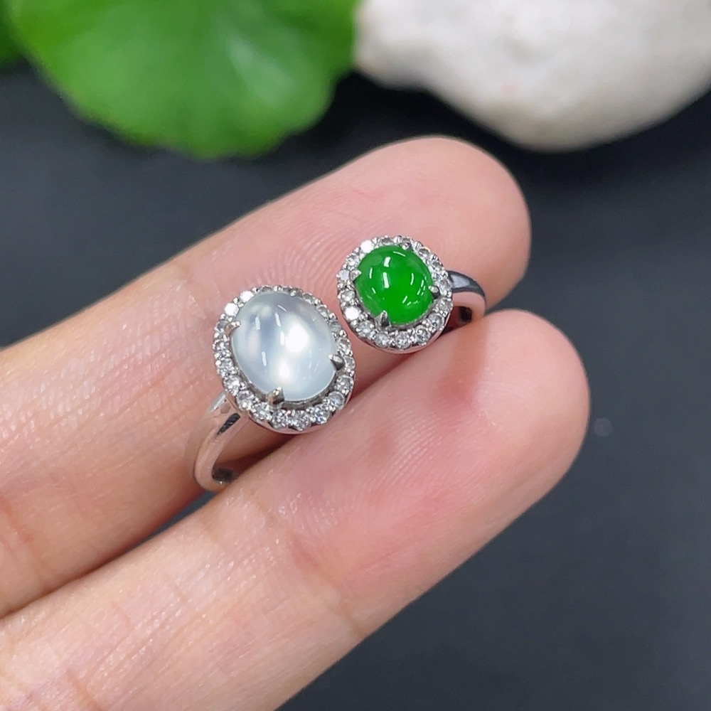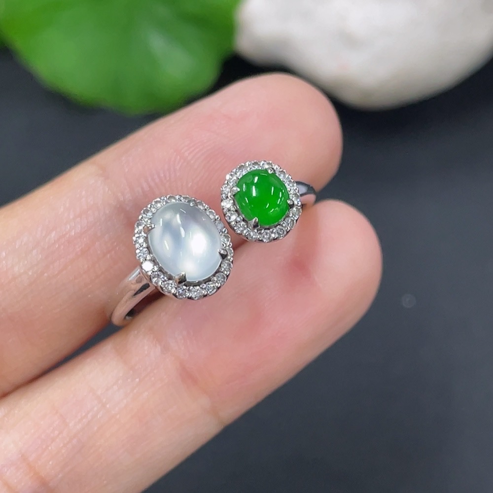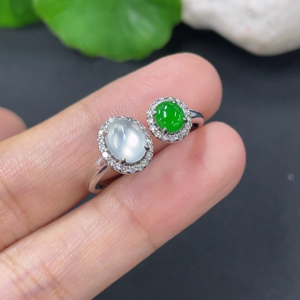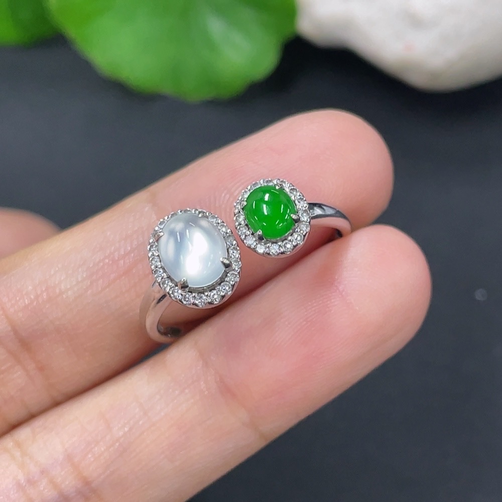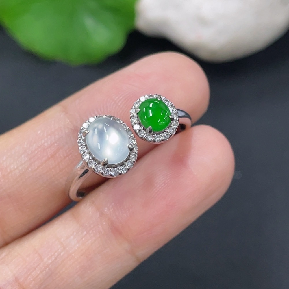 Jadeite Ring 18k with Diamond Size 18 Total Weight Approx. 2.55g