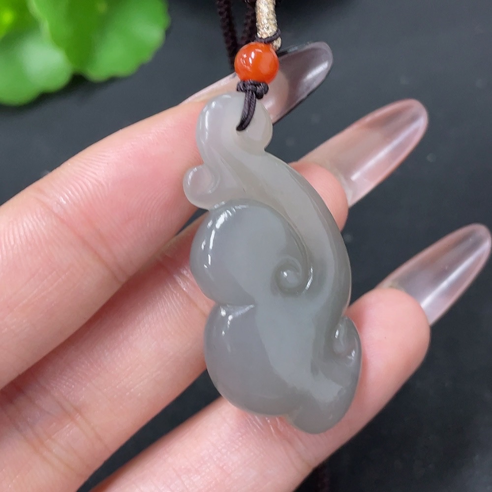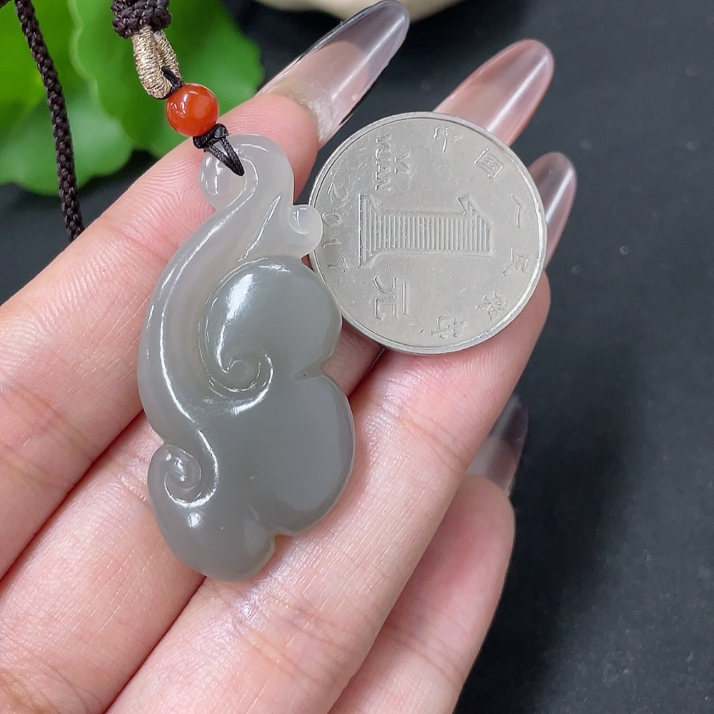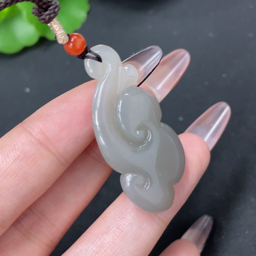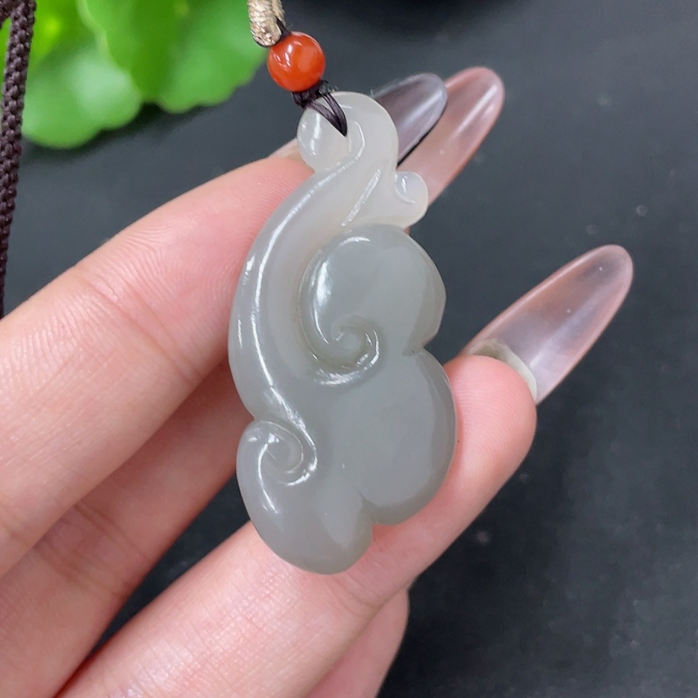 Hetian Jade Pendant Ruyi with Non-Hetian Jade Beads Total Weight Approx. 11g (including rope)