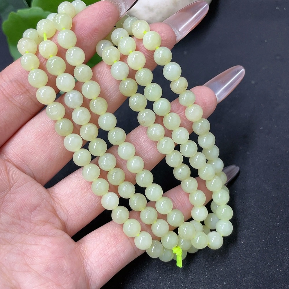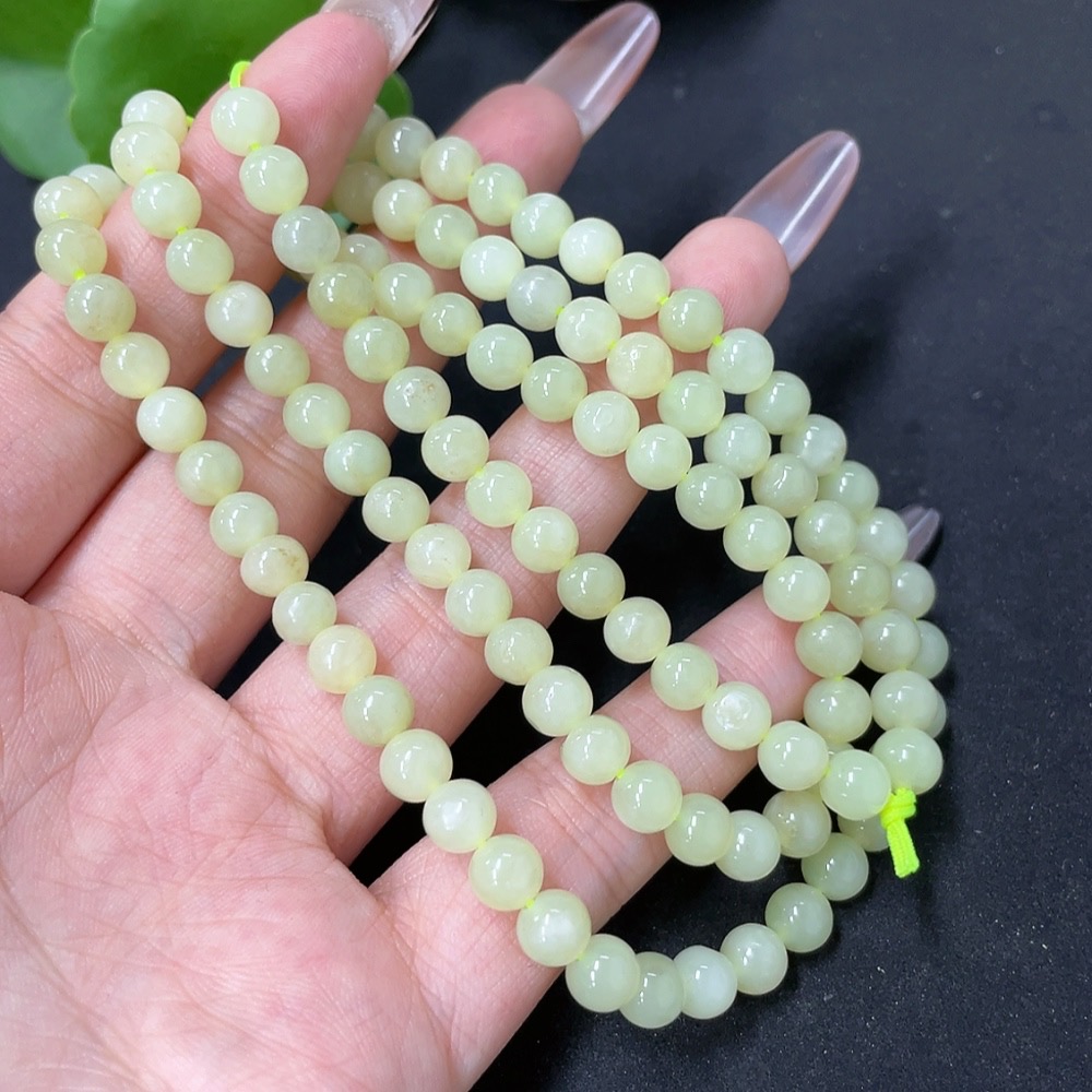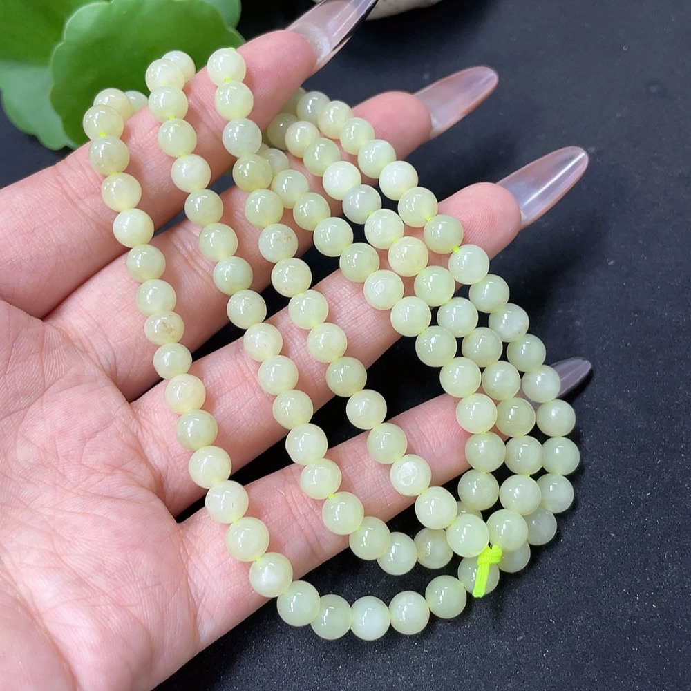 Hetian Jade Bead Necklace Approx. 5.8mm Total Weight Approx. 34.9g