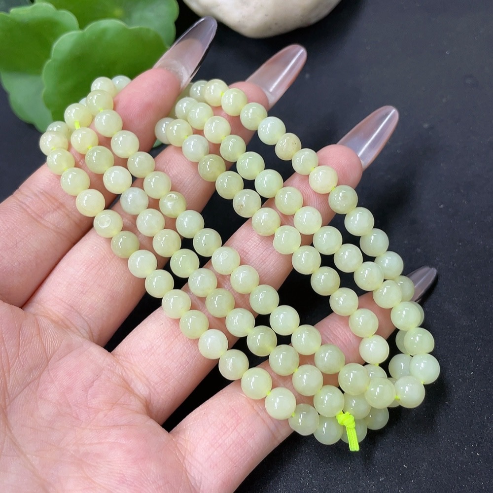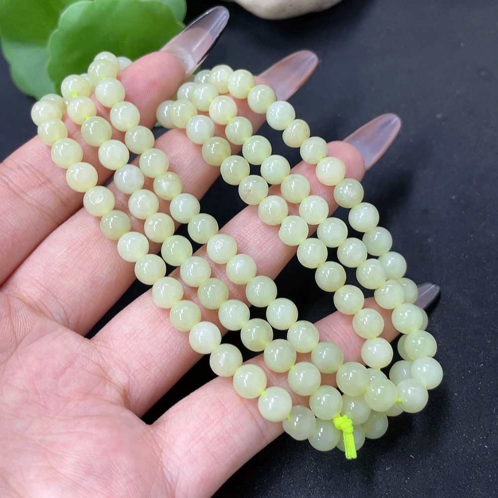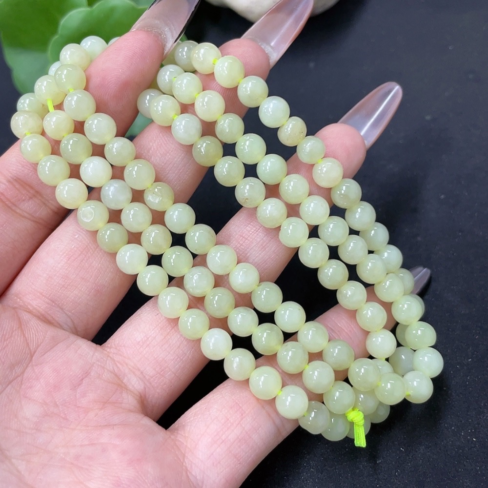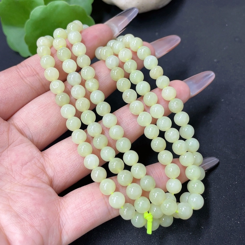 Hetian Jade Bead Necklace Approx. 5.8mm Total Weight Approx. 34.9g