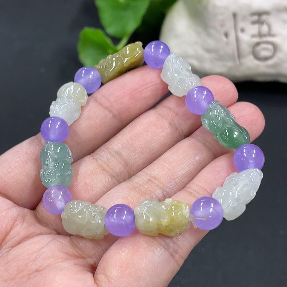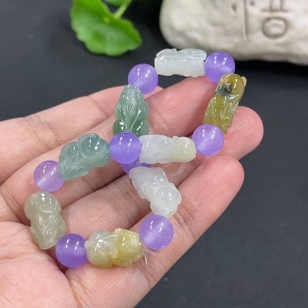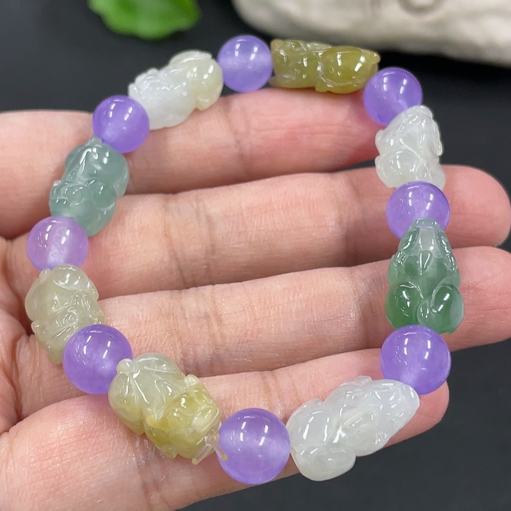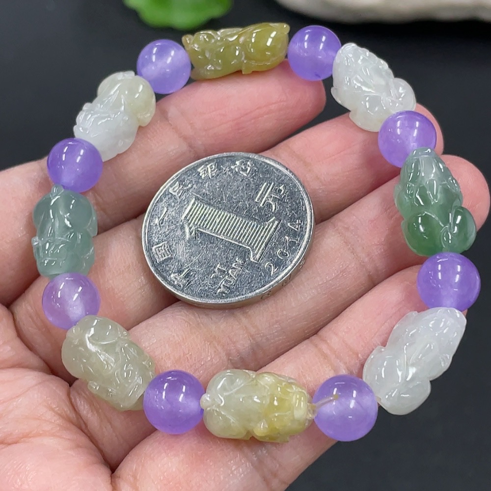 Jadeite Pi Xiu Bracelet, Total Weight Approx. 19.07g, Beads Not Grade A