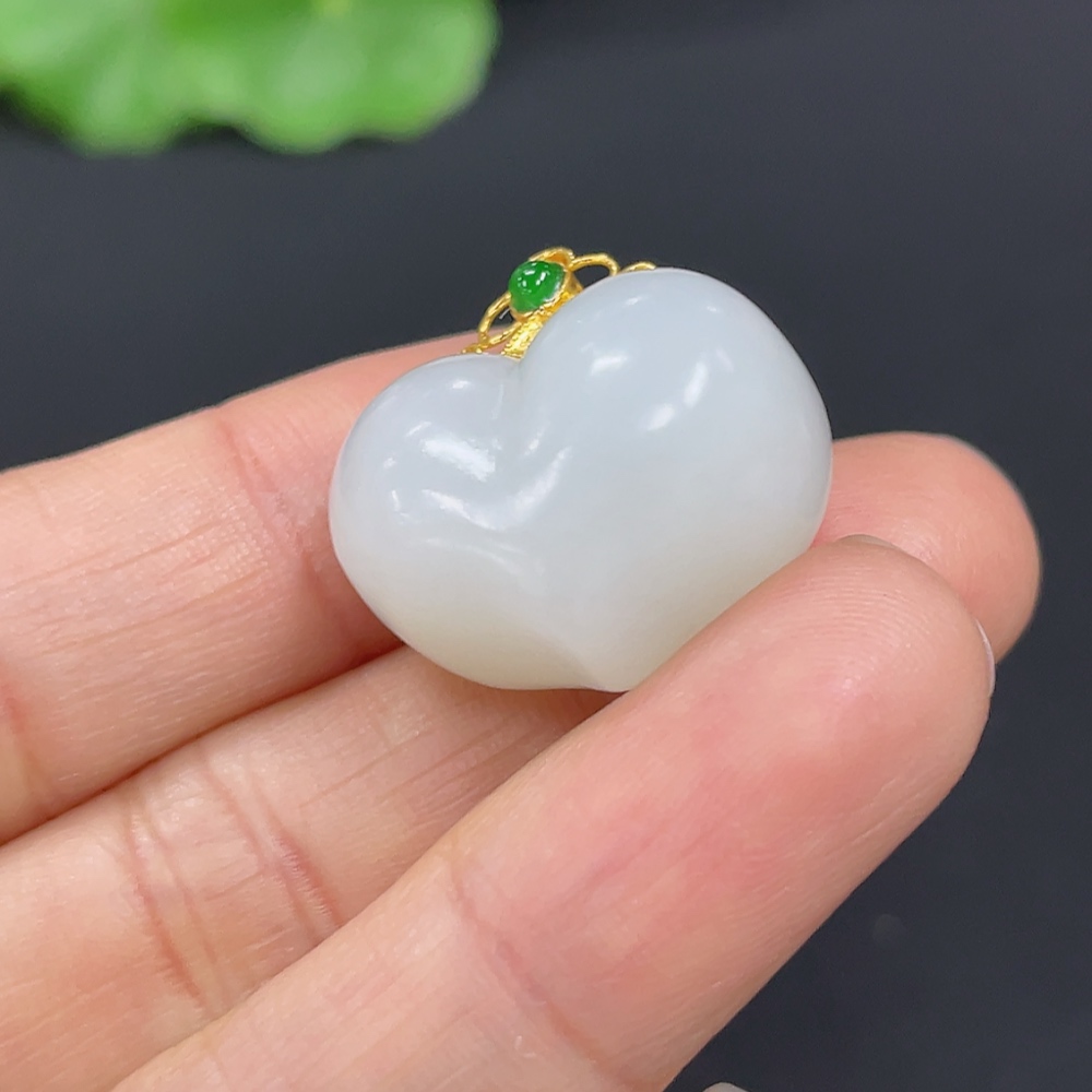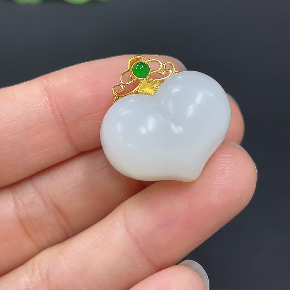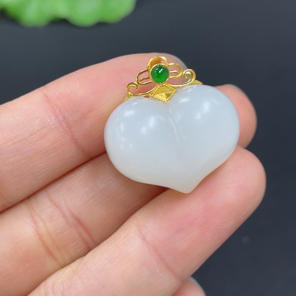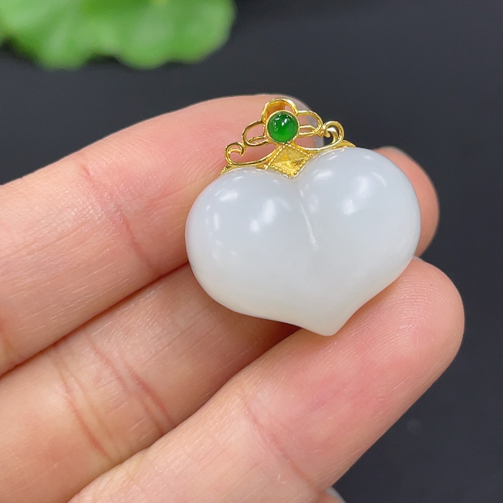 Hetian Jade Pendant Heart 18k Gold Clasp Total Weight Approx. 8.2g Beads Not Hetian Jade