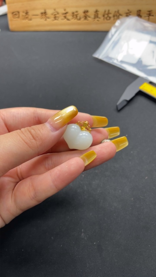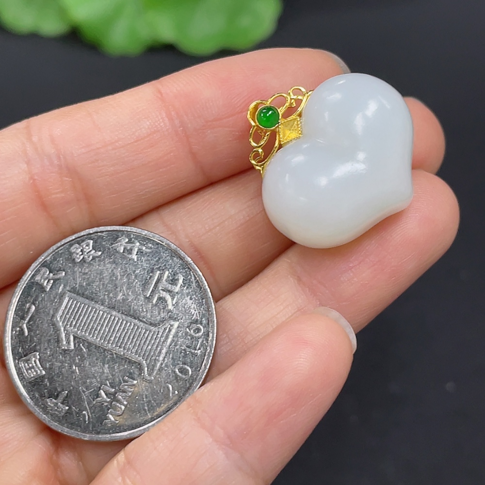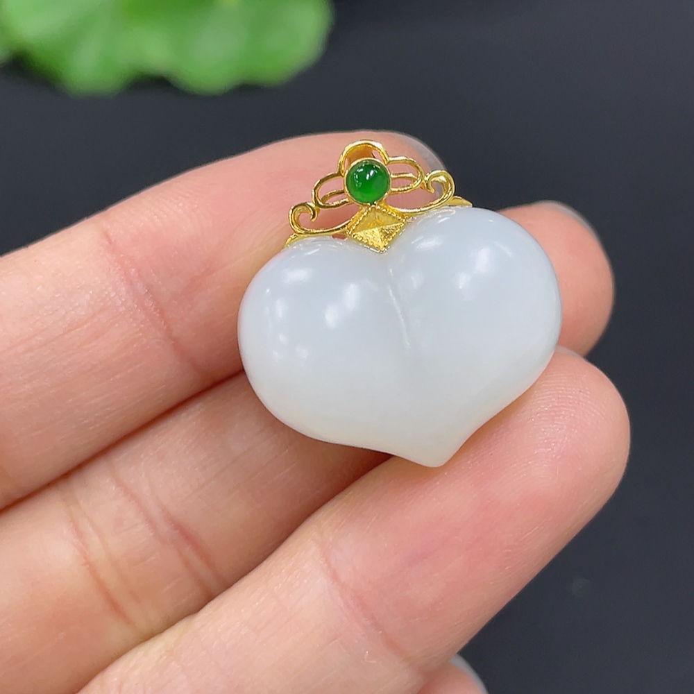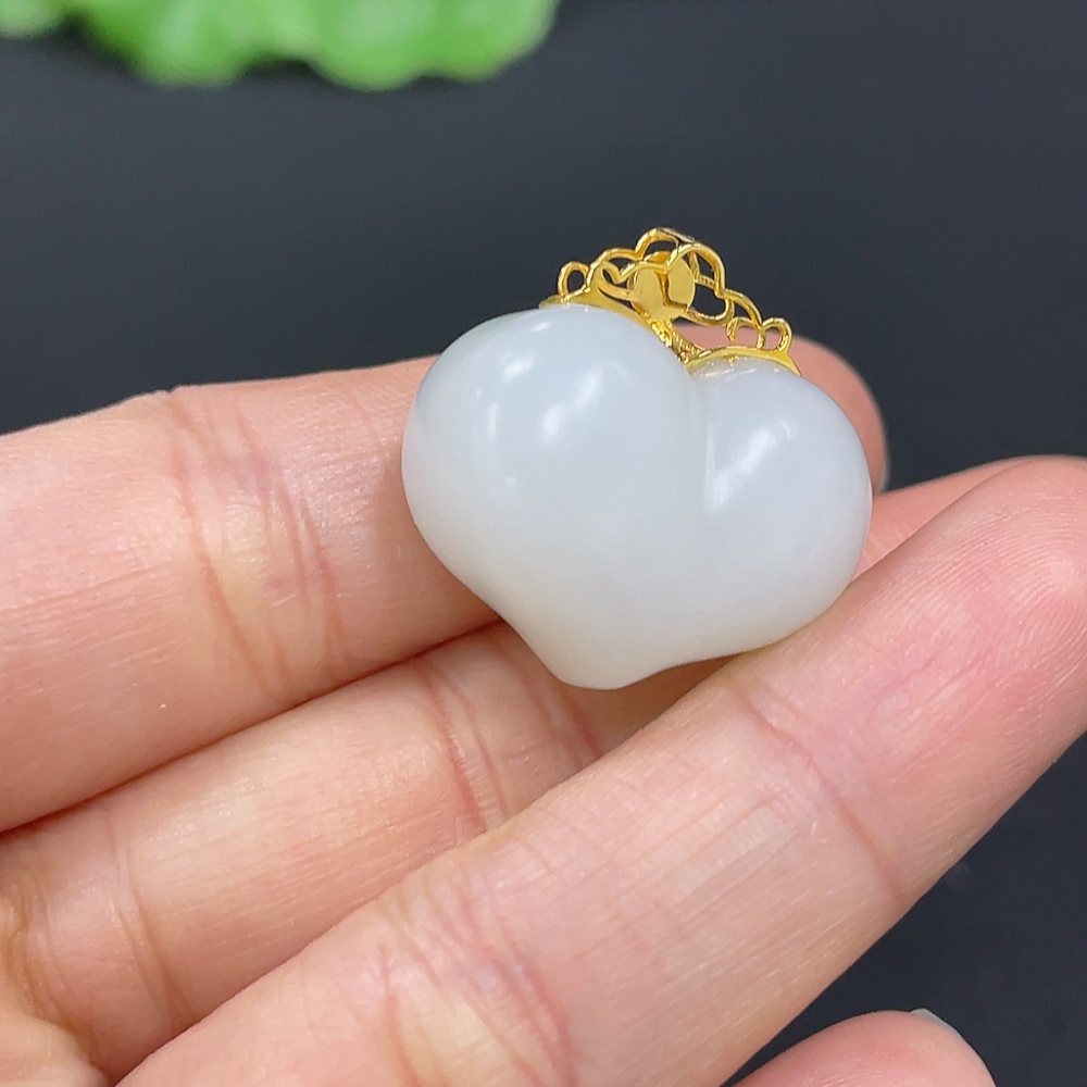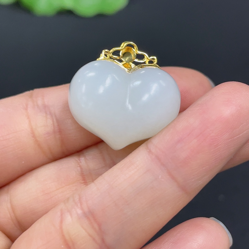 Hetian Jade Pendant Heart 18k Gold Clasp Total Weight Approx. 8.2g Beads Not Hetian Jade
