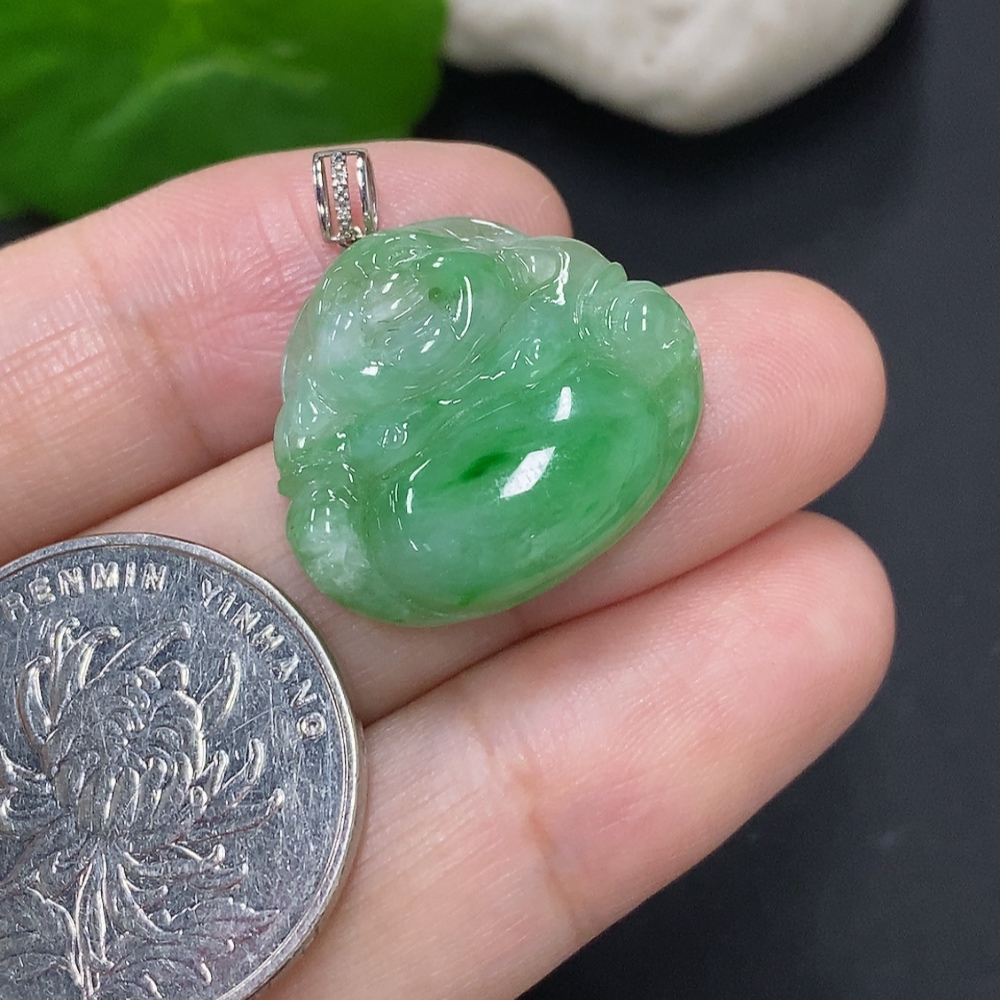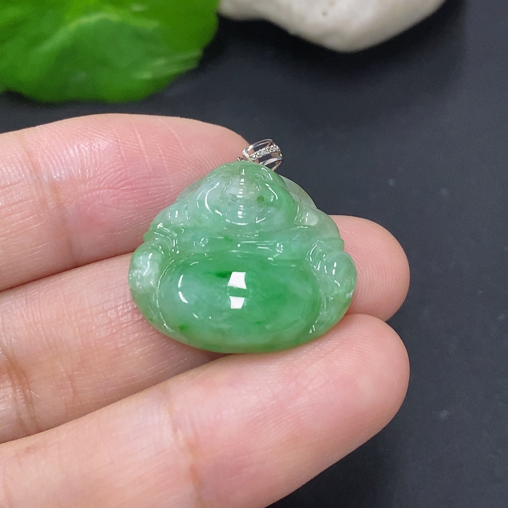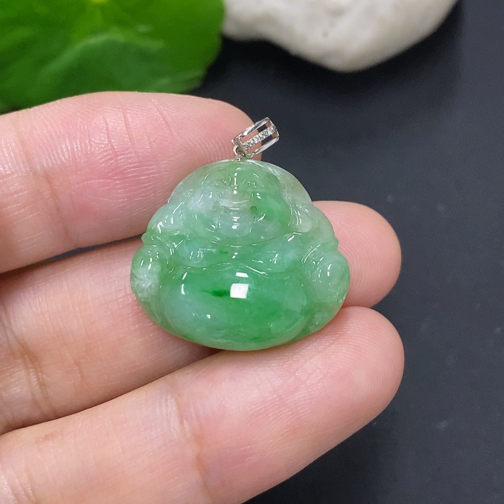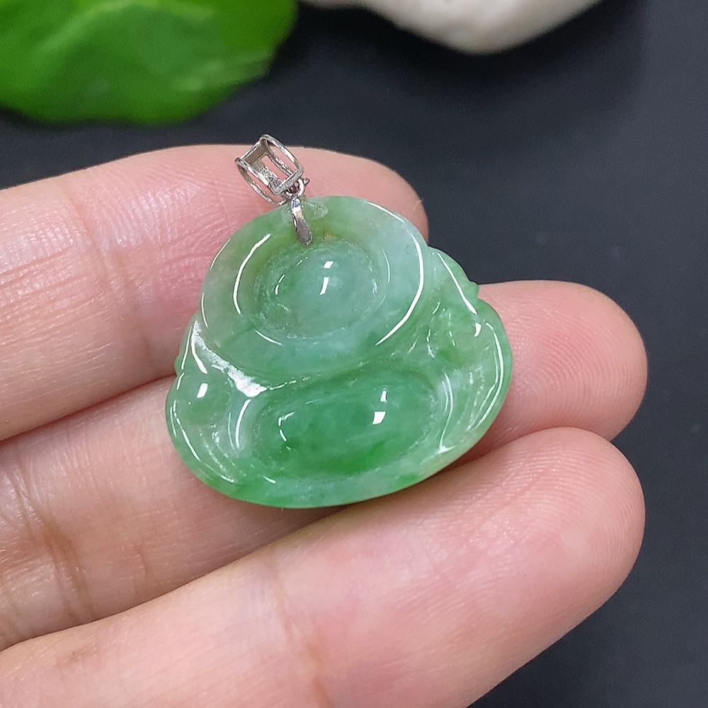 Jadeite Buddha Pendant with 18K Gold Clasp, Total Weight Approx. 4.6g