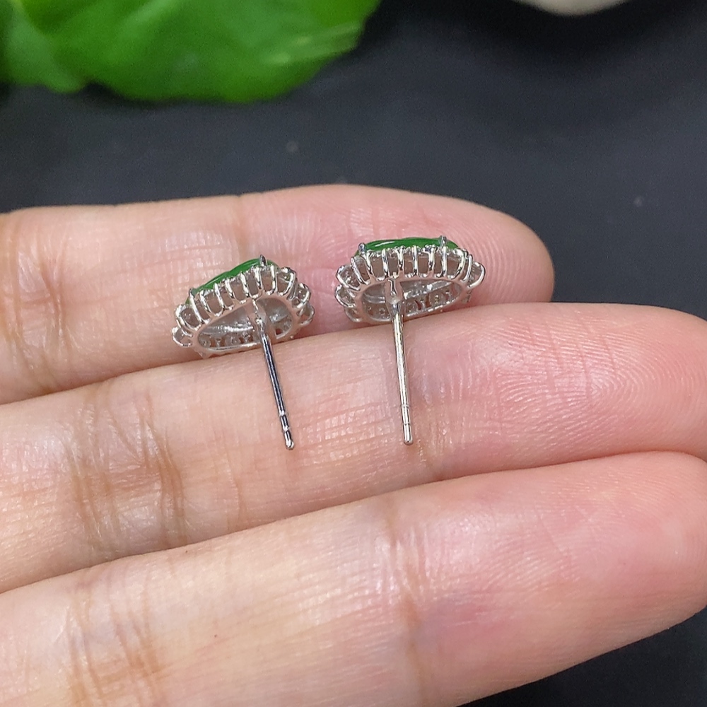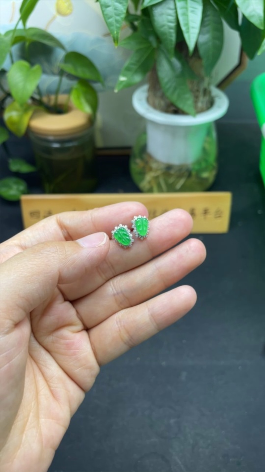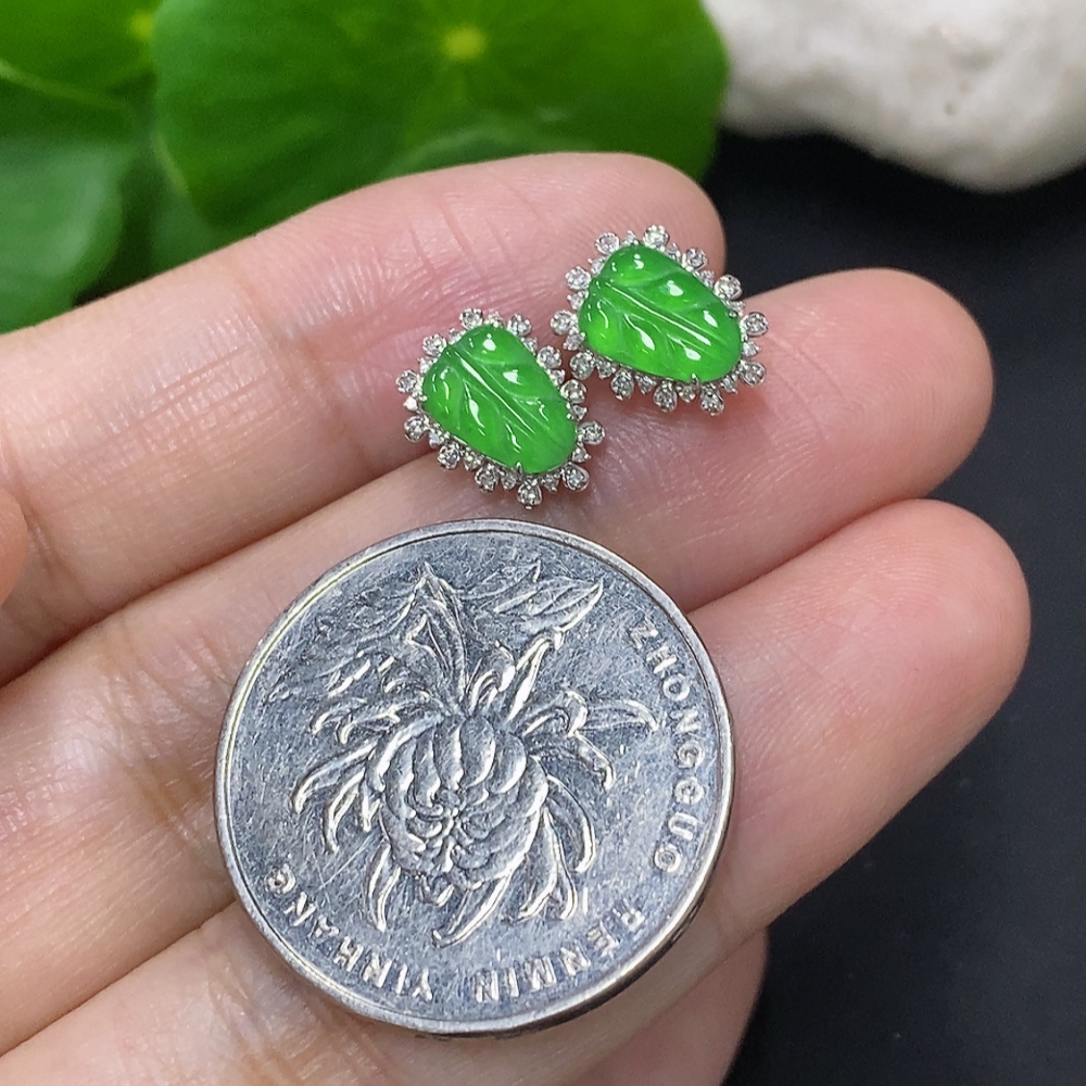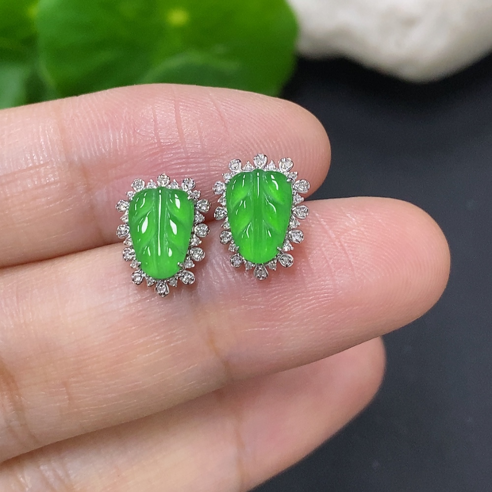 Jadeite Leaf Earrings 18K Gold Total Weight Approx.1.4g (With Diamond Accents)