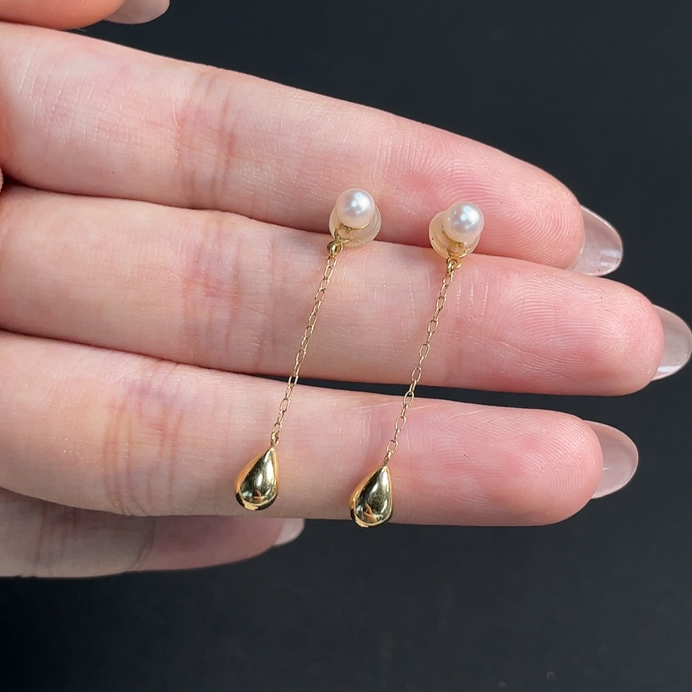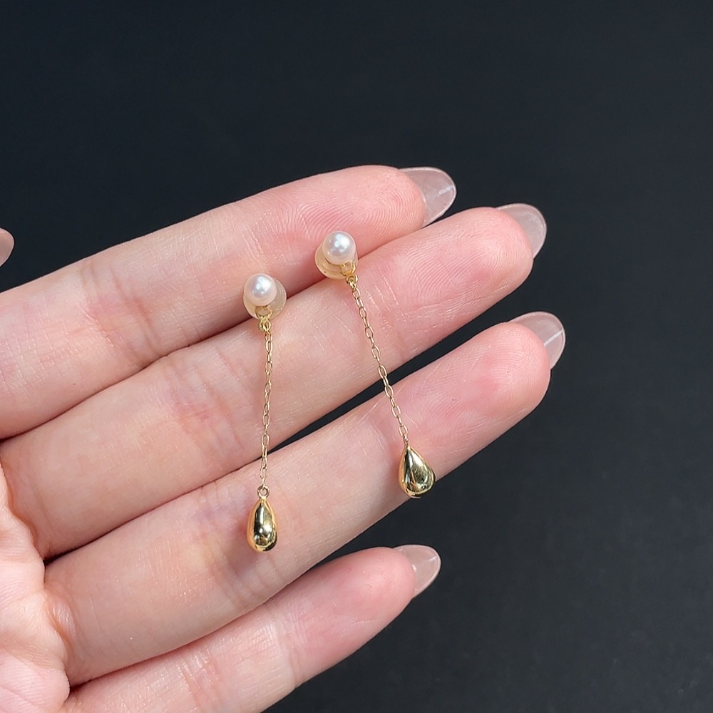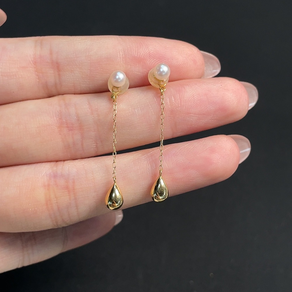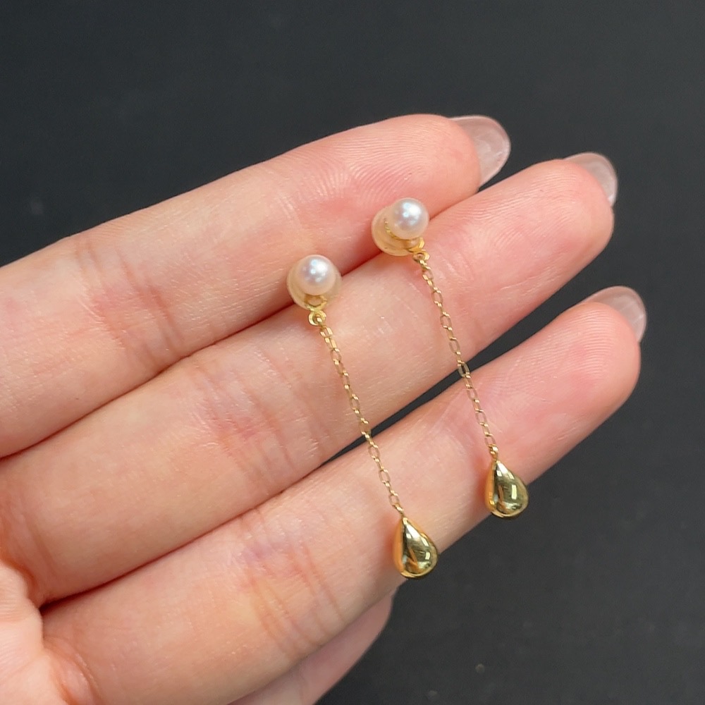 Pearl inlaid earrings, 18k gold, approx. 4.1mm, total weight approx. 0.83g
