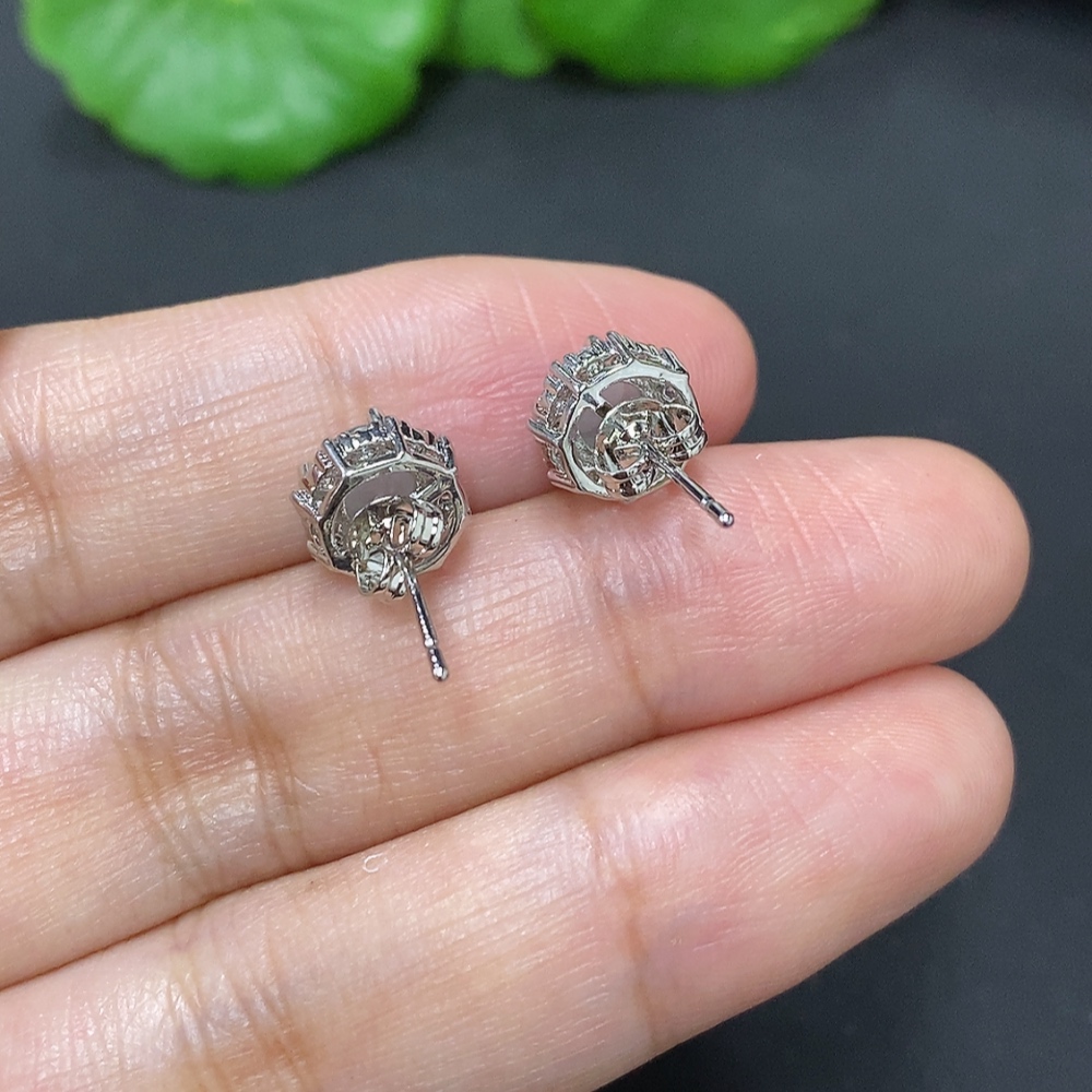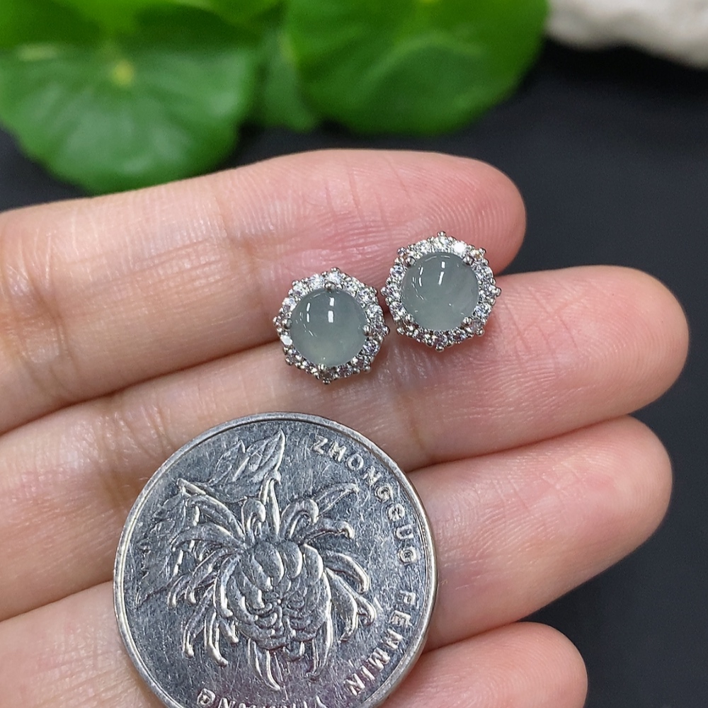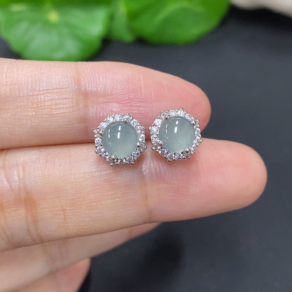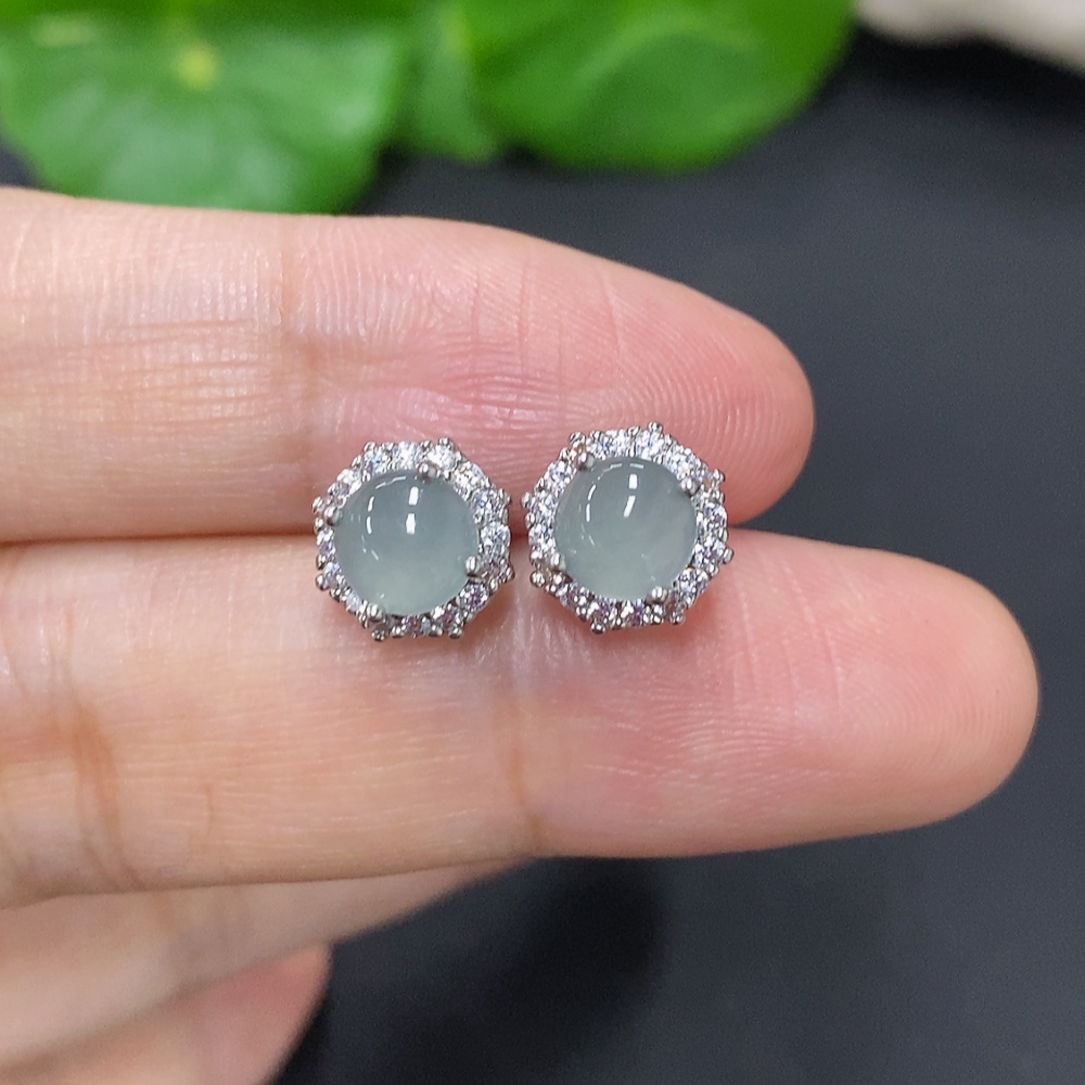 Jadeite cabochon stud earrings pair, non-gold setting, total weight approx. 1.92g