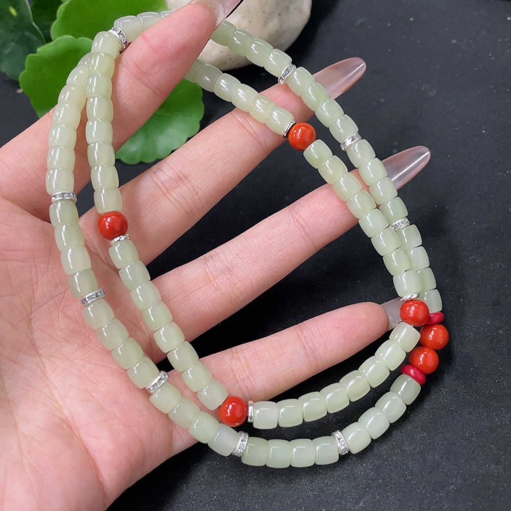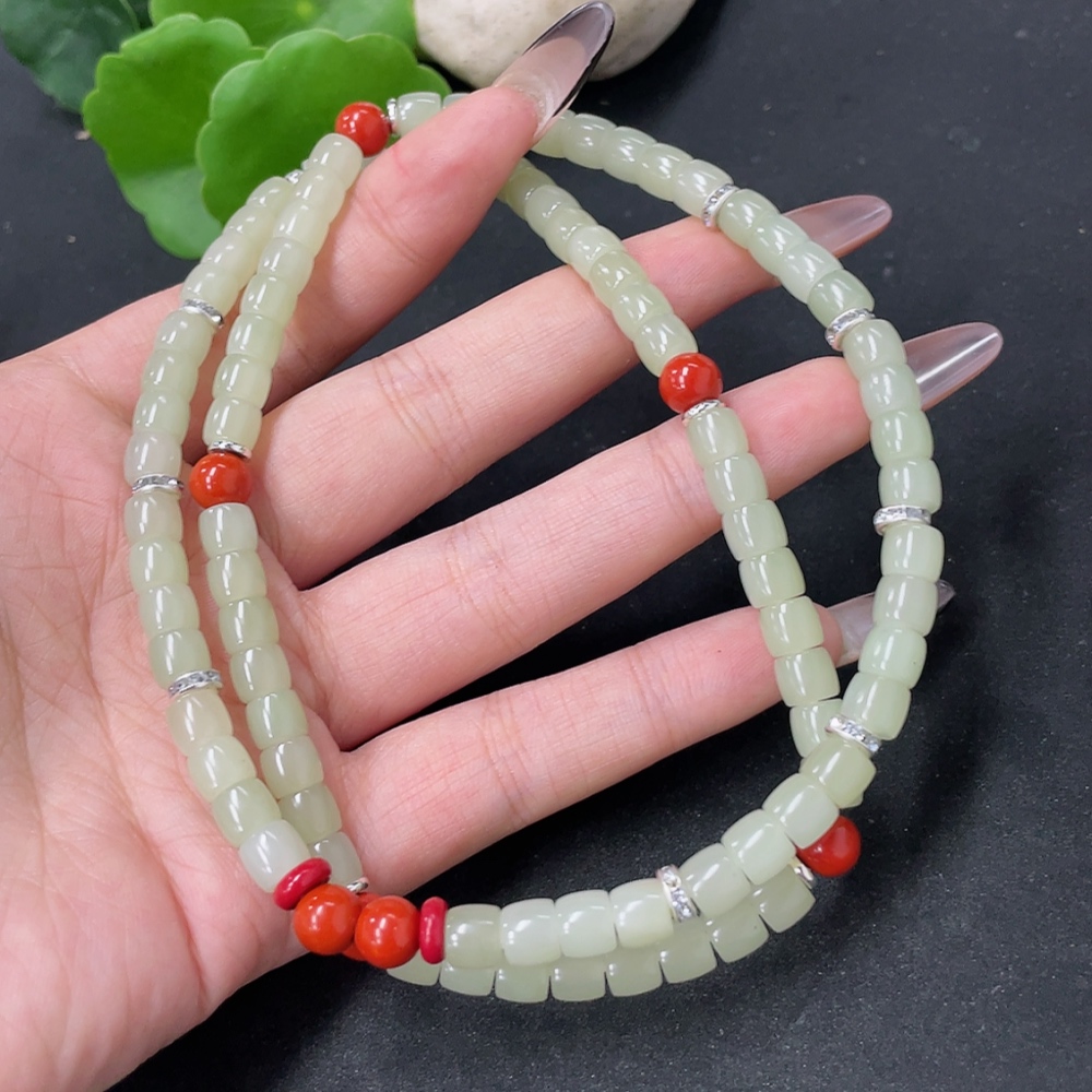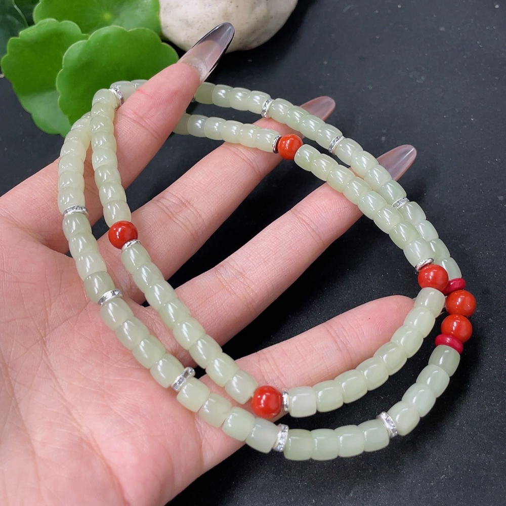Hetian Jade Bead Necklace, Approx. 5.9mm, Non-Gold, Total Weight Approx. 39.7g, Non-Hetian Jade Beads Included