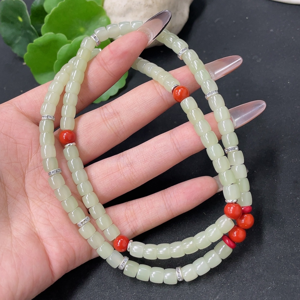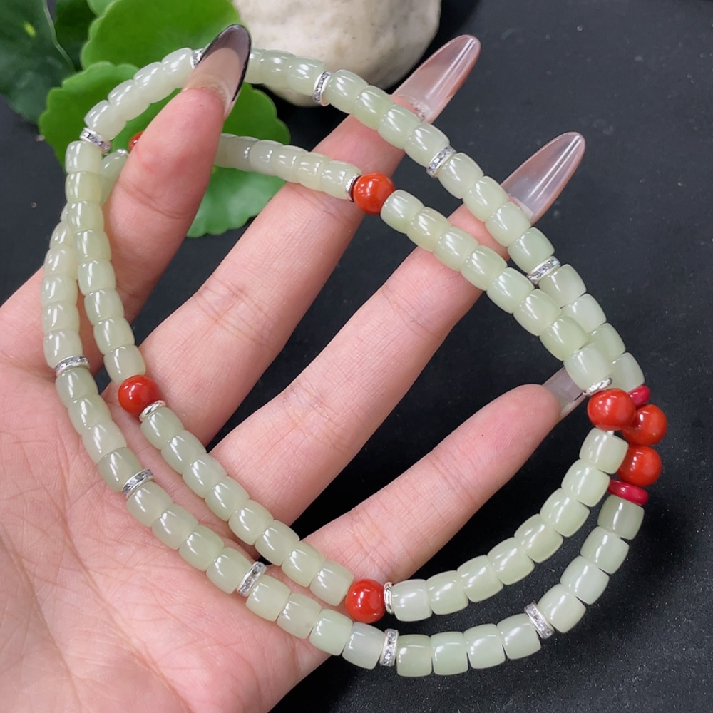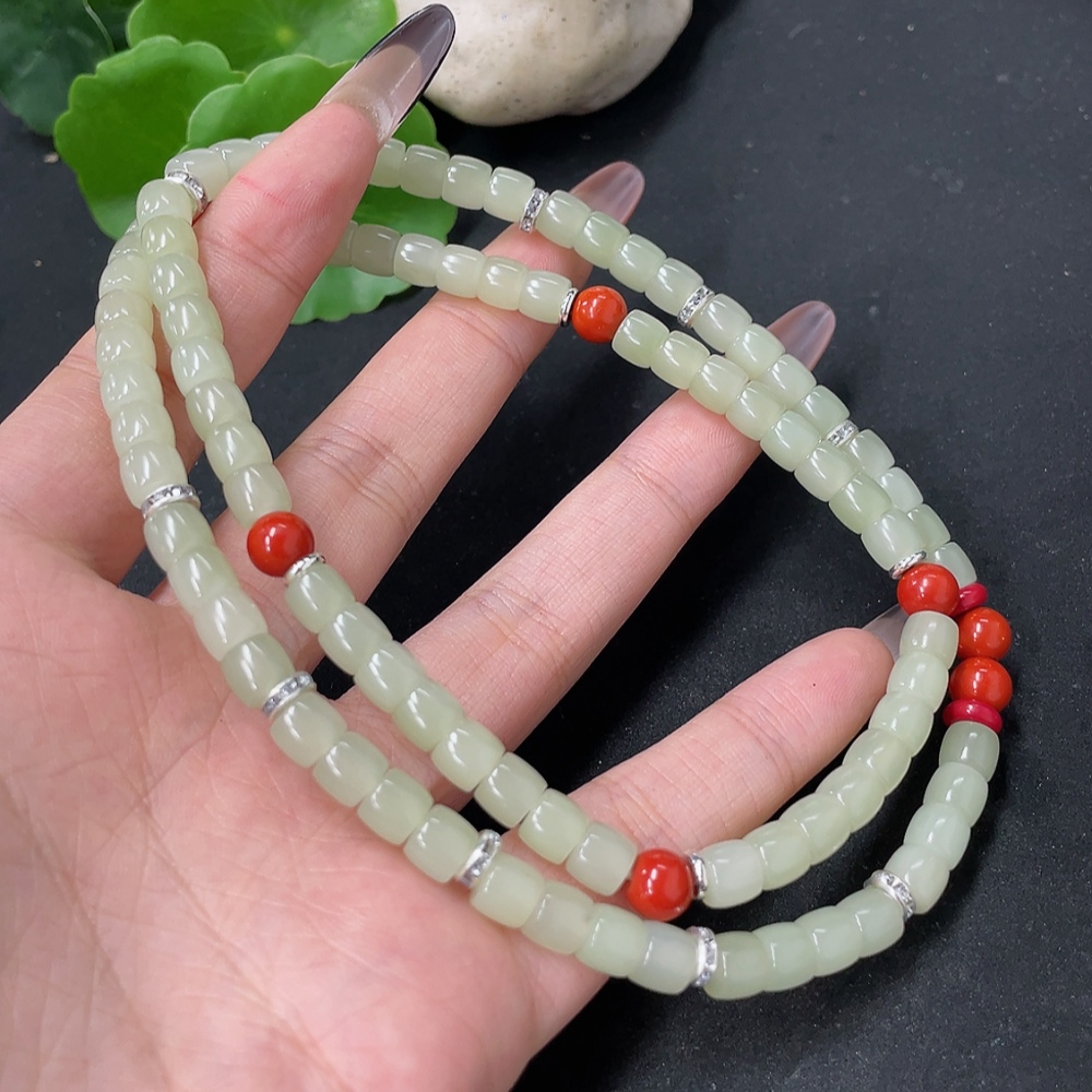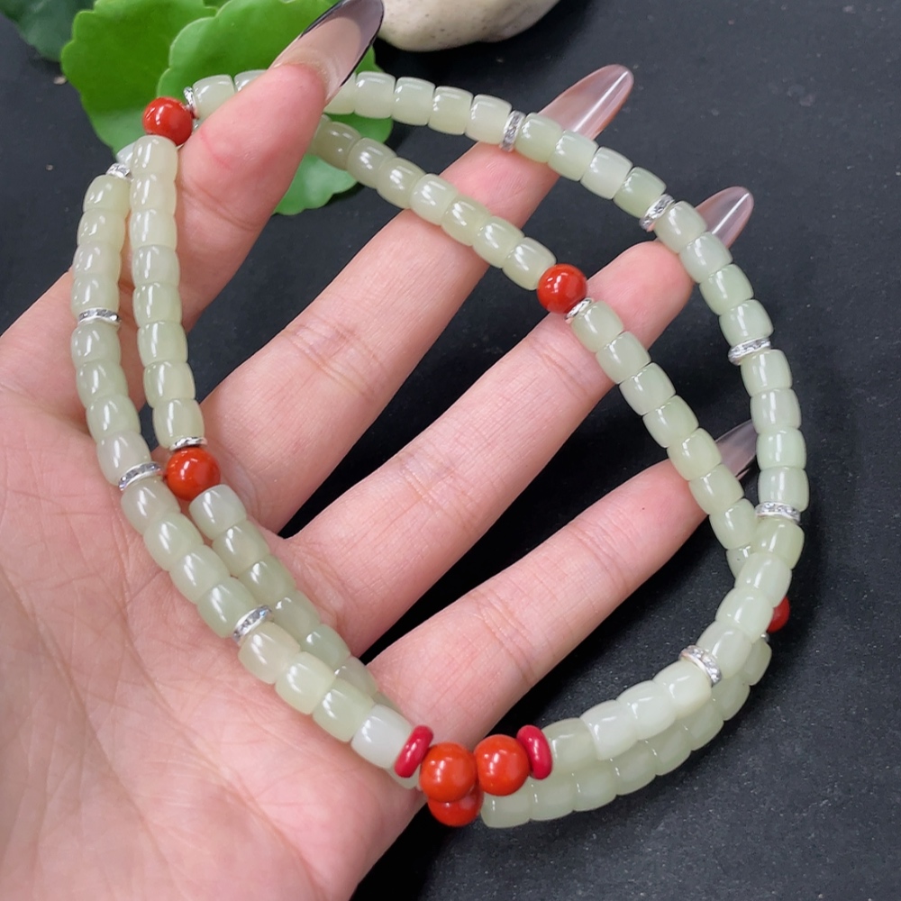 Hetian Jade Bead Necklace, Approx. 5.9mm, Non-Gold, Total Weight Approx. 39.7g, Non-Hetian Jade Beads Included