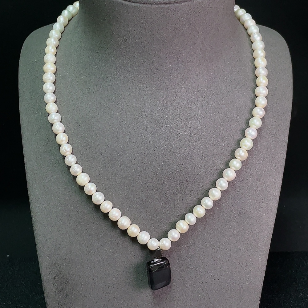 Pearl bead necklace, non-gold, total weight approximately 43.97g, bead size about 7.3mm