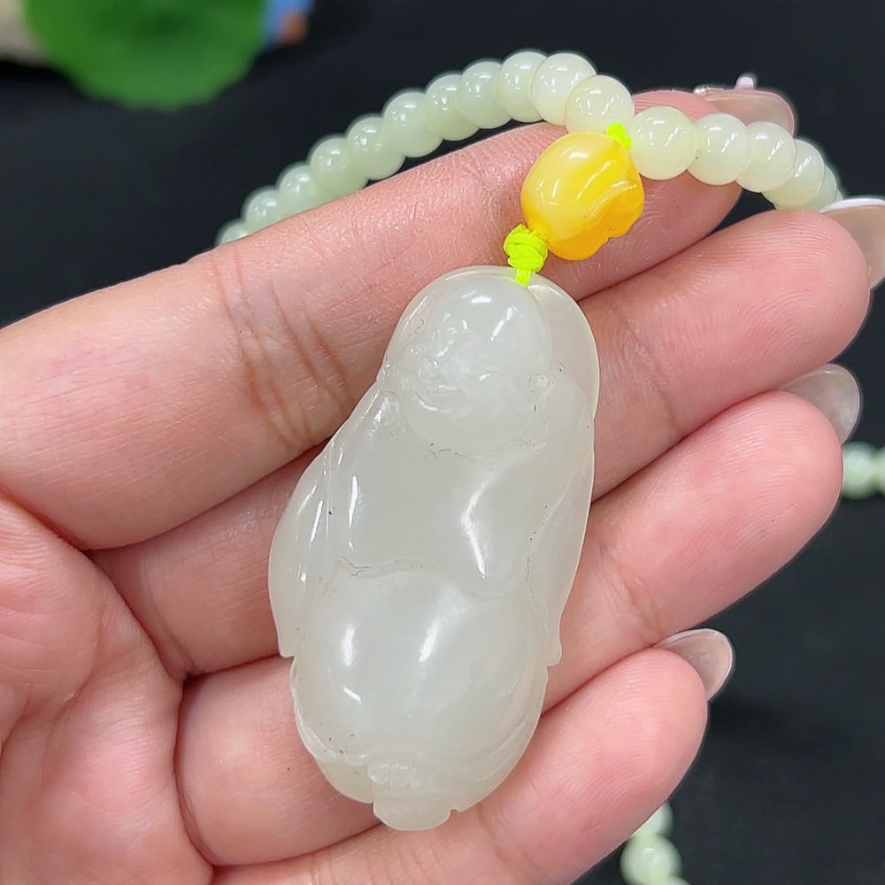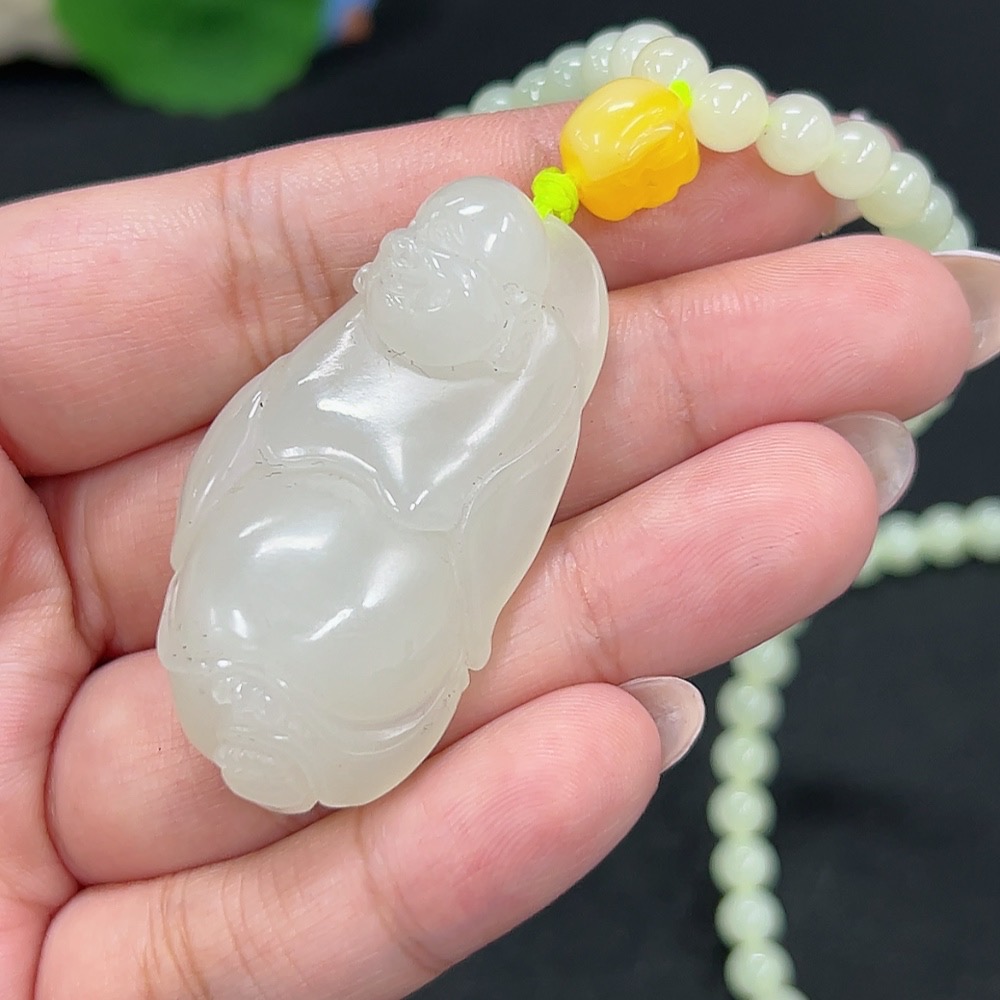 Hetian Jade Pendant Buddha Total Weight Approx. [Including Chain] 54g Beads Not Hetian Jade