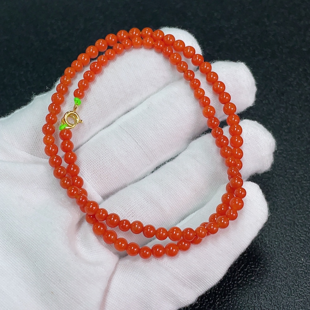 Red Agate Bead Necklace Non-Gold Visible Organic Matter Total Weight Approx. 7.93g Size About 3.9mm