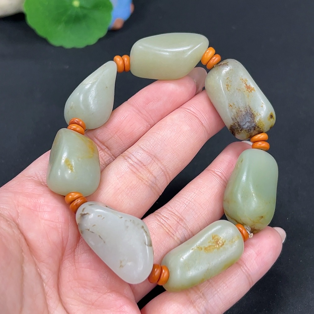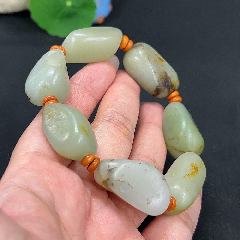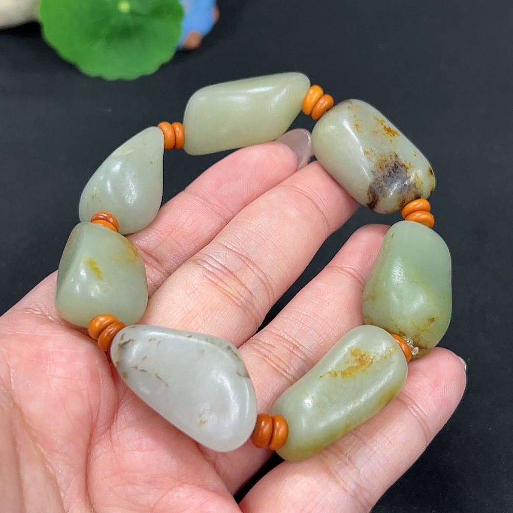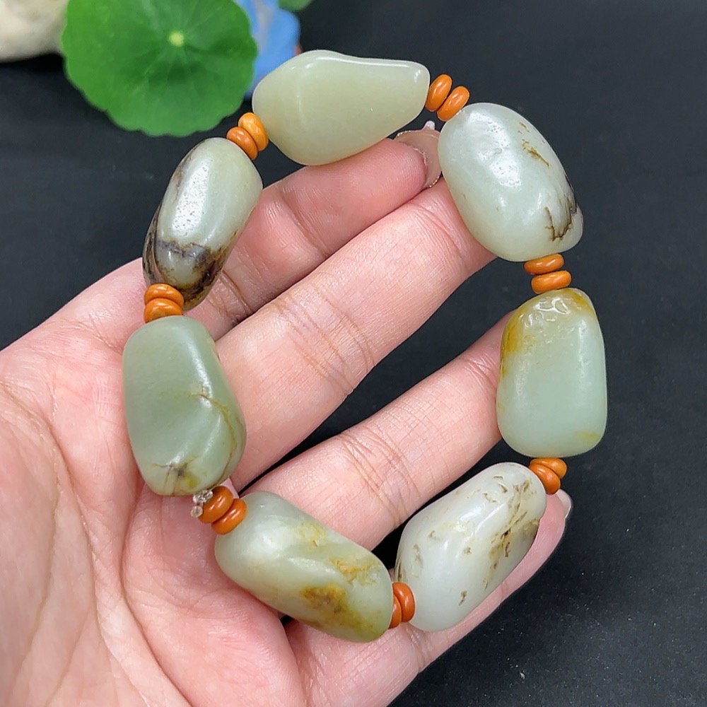 Hetian Jade Bracelet, Undetermined Skin Color Origin, Contains Other Mineral Components, Total Weight Approximately 82.3g