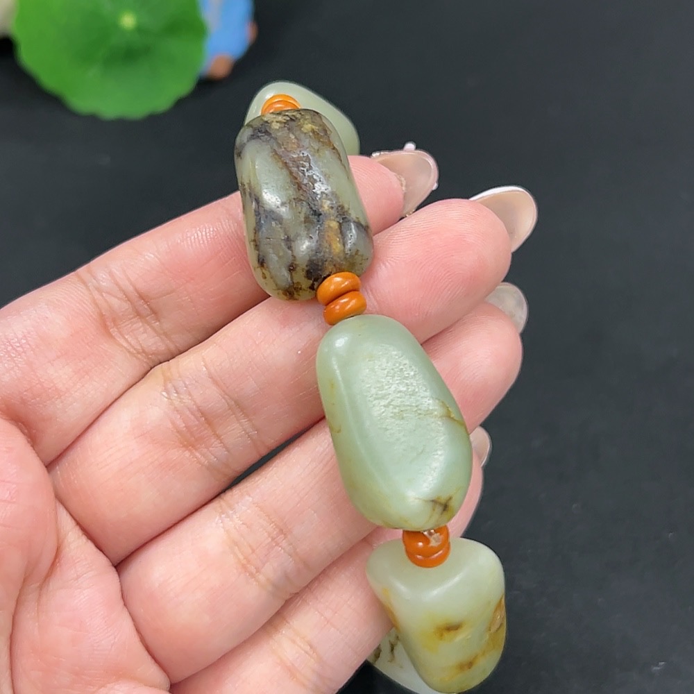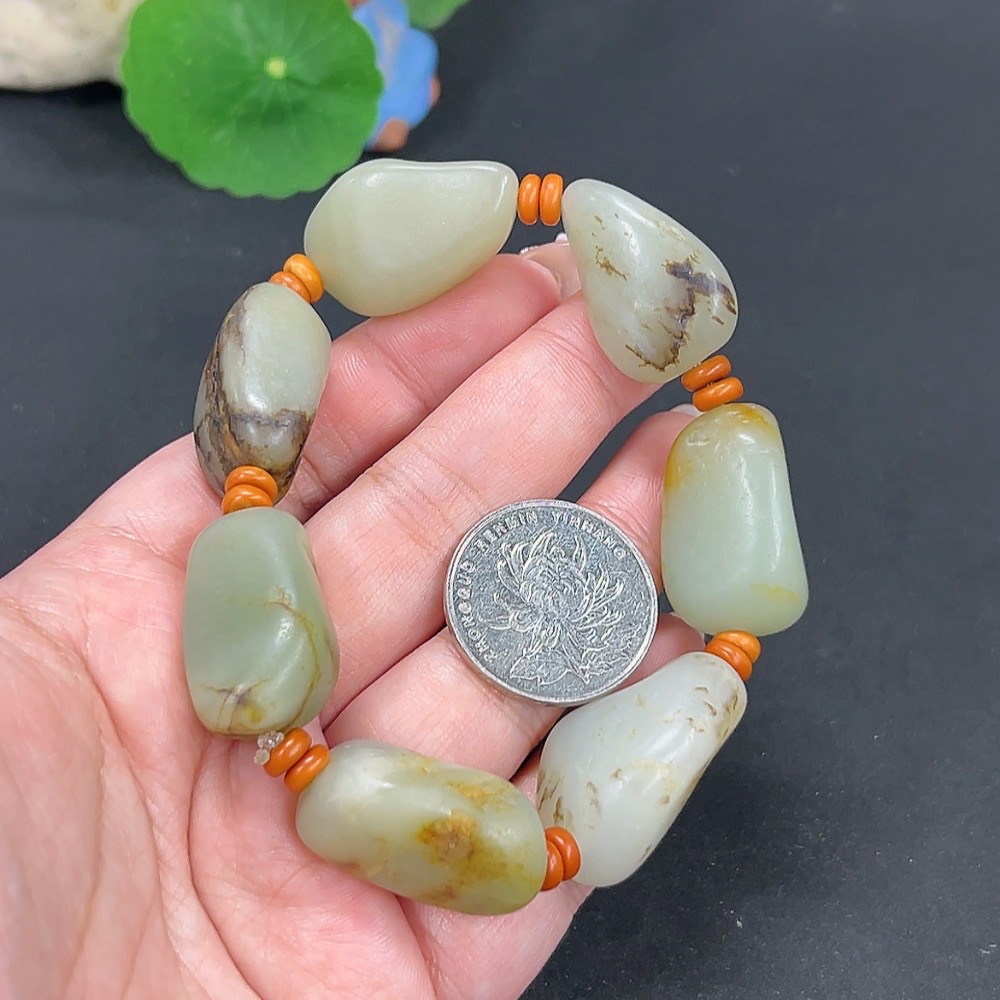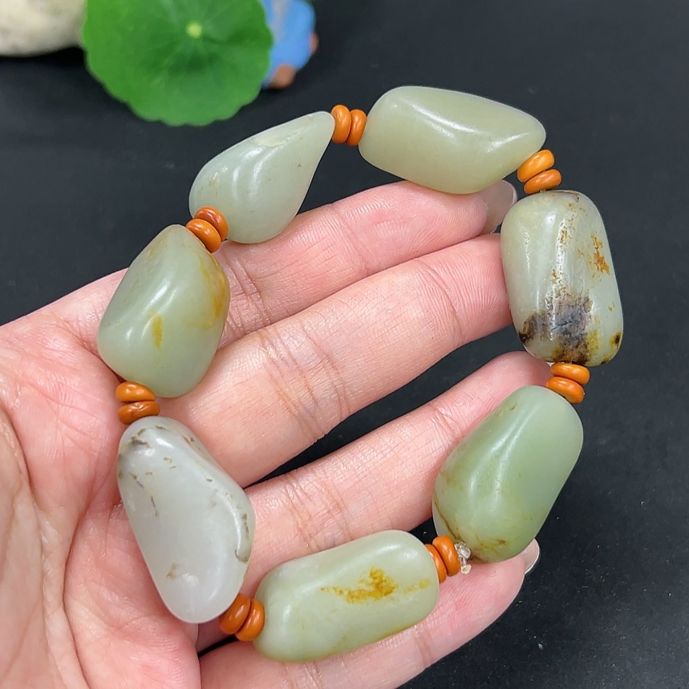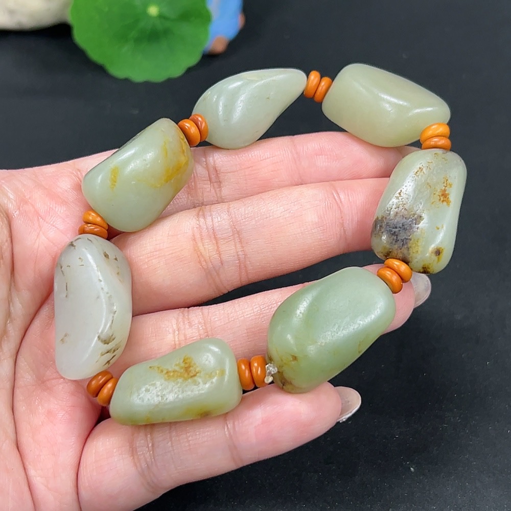 Hetian Jade Bracelet, Undetermined Skin Color Origin, Contains Other Mineral Components, Total Weight Approximately 82.3g
