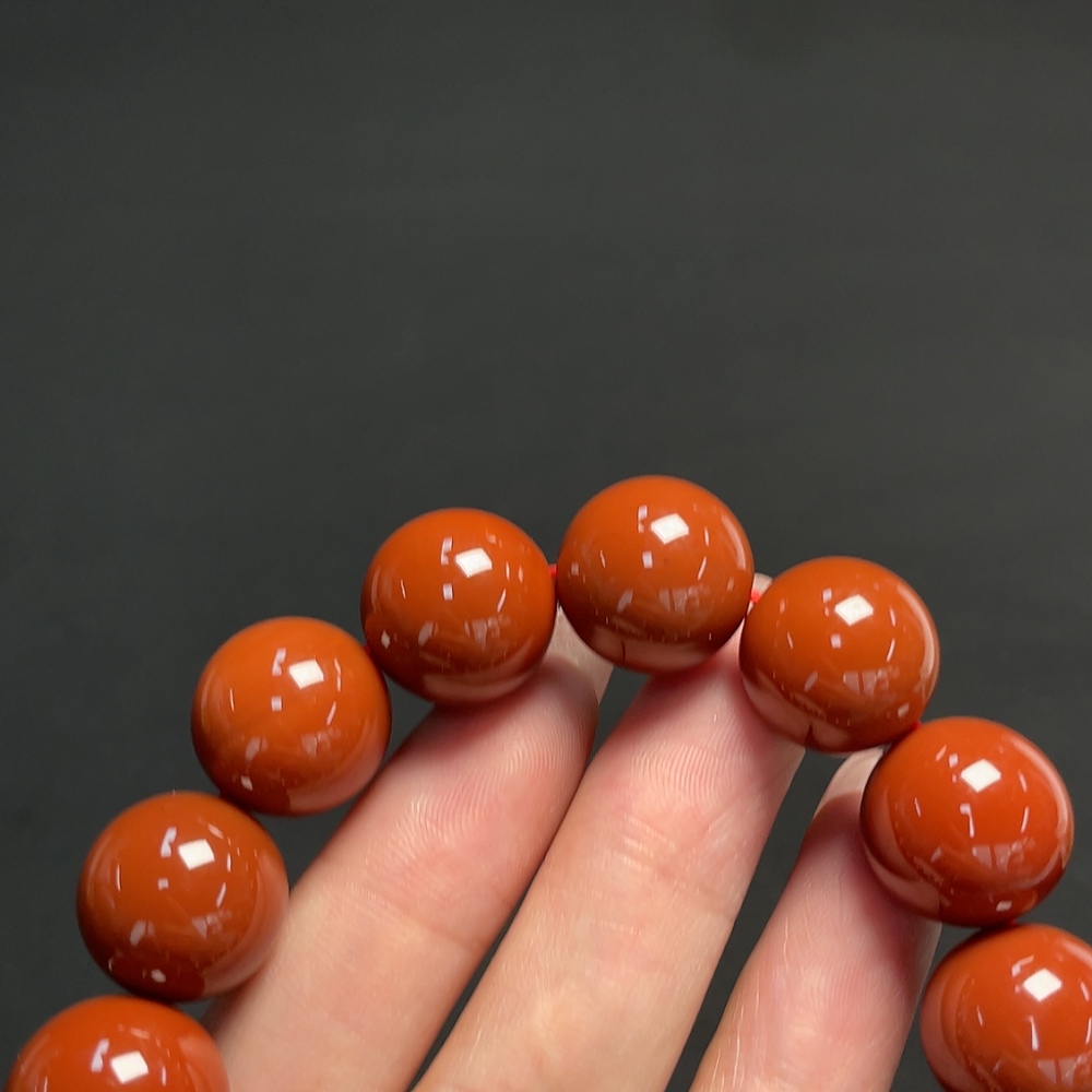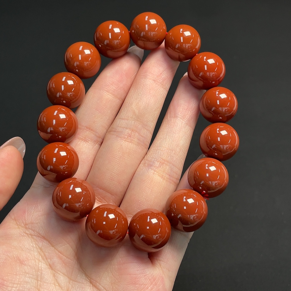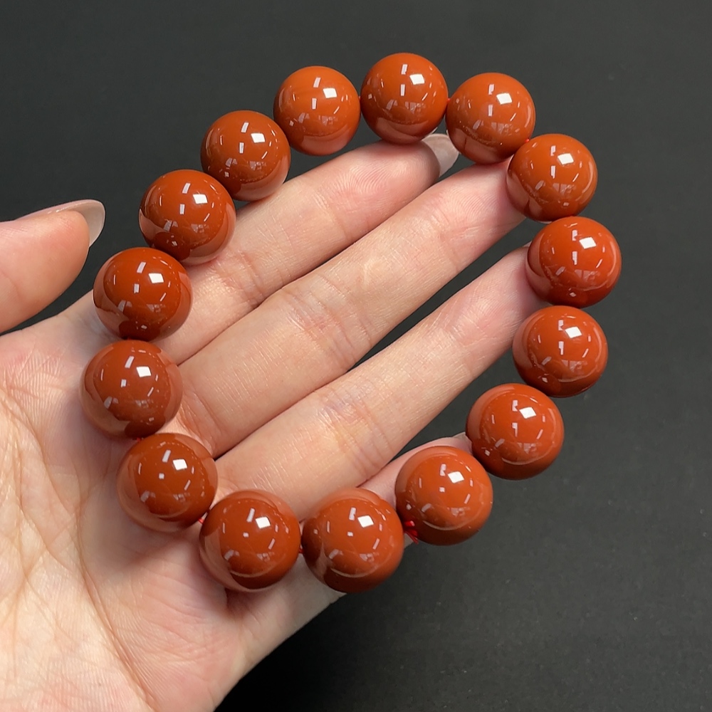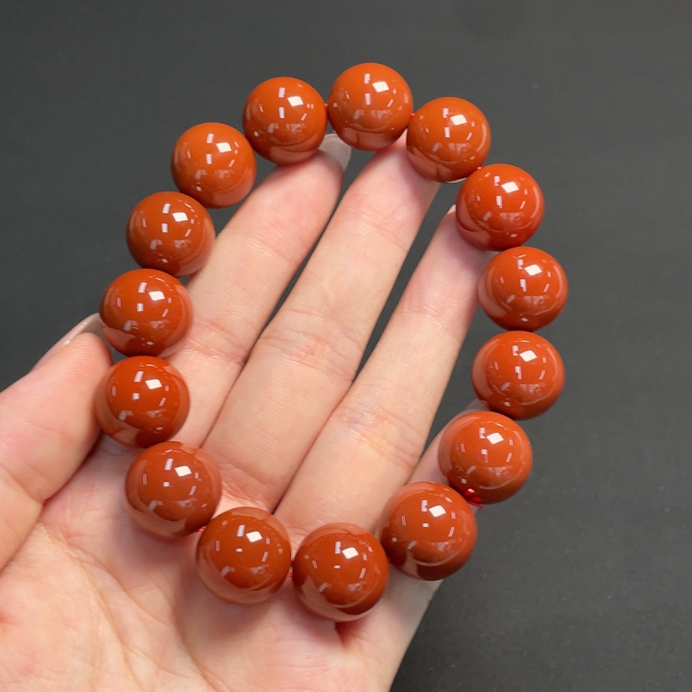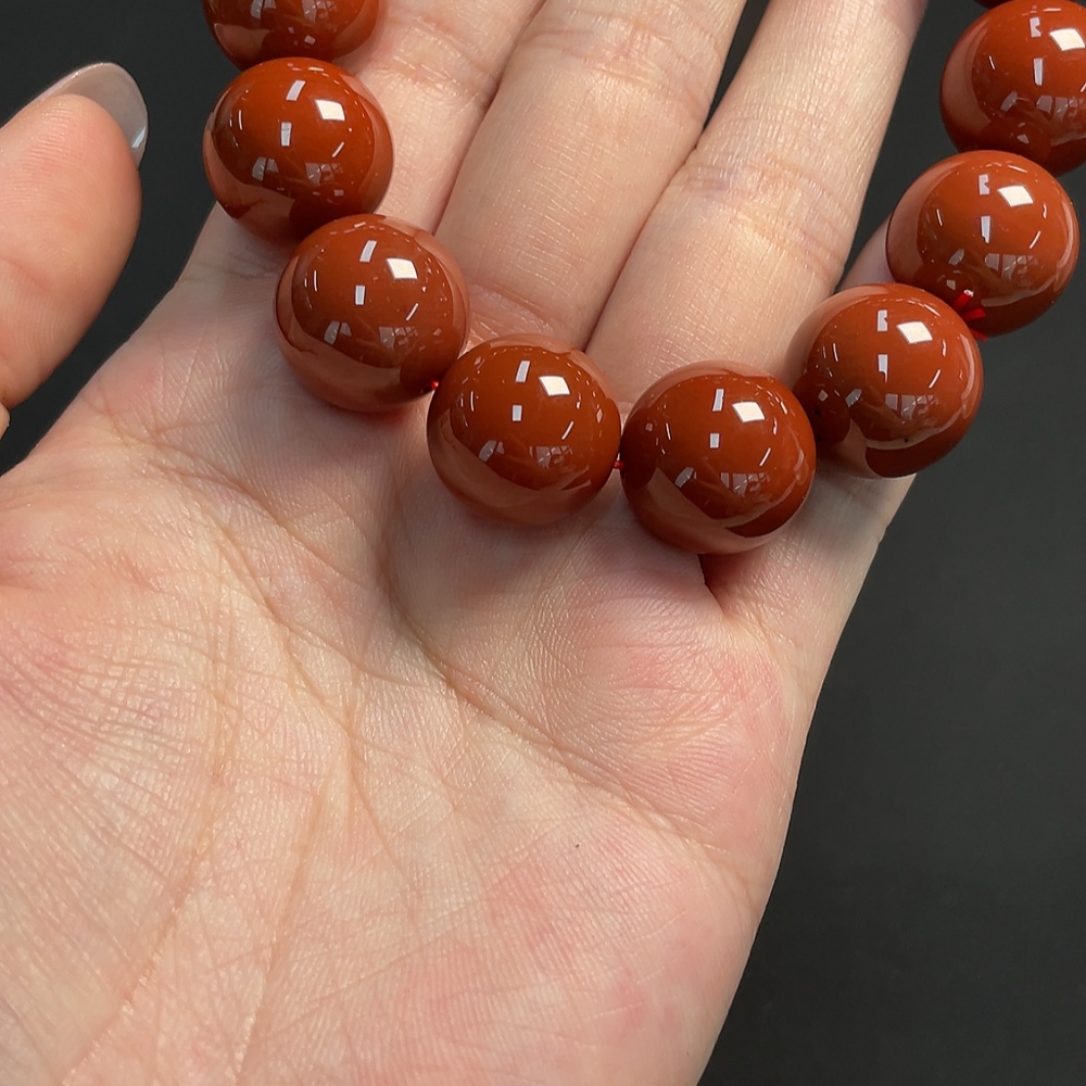 Red Agate Bracelet with Visible Organic Matter, Total Weight Approx. 73.49g, Bead Size ~15.3mm