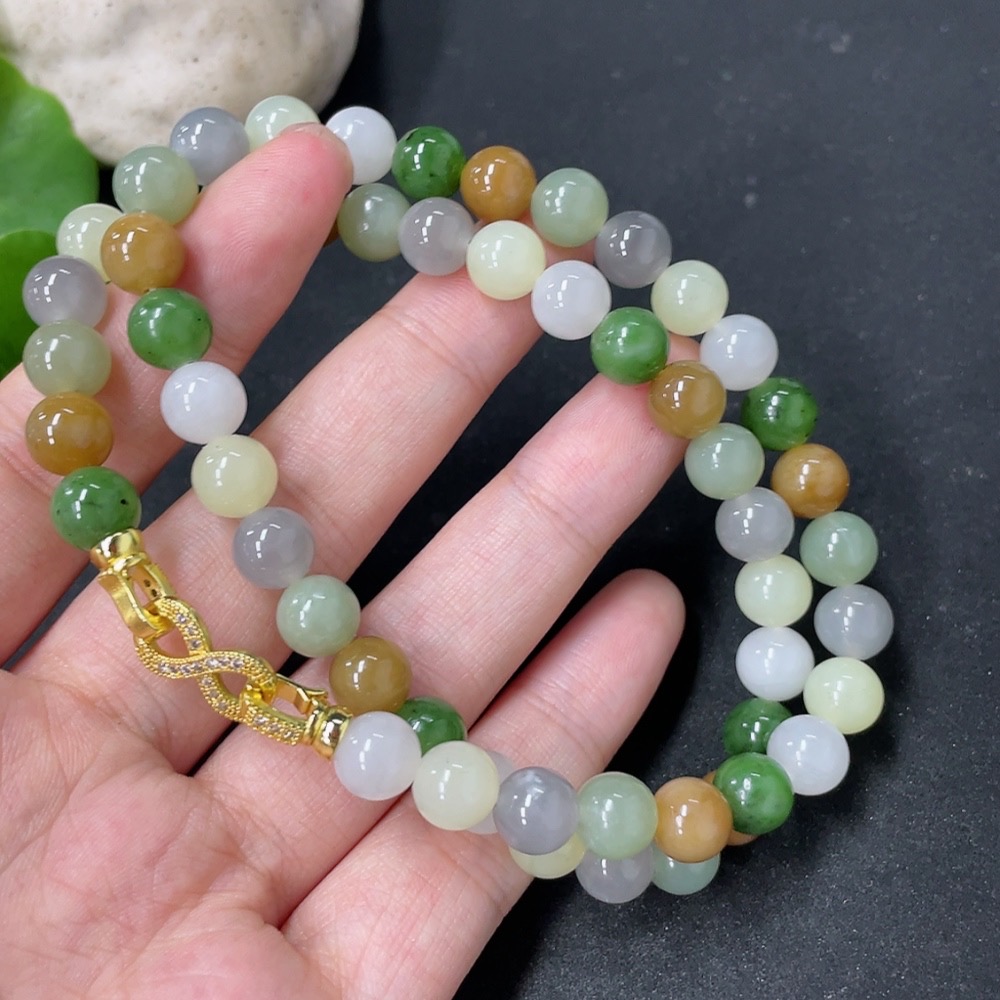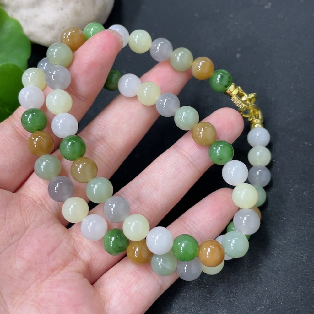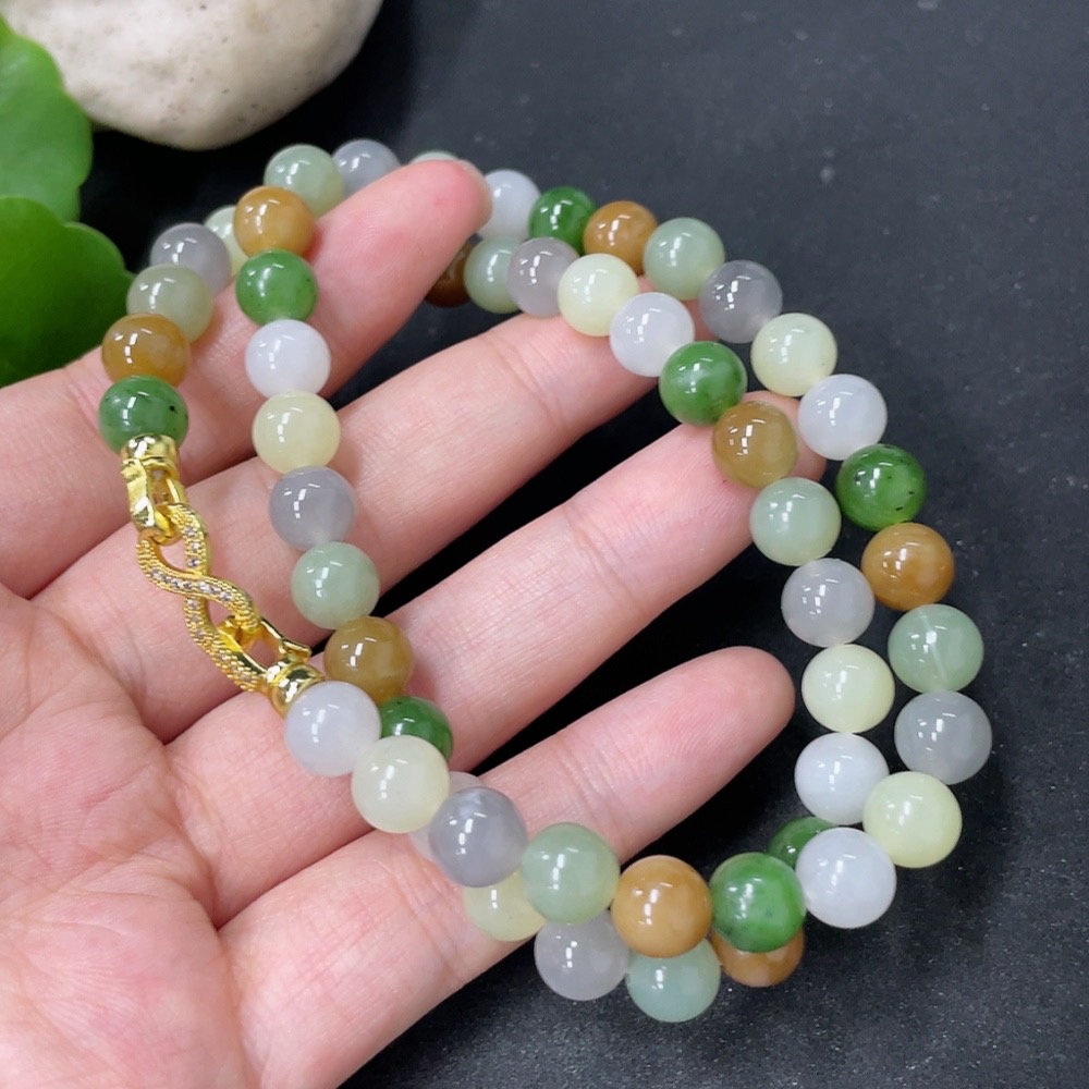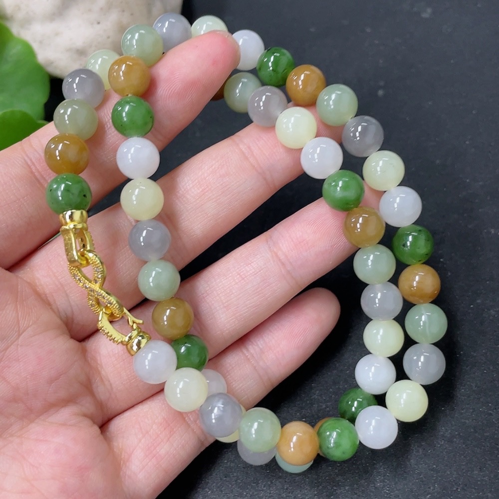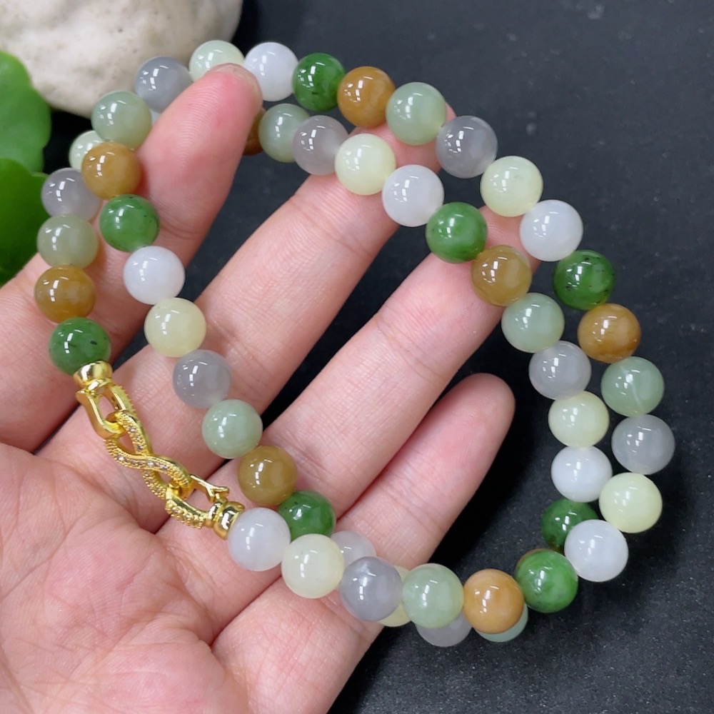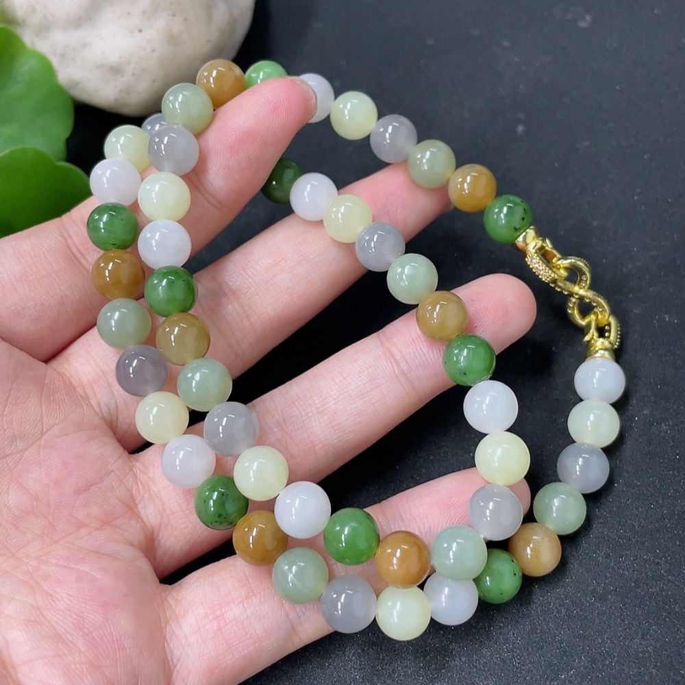 Hetian Jade Bead Necklace Approx.7.6mm Total Weight Approx.42.6g Non-Gold