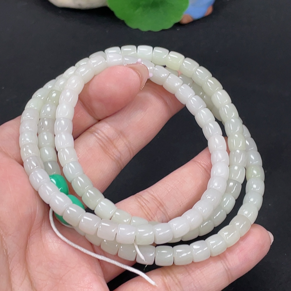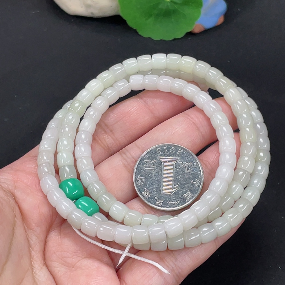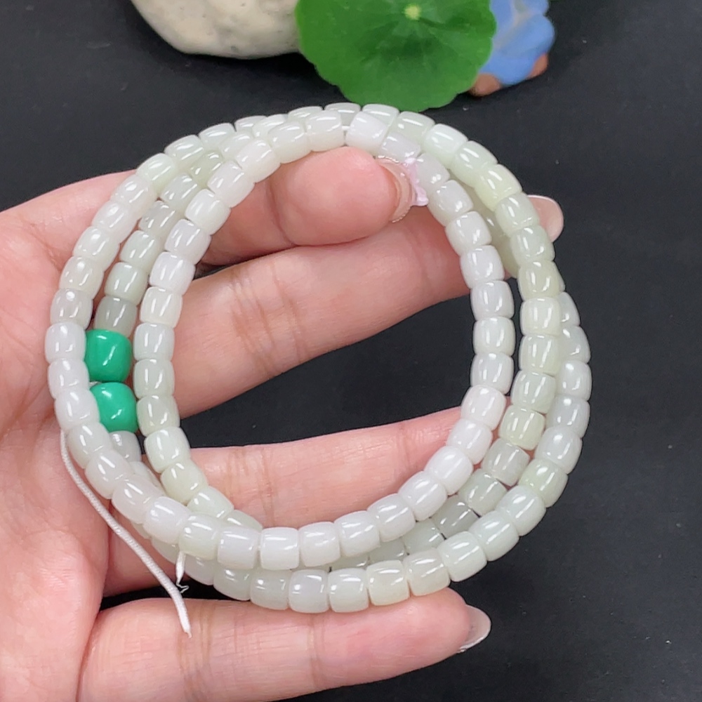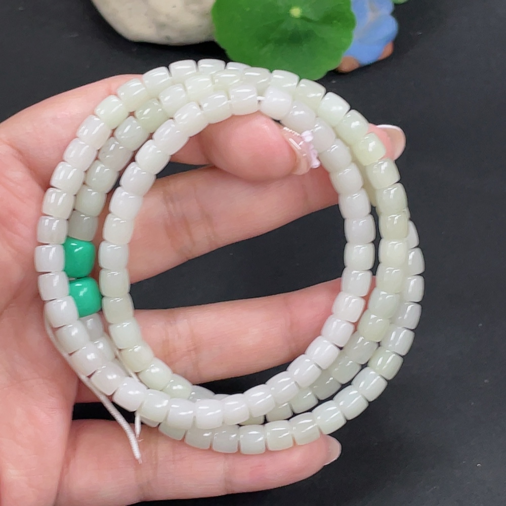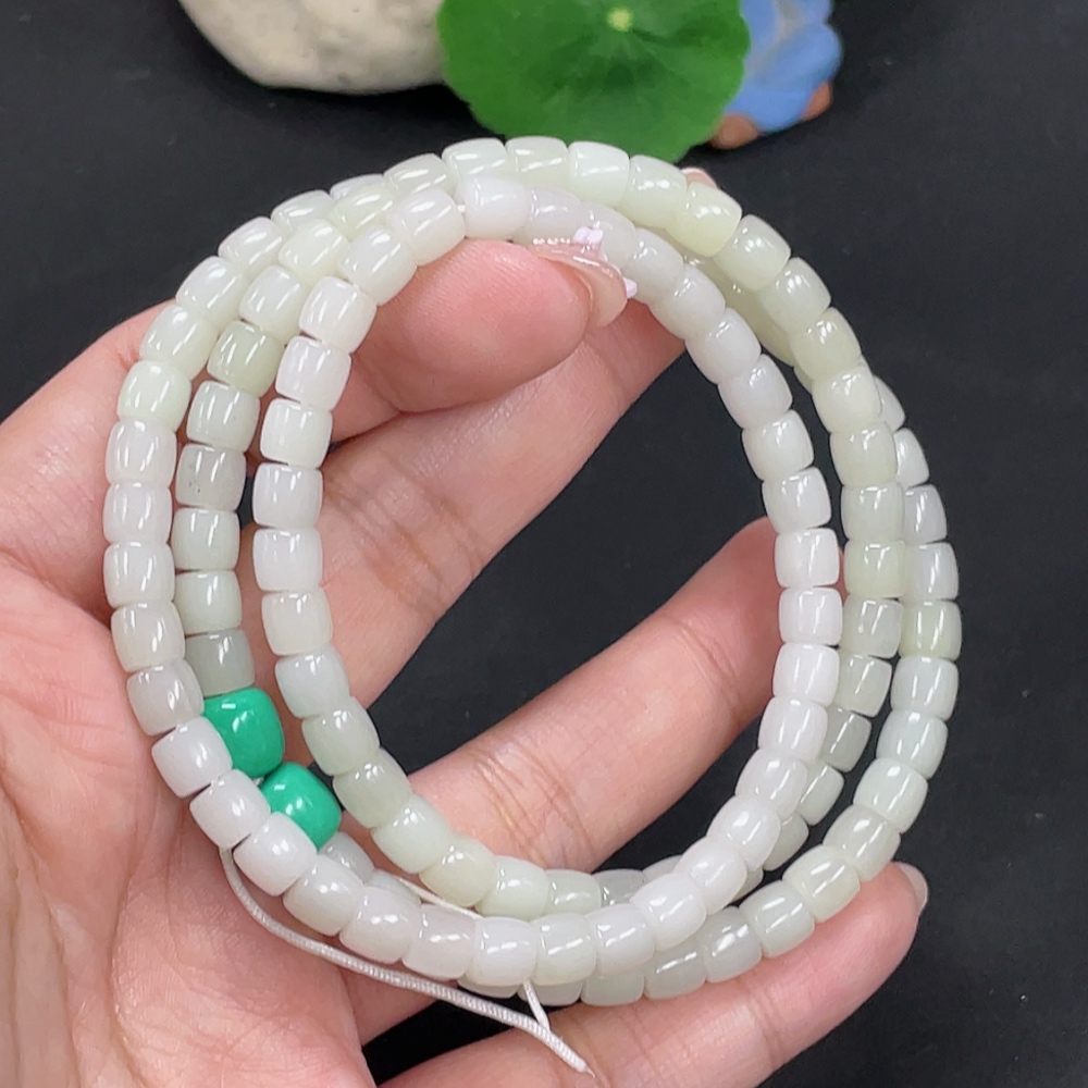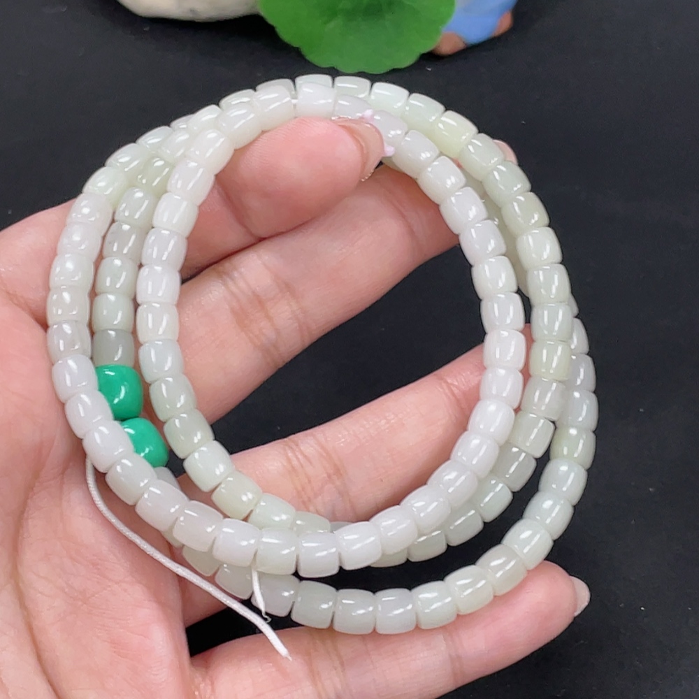Hetian Jade Bead Necklace, approx. 4.5mm, total weight approx. 45.1g, contains other mineral components, non-Hetian Jade matching beads