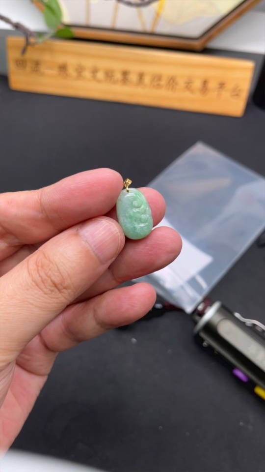 Jadeite Ruyi Pendant 18K Gold Total Weight Approx. 1.3g