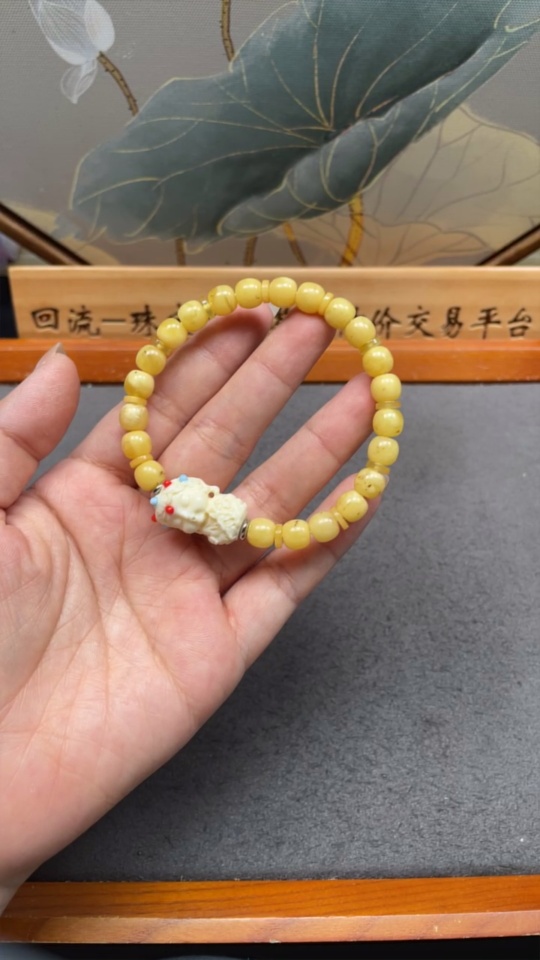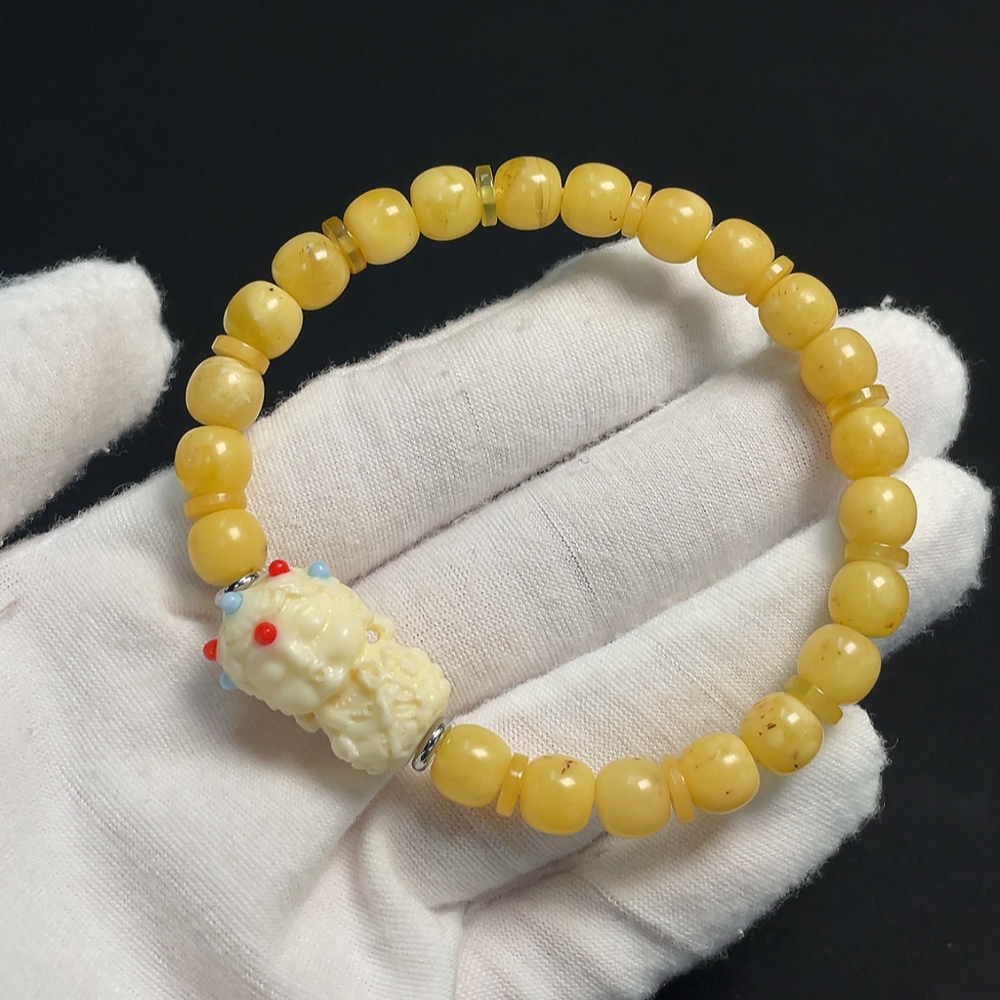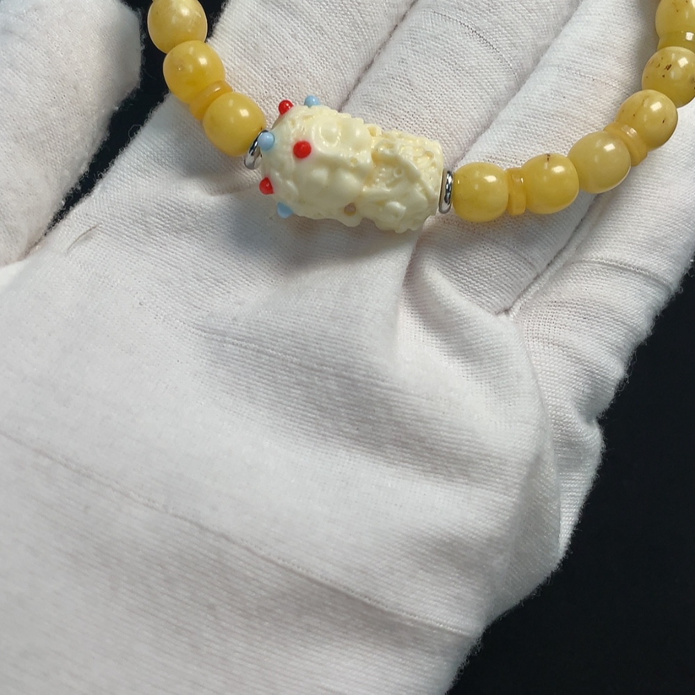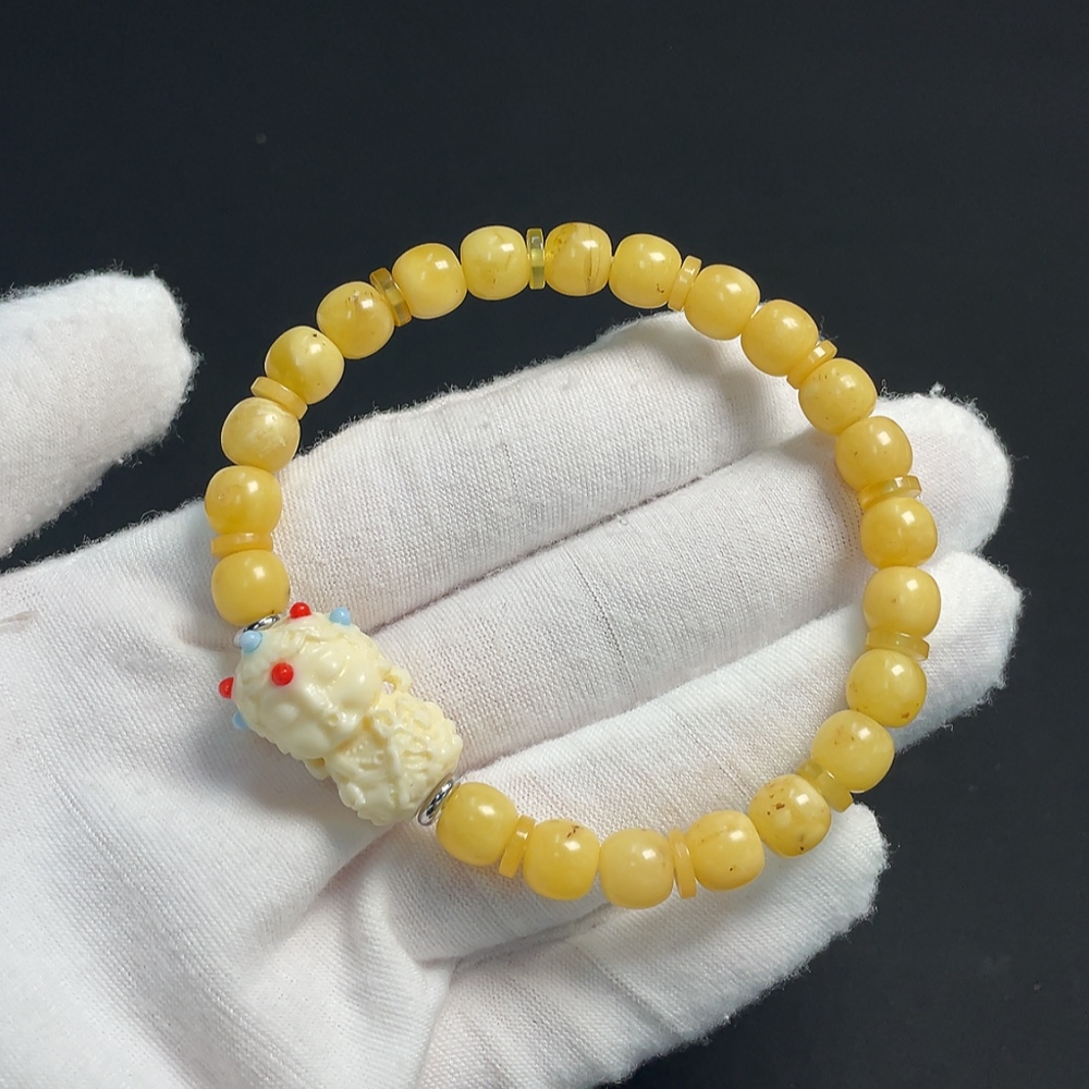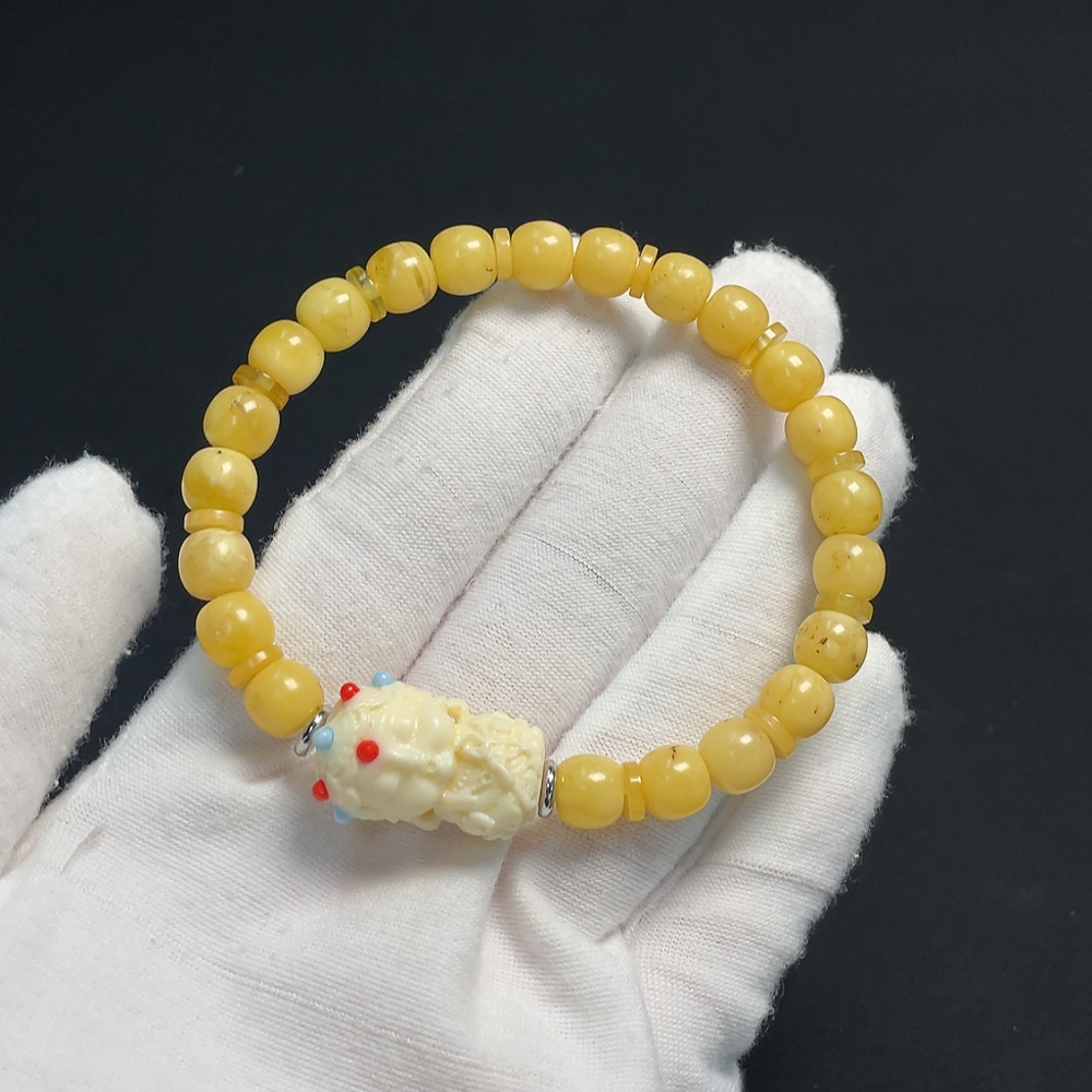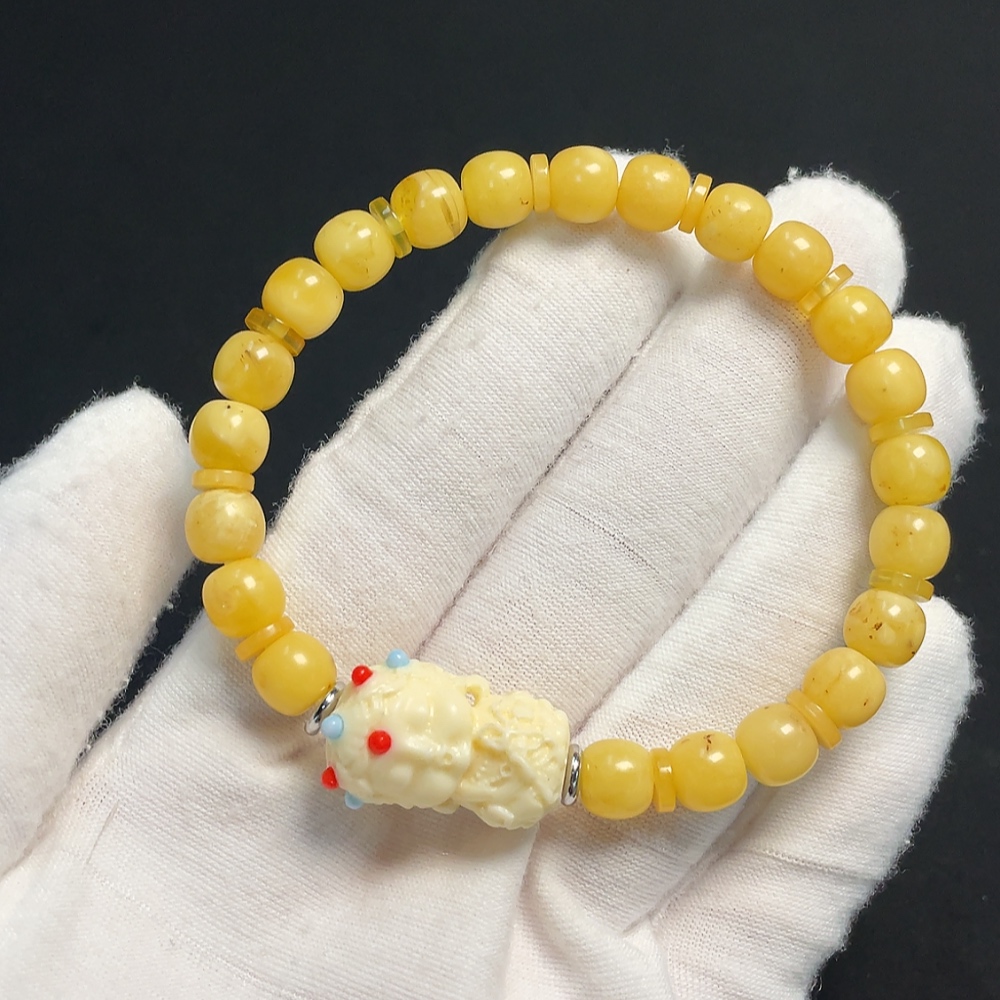 Amber Beeswax Bracelet with Non-Natural, Non-Gold Accent Stones, Total Weight Approx. 9.45g, Size About 7.4mm