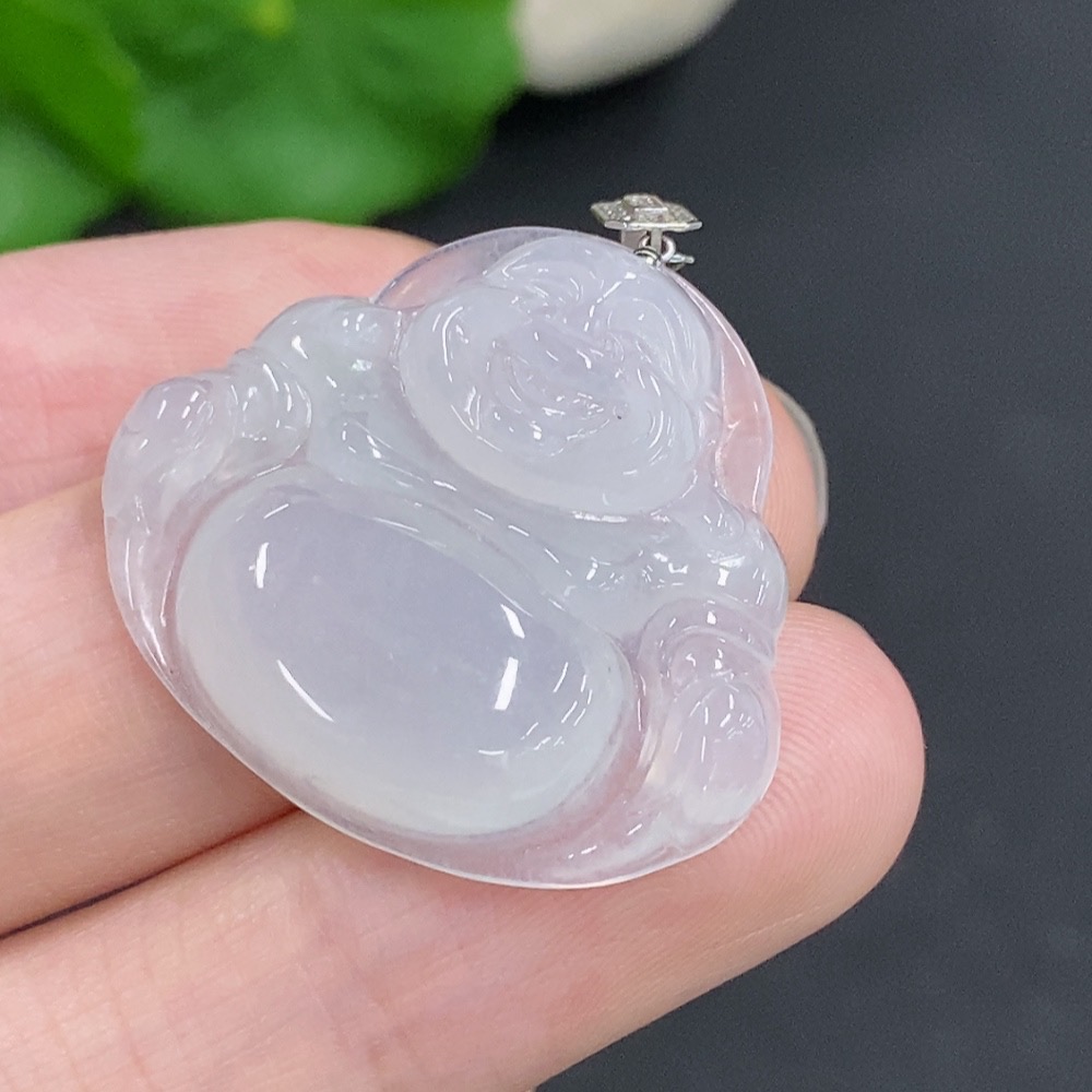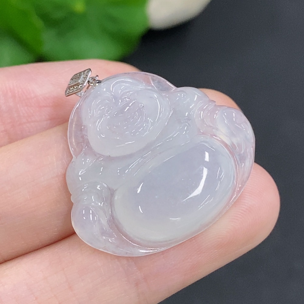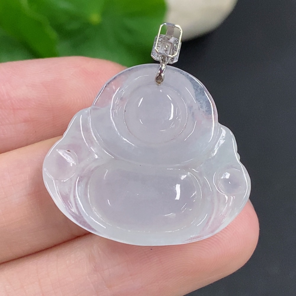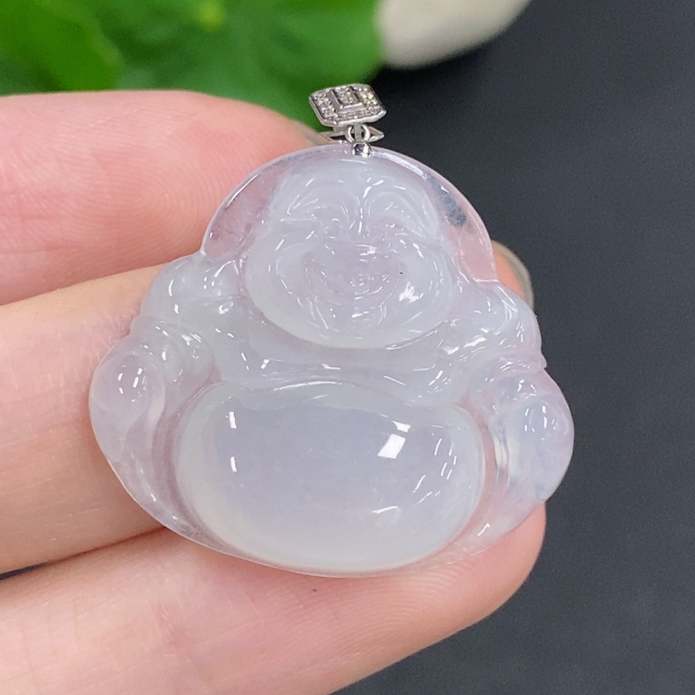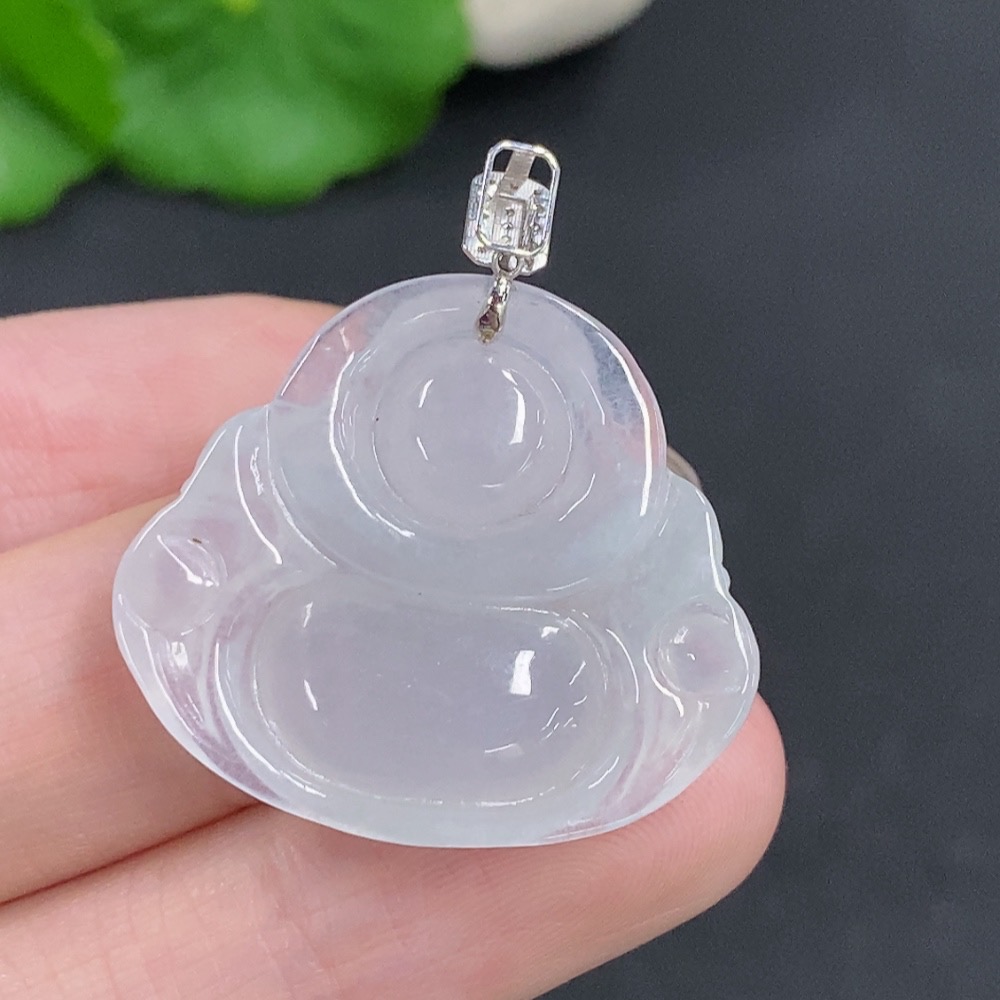 Jadeite Buddha Pendant with 18K Gold Clasp, Total Weight Approximately 6g, Set with Diamonds