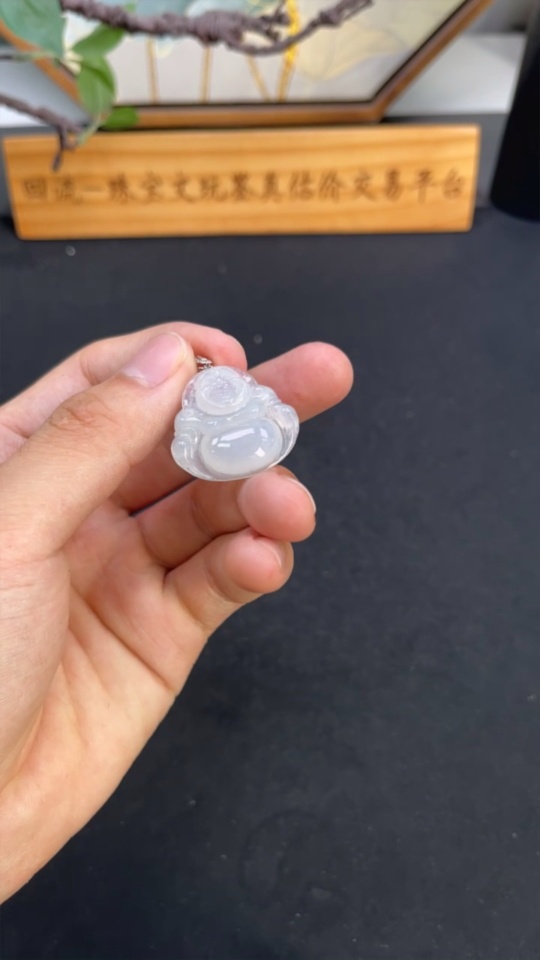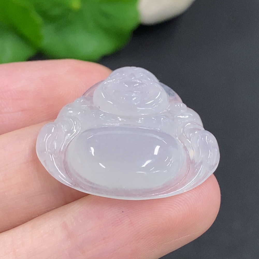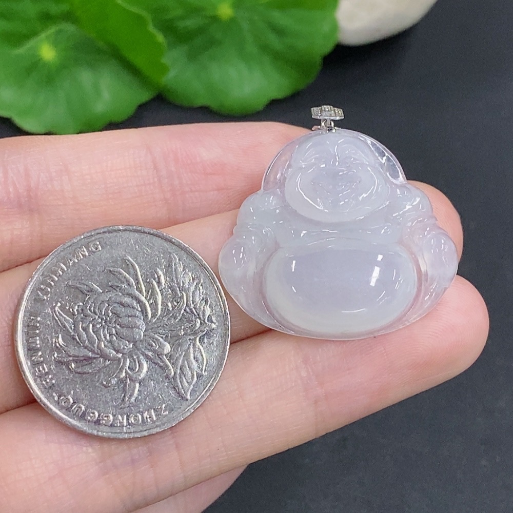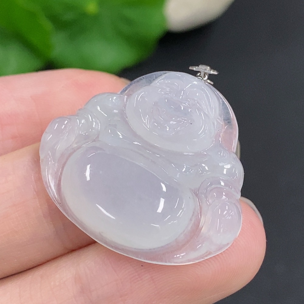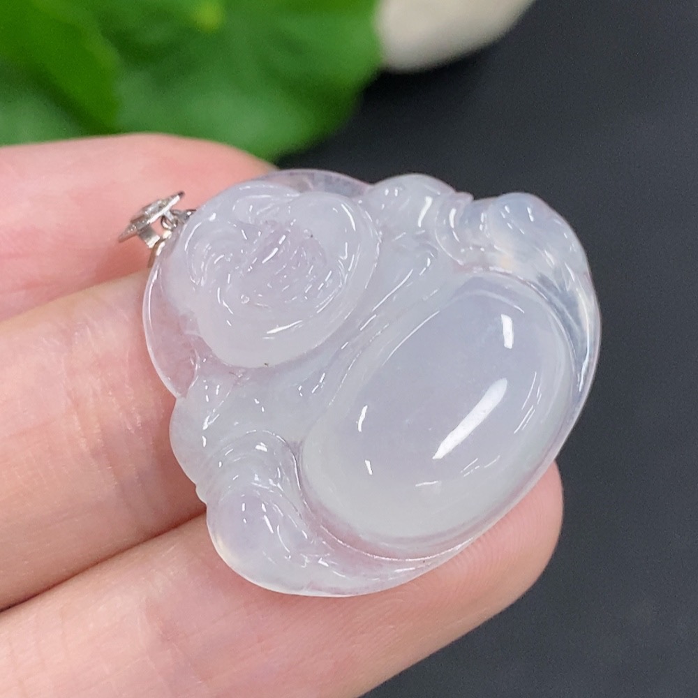 Jadeite Buddha Pendant with 18K Gold Clasp, Total Weight Approximately 6g, Set with Diamonds