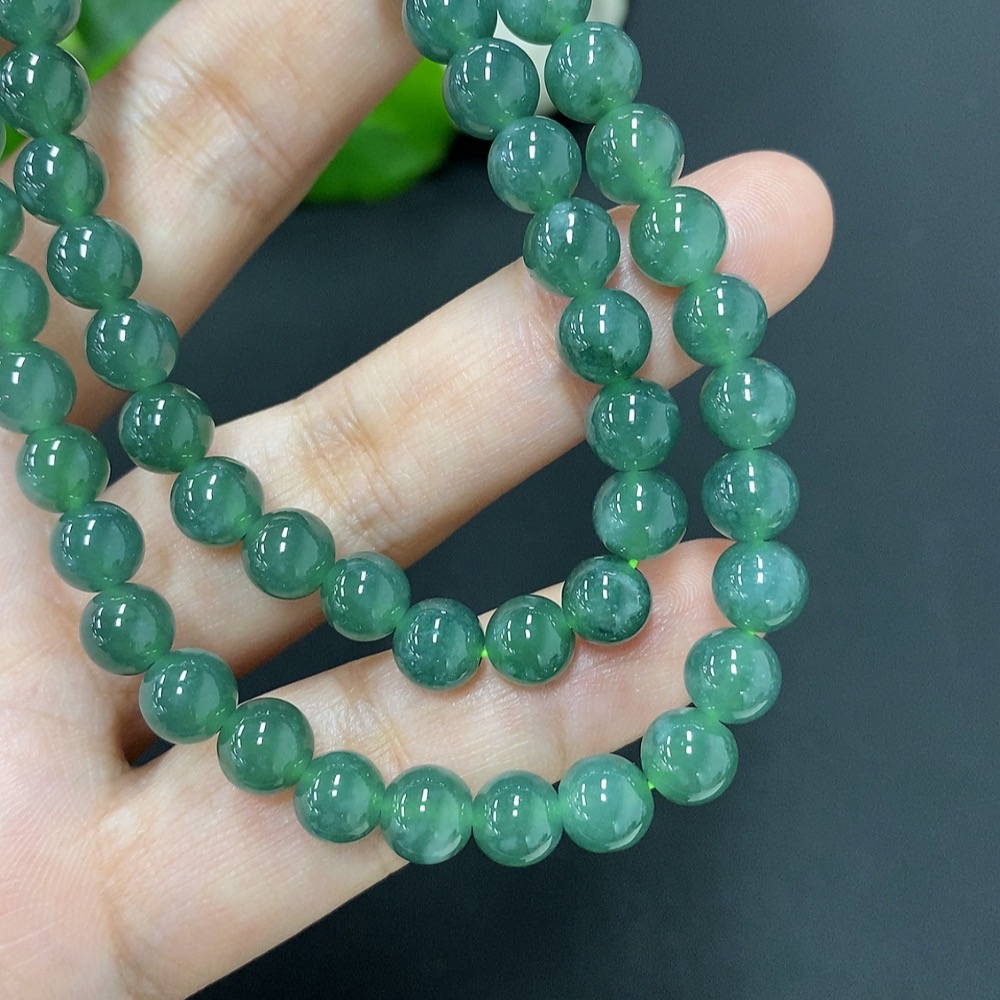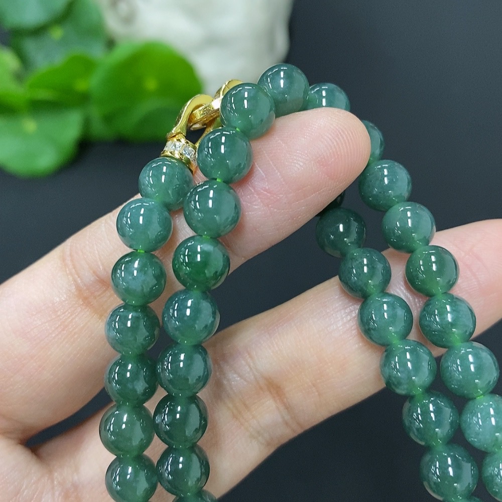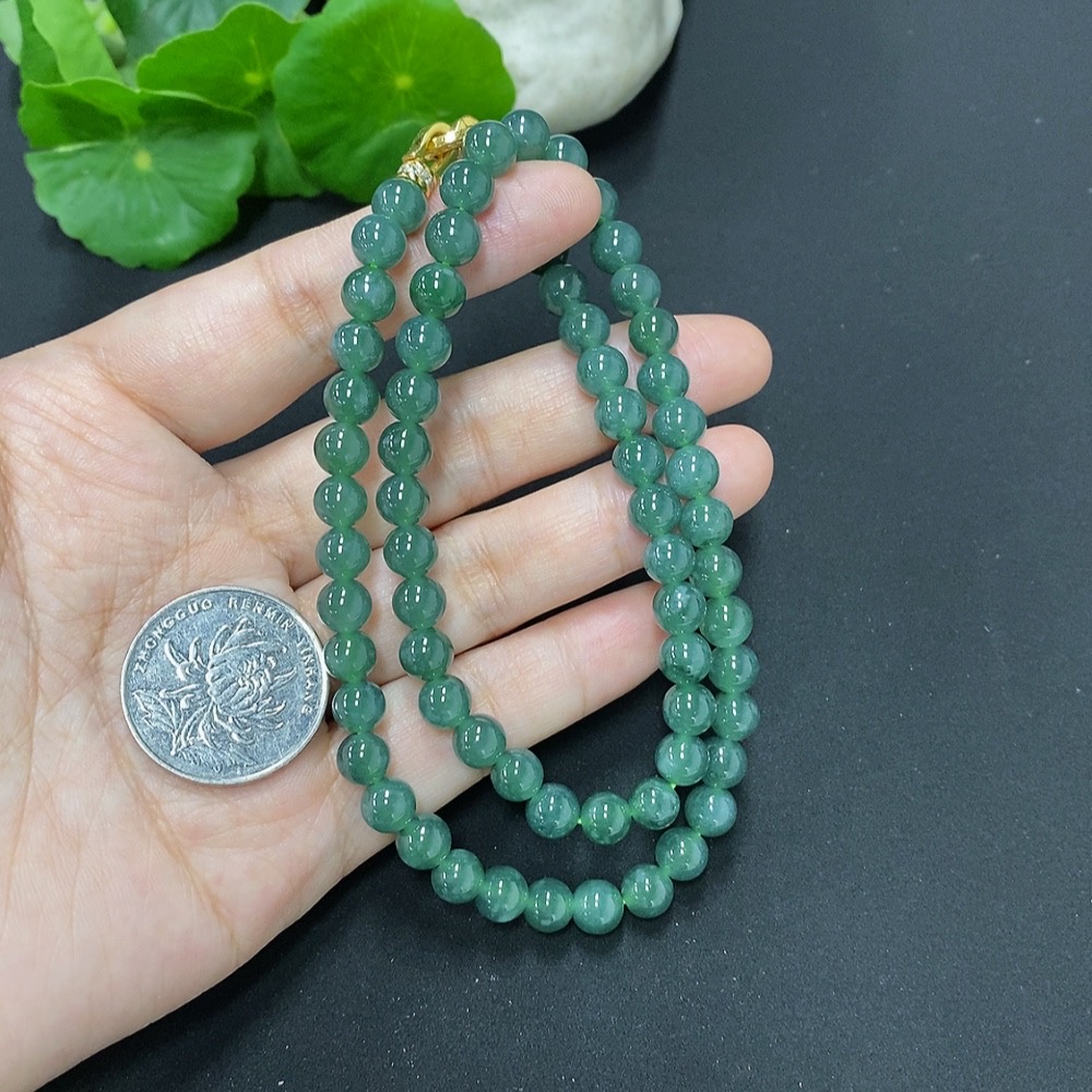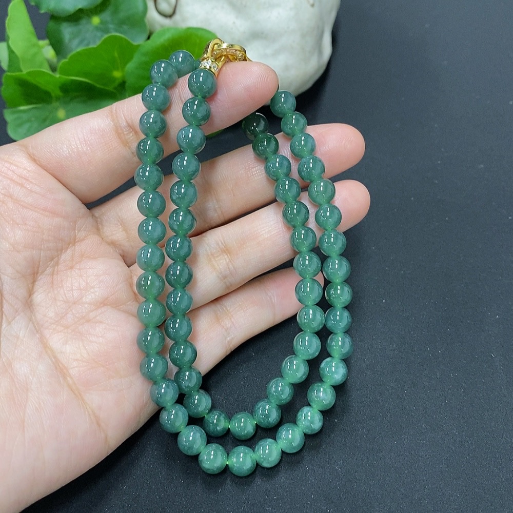 Jadeite Bead Necklace Approx. 6.7mm Non-Gold Total Weight Approx. 38.3g
